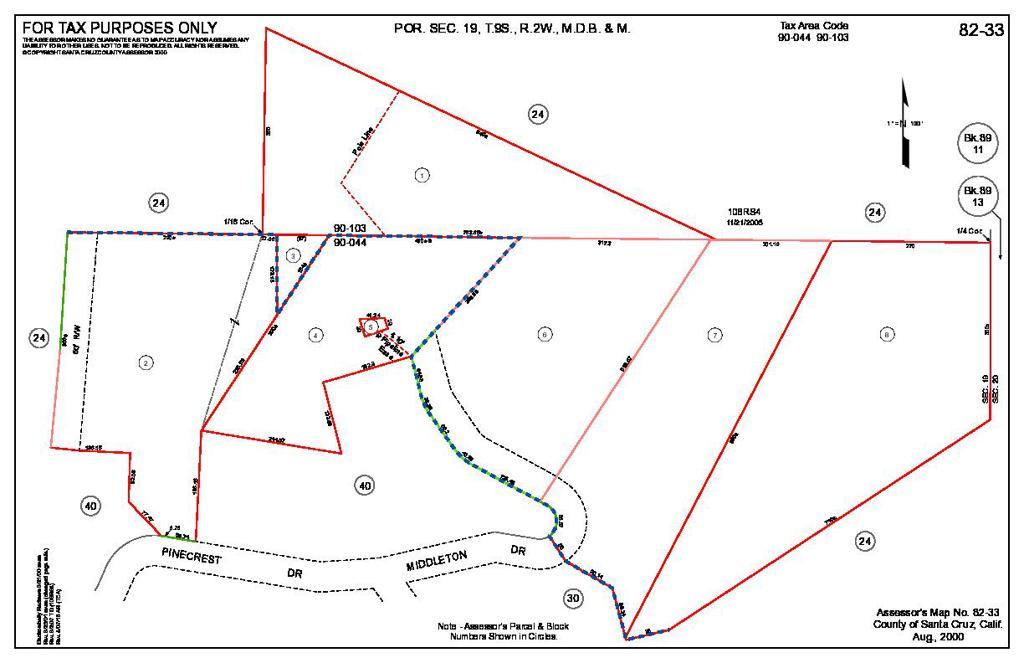 Panoramic views of mountains and valleys possibly available from this near ridge top location above Boulder Creek. Two possible building sites. Water meter, electricity at street, previous soils report good, partially graded driveway and building site. Easy access via paved road.