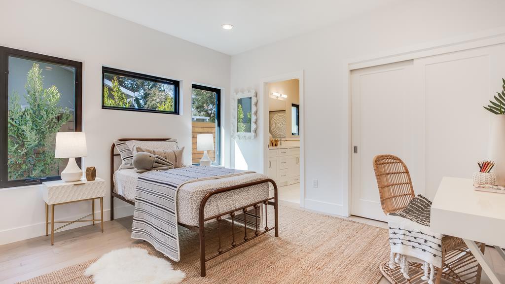 Located on a gorgeous tree-lined street of Barron Park, Cypress Capital Group brings you another beautiful custom constructed modern farmhouse. 5 bed 4.5 bath home is thoughtfully crafted w/ luxury finishes & a superb attention to detail. Chefs kitchen w/ Italian honed quartz, Miele appliances & custom cabinetry is perfect for both families/entertainers. Clerestory/dormer windows flood the home w/ natural light & La Cantina doors fold back for the best of indoor/outdoor living. Expansive master suite w/ french slider, walk-in closet, soaking tub, his/her sinks, glass enclosed spa inspired shower. Home includes an au pair en-suite guest quarters w/ private/separate access. All baths w/ heated floors. Amenities include French White oak, Bluestone, slate pavers, 3 Zone HVAC, Duravit, Toto. Top PA schools, steps to Briones & walk to Fletcher & #1 Gunn High - EZ access to Silicon Valley, Facebook, Google, Apple & Stanford. Don't miss this opportunity to live your best life on the Peninsula!