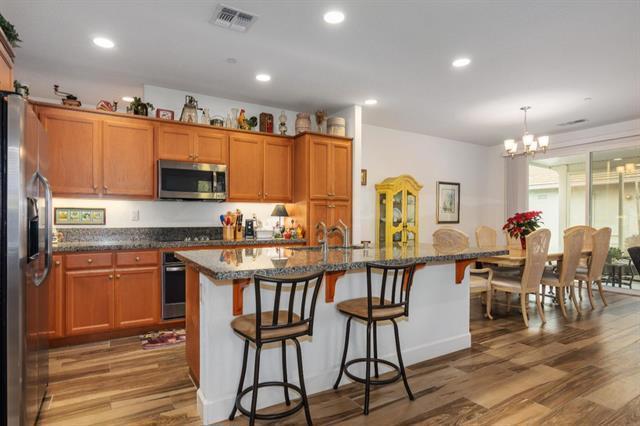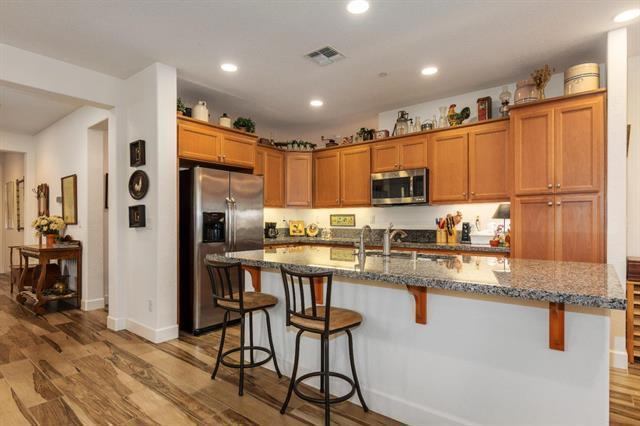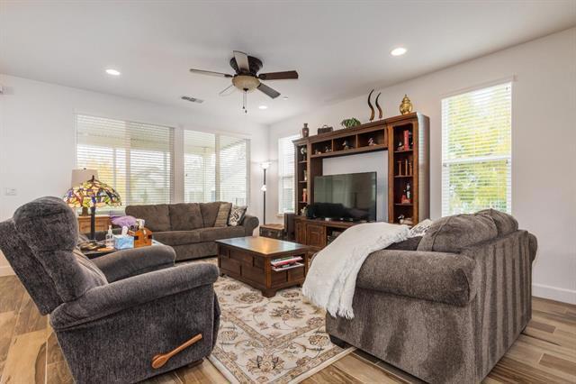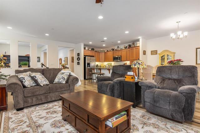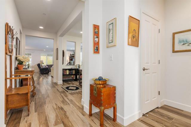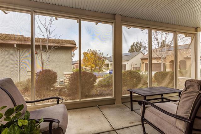 This lovely 2015 corner lot "REFLECT" model provides an open concept. Features 2 bedroom, 2 bath with a den off the foyer. This well designed home maximizes indoor/outdoor living space and offers plenty of natural light. Discover an inviting ambiance with a fusion of warm color tones, soft-beige carpet, hardwood-style tile floors and ceiling fans. A few of the many upgrades you will find in this solar powered home are the Smart Home Technology System and the Pella windows. A well-appointed kitchen has a spacious island; reverse osmosis; granite; stainless steel appliances; cabinetry with pull-out shelves and a breakfast bar. Ample storage throughout the home. Easily accessed from the bright and cheerful dining area, the outdoor living space with a covered patio is perfect for entertaining or simple relaxation. The primary suite includes an en-suite bathroom with split sinks, walk-in closet and a sliding door to the backyard. A second bedroom and bath are ideal for guests. A must see!