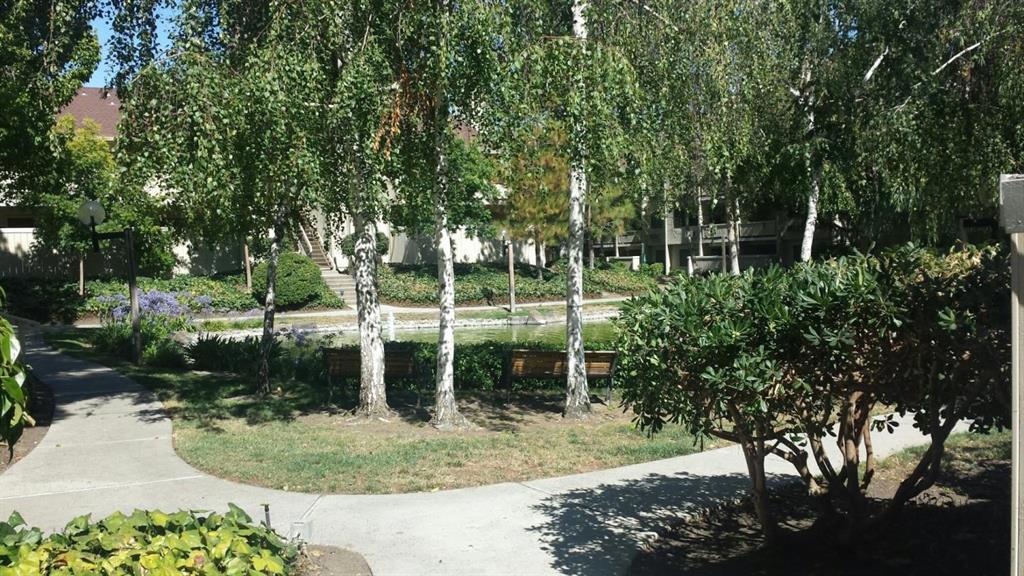 Adorable upstairs unit overlooking trees and a little pond with a nice balcony to sit out on. Unit has been fully updated in 2019 with new kitchen cabinets, counter, stainless steel appliances, new floors, carpet and updated bathroom.. Community is in nice neighborhood across from Central Park. Close to shopping. Very convenient location to Silicon Valley jobs.