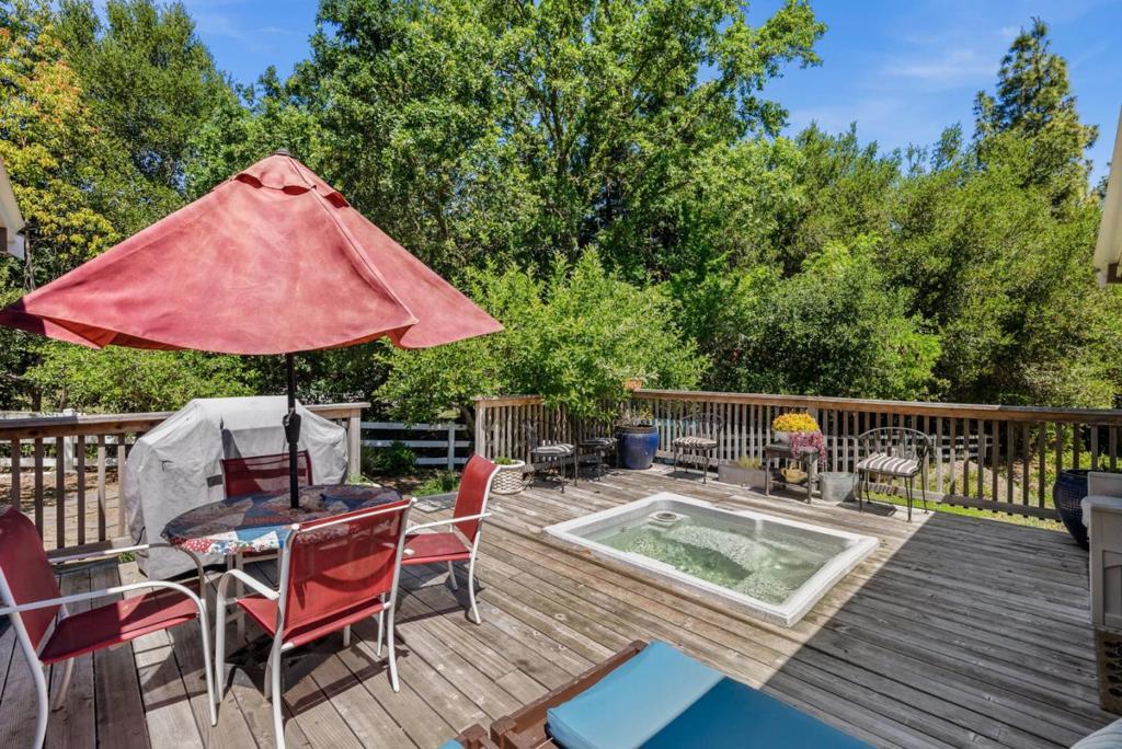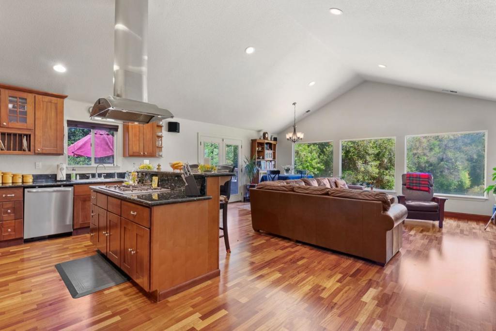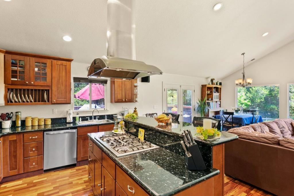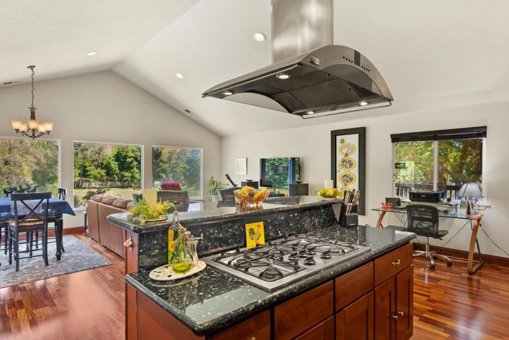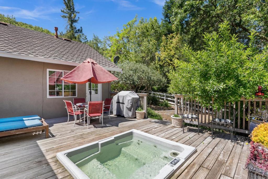 Come on in and take a look at this gorgeous 3 bedroom, 2 bathroom home sitting on nearly 2 acres! Private, secluded, and remodeled, this home is perfect for any family. Driving in, you are greeted with a gated entrance and spacious outdoor front patio. After entrance, you will find an open concept family room/kitchen, perfect for hosting and entertaining. The kitchen features granite countertops, custom cabinetry, stainless steel appliances, and a range hood that drops over the island. In the family room, you will find 3 oversized windows that overlook a massive, green, landscaped backyard. The primary suite is spacious, offering an abundance of natural light, an oversized walk in closet, and a gorgeously remodeled master bathroom with an oversized shower, stand alone soaking tub, and separate vanities. The other two bedrooms are located conveniently next to the full guest bathroom. Walking to the deck outside, there is a jacuzzi tub and plenty of space to host guests and entertain.