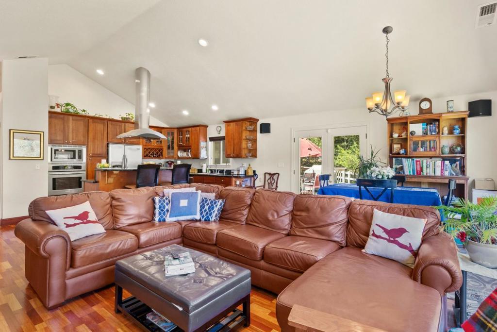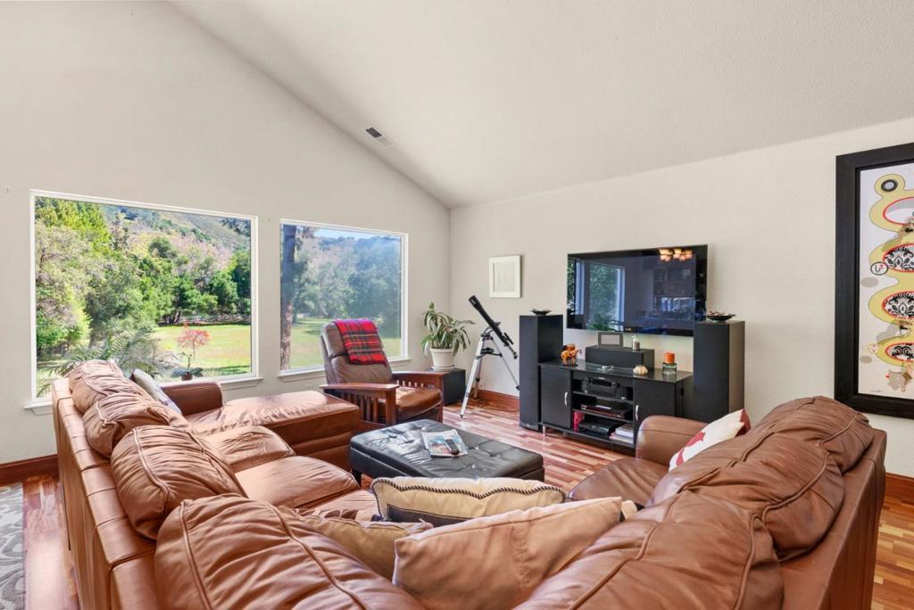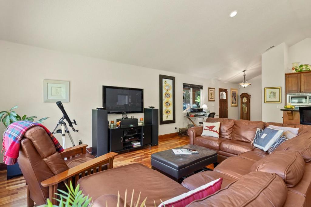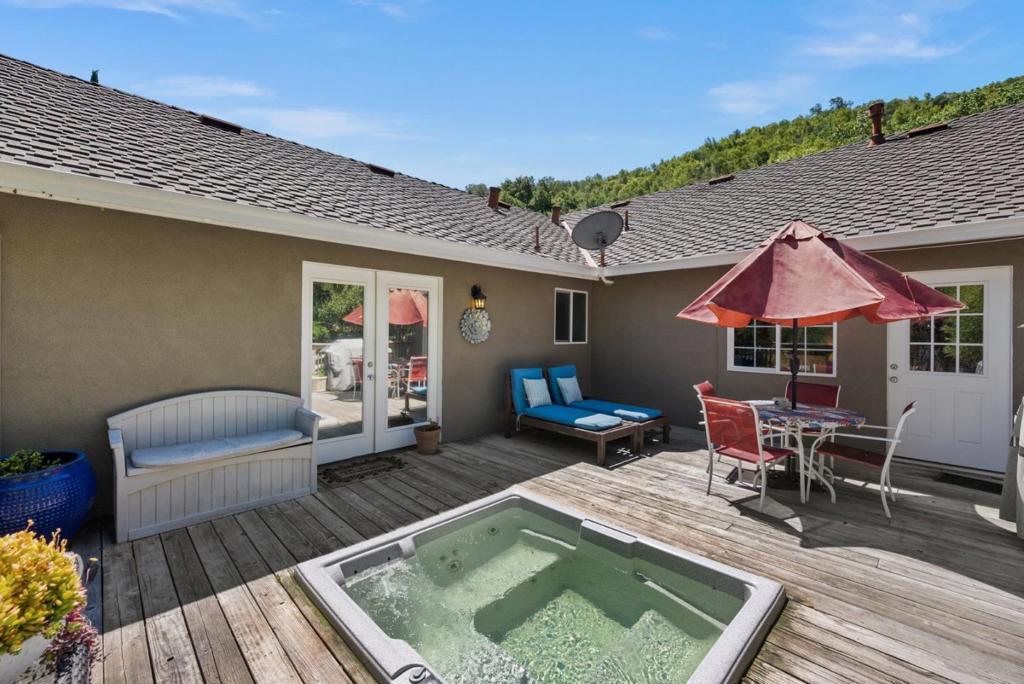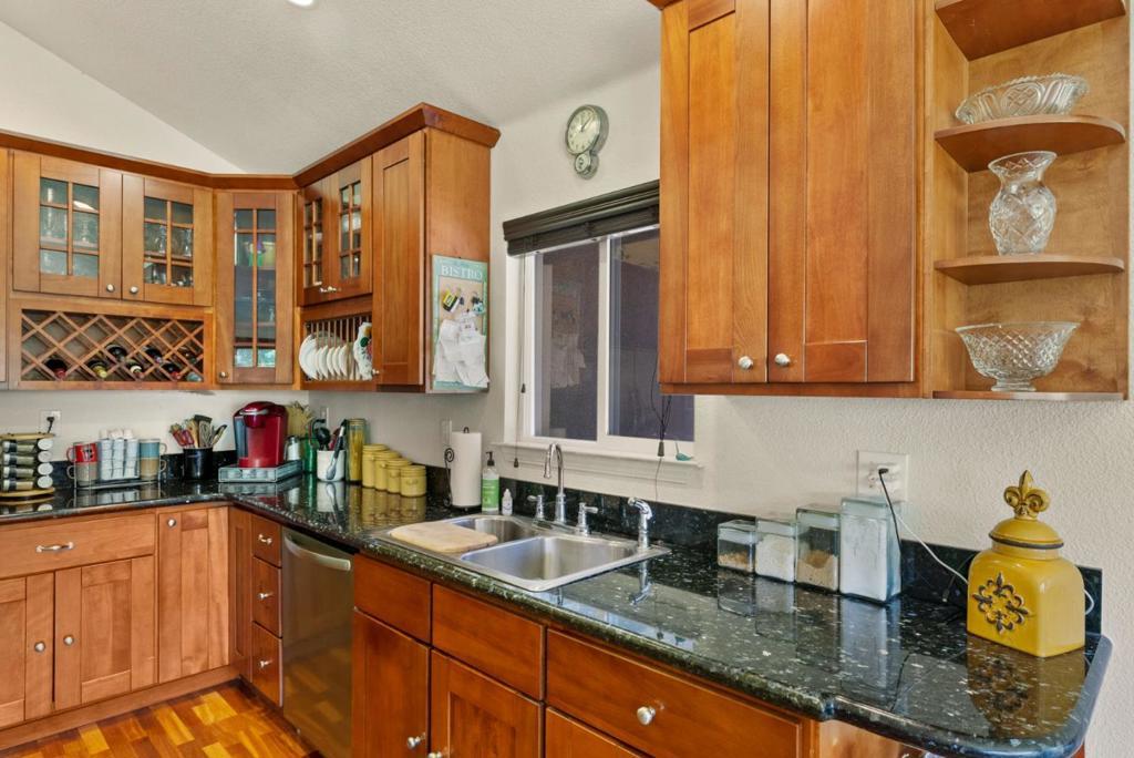 Come on in and take a look at this gorgeous 3 bedroom, 2 bathroom home sitting on nearly 2 acres! Private, secluded, and remodeled, this home is perfect for any family. Driving in, you are greeted with a gated entrance and spacious outdoor front patio. After entrance, you will find an open concept family room/kitchen, perfect for hosting and entertaining. The kitchen features granite countertops, custom cabinetry, stainless steel appliances, and a range hood that drops over the island. In the family room, you will find 3 oversized windows that overlook a massive, green, landscaped backyard. The primary suite is spacious, offering an abundance of natural light, an oversized walk in closet, and a gorgeously remodeled master bathroom with an oversized shower, stand alone soaking tub, and separate vanities. The other two bedrooms are located conveniently next to the full guest bathroom. Walking to the deck outside, there is a jacuzzi tub and plenty of space to host guests and entertain.