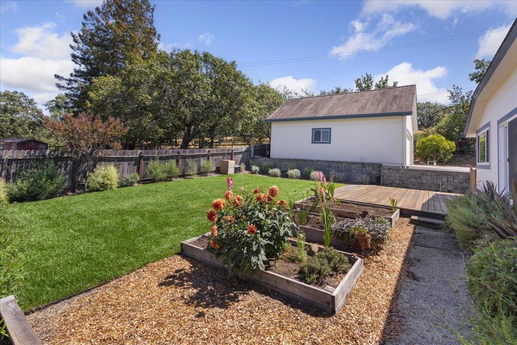 Welcome to this Beautiful 3 Bedroom, 2 Bath + Bonus Room in Attic + Abundant Storage + 2 Story 2 Car Plus Garage w/ Space for a Workshop and Possible ADU (Buyers to Investigate) + Raised Garden Beds + Shed on a Half Acre with Lovely Views of the Hills. Great Natural Light Throughout. Generous Size Living Room and Large Formal Dining Room with Sliding Glass Door that Leads to the Magnificent Backyard for Some Warm Summer Fun! Celebrate & Enjoy Parties with Family and Friends on the Lush Lawn or Relax on the Custom Built Redwood Deck. Warm & Inviting Kitchen includes Stainless Steel Oven, Granite Counters, Designer Backsplash and Sizable Pantry. Tastefully Remodeled Bathrooms | Newer Hardwood Flooring + A/C + Paint Inside and Out + Backup Generator Connection. Property has a Plethora of Delicious Fruit trees including Meyer Lemon + Royal Blenheim Apricot + Golden Nugget Mandarin + Arctic White Nectarine + Gravenstein & Arkansas Black Apples! This is Truly a Wonderful Home!