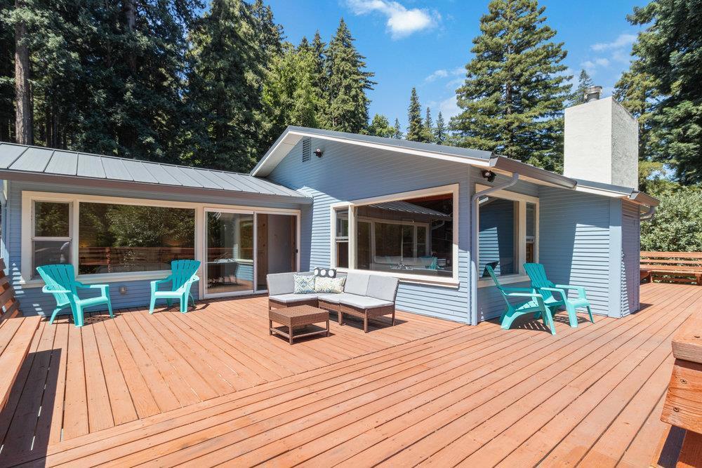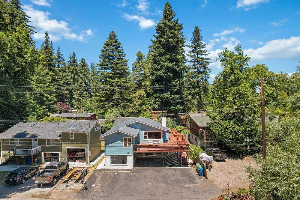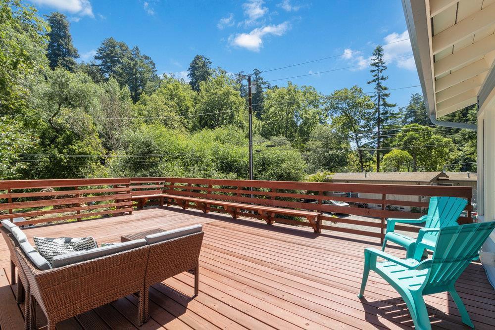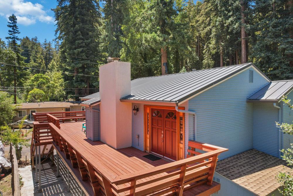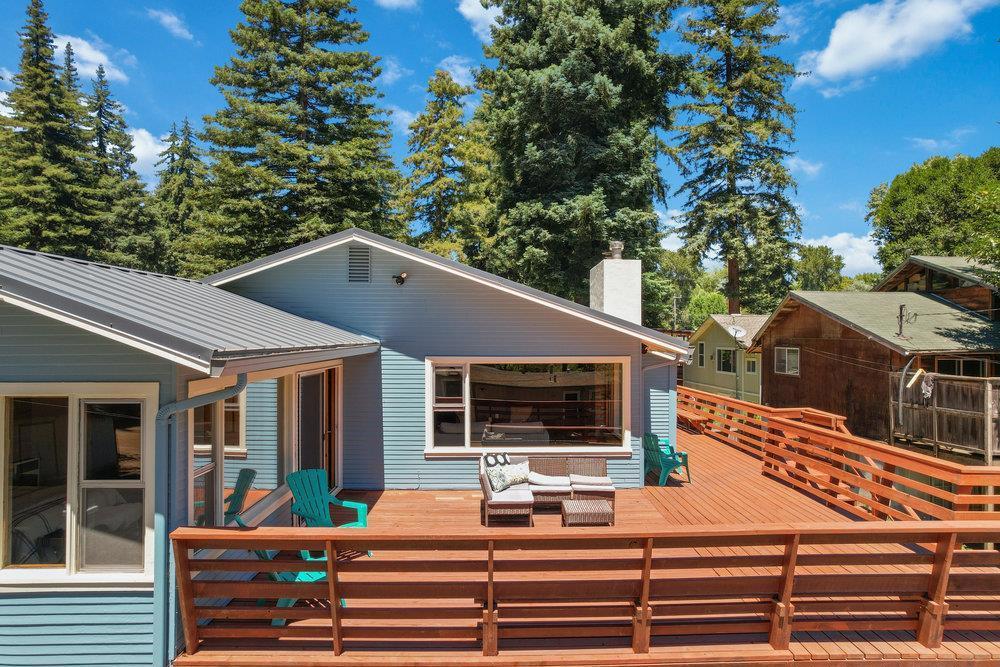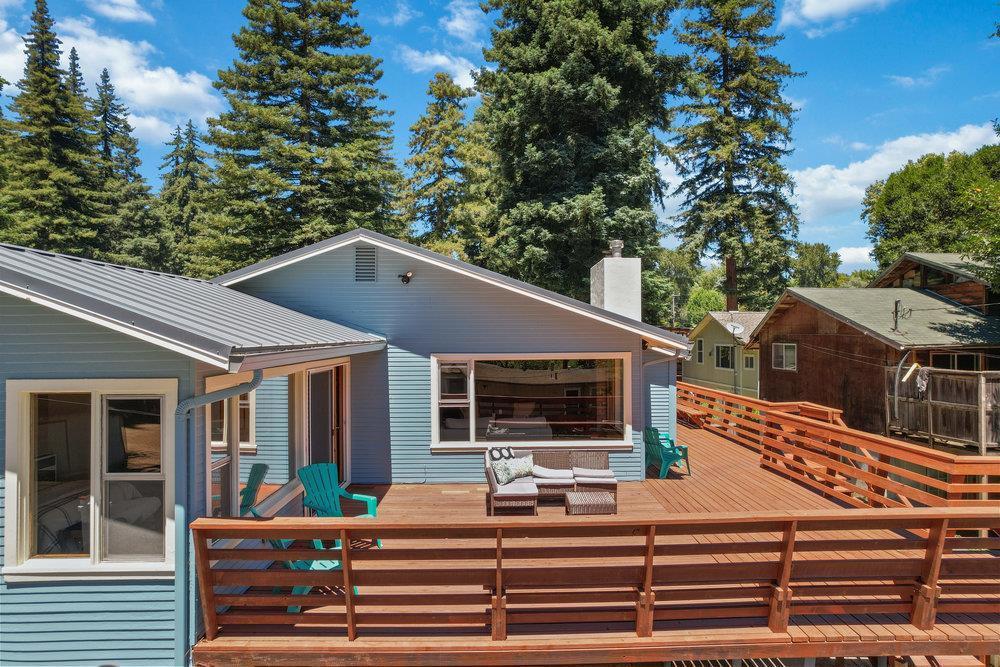 Beautiful home in coveted South Felton w/full sun, mature fruit trees & garden boxes bursting w/ veggies ready for summer salads. Upstairs French doors open into an open floor great room w/ vaulted ceilings & large picture windows that frame beautiful forest views. Vintage dumbwaiter. Kitchen is perfect for entertaining w/ eat-in breakfast bar & an extra large pantry. Downstairs is an ideal guest suite, granny unit, or turn into your primary retreat! High ceilings & soft natural light filtering through large windows. Expansive 2nd kitchen opens into the living room w/ easy access to the bountiful garden outside. There is laundry upstairs & downstairs. Ample 6-car parking. Easy access to Hwy 9 and the beautiful beaches of Santa Cruz. Prime location near downtown Felton for local events, shopping & restaurants. Neighborhood has private access to the San Lorenzo River for swimming, fishing & the Henry Cowell State Park. Leave your front door and be in the park in under 30 seconds.