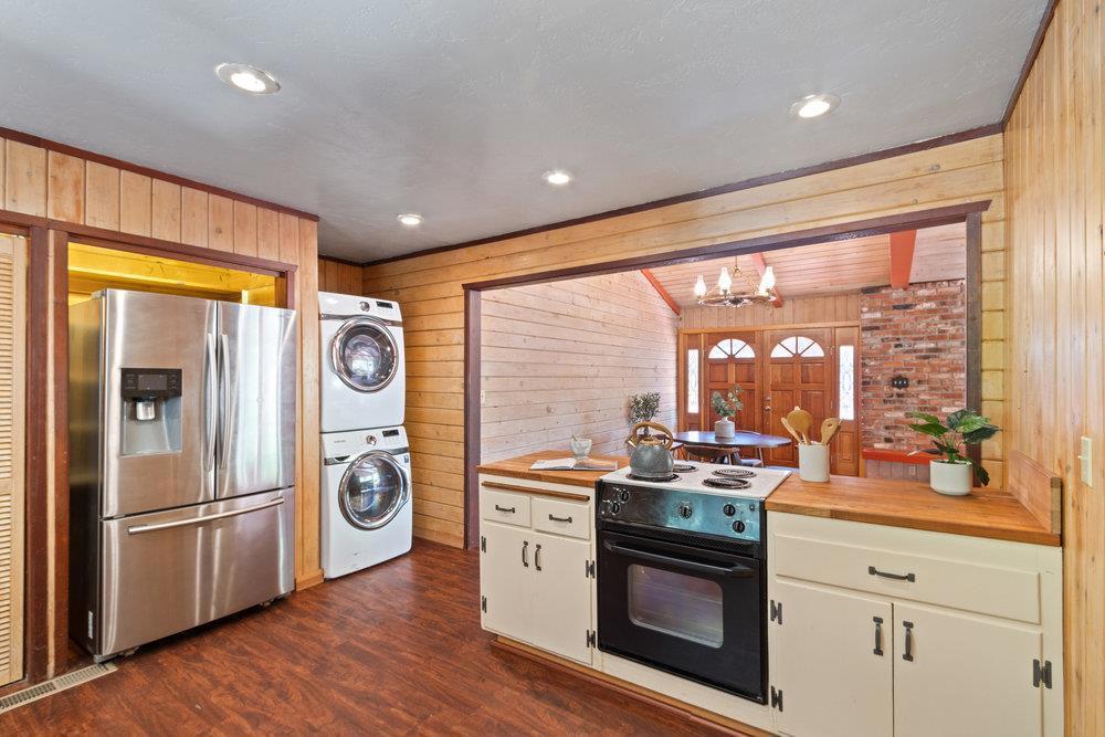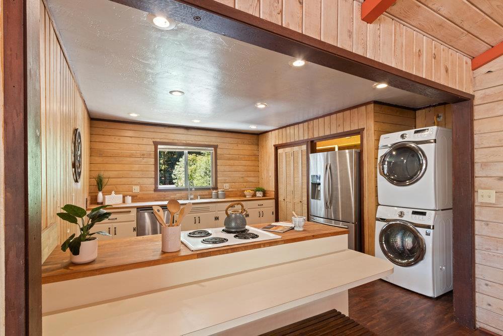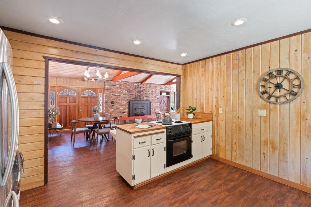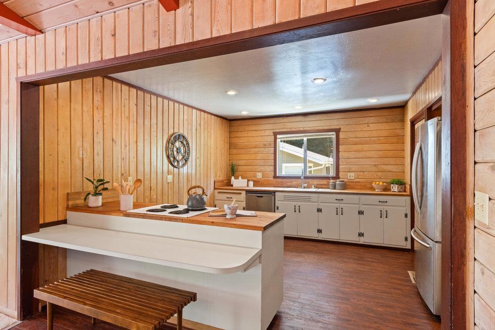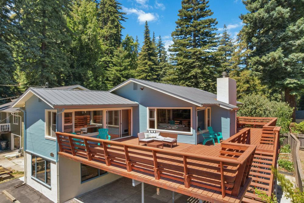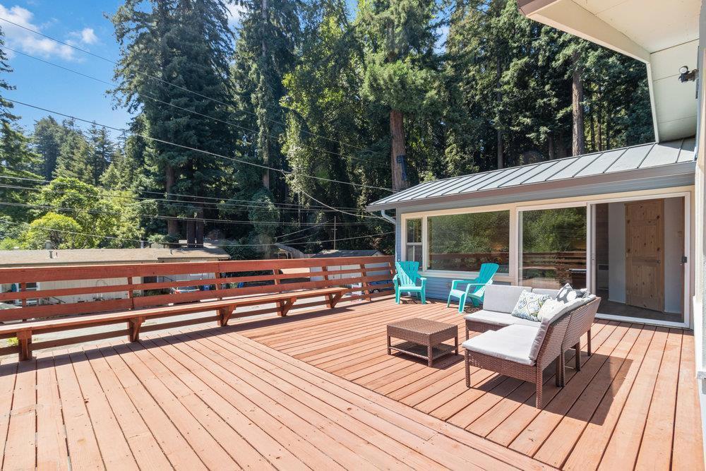 Beautiful home in coveted South Felton w/full sun, mature fruit trees & garden boxes bursting w/ veggies ready for summer salads. Upstairs French doors open into an open floor great room w/ vaulted ceilings & large picture windows that frame beautiful forest views. Vintage dumbwaiter. Kitchen is perfect for entertaining w/ eat-in breakfast bar & an extra large pantry. Downstairs is an ideal guest suite, granny unit, or turn into your primary retreat! High ceilings & soft natural light filtering through large windows. Expansive 2nd kitchen opens into the living room w/ easy access to the bountiful garden outside. There is laundry upstairs & downstairs. Ample 6-car parking. Easy access to Hwy 9 and the beautiful beaches of Santa Cruz. Prime location near downtown Felton for local events, shopping & restaurants. Neighborhood has private access to the San Lorenzo River for swimming, fishing & the Henry Cowell State Park. Leave your front door and be in the park in under 30 seconds.
