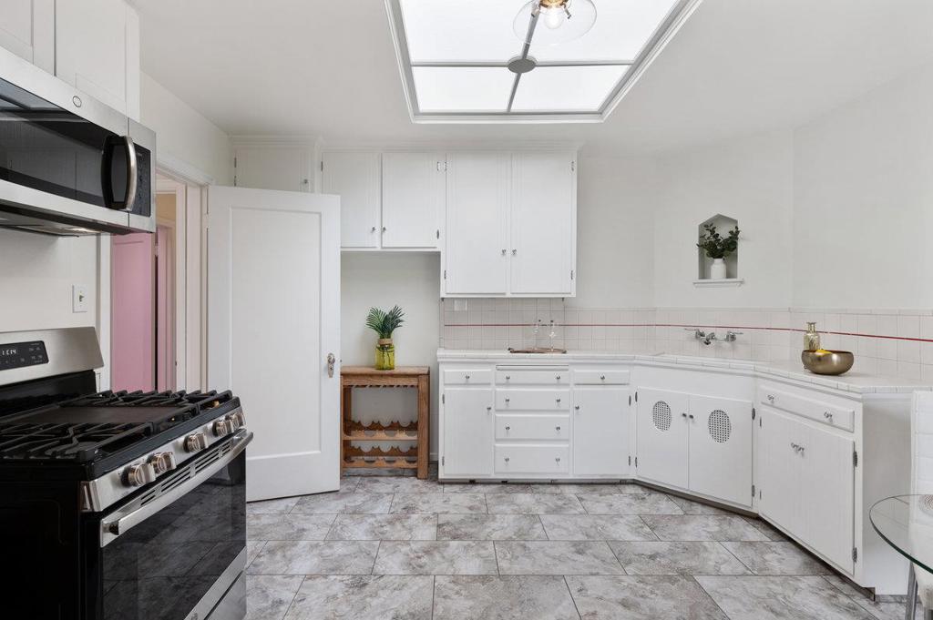 This mid century mixed use property provides immense possibilities. The upper level is a 2 bedroom & 1 bathroom home that has been meticulously maintained & restored to its original Art Deco form. Mid Century Big & bright living room freshly painted and hardwood floors refinished along with a wood burning fireplace. Dining area with spectacular chandelier & skylight. Large eat in kitchen. 2 spacious bedrooms with ample closet space. Large full deco bathroom with tub & stall shower. Throughout the home you will notice all of the period details and charm - moldings, frames, and fixtures. Downstairs is a separate family room that can be a potential in law studio or office. Additionally is legal commercial storefront with separate entrance & bathroom that would be ideal for retail, professional or service business. Must see this property to see the full potential. This is a rarely available mixed used property close to many amenities & conveniently located near all public transportation.