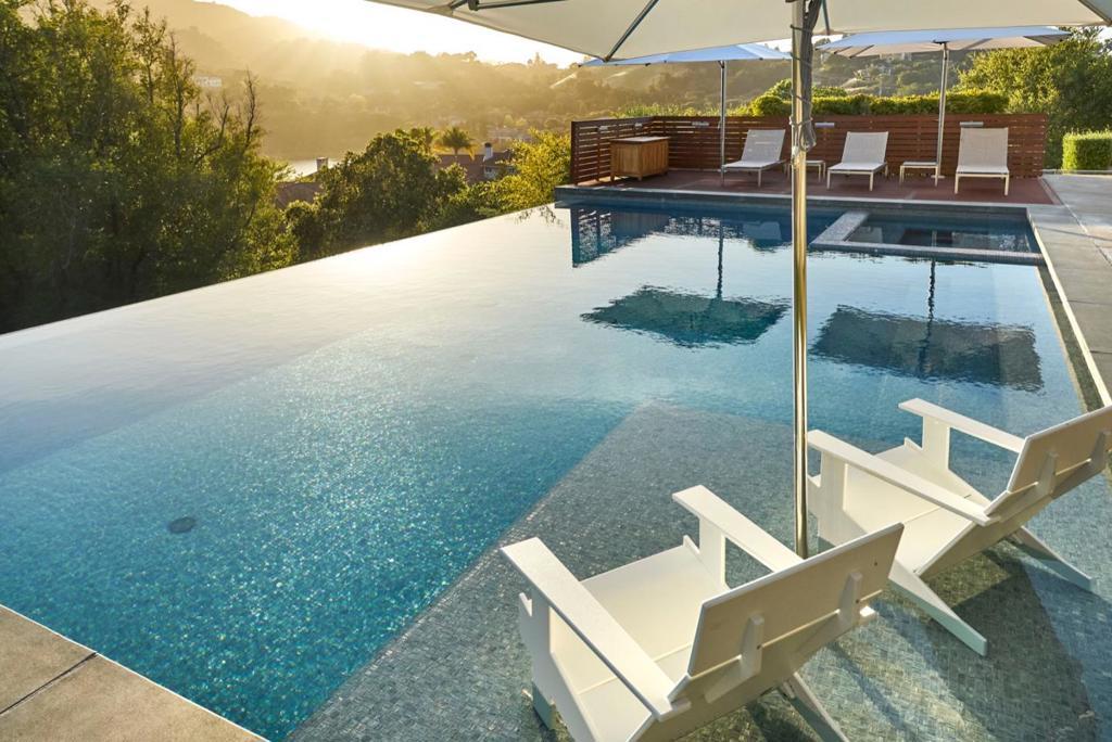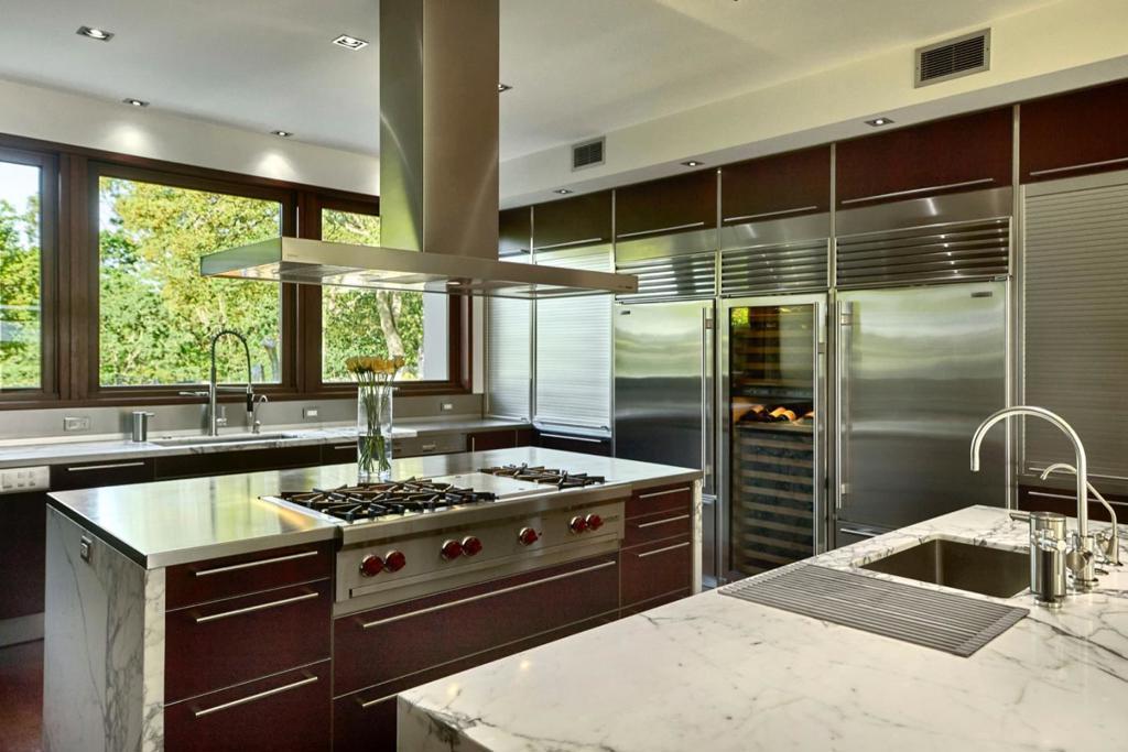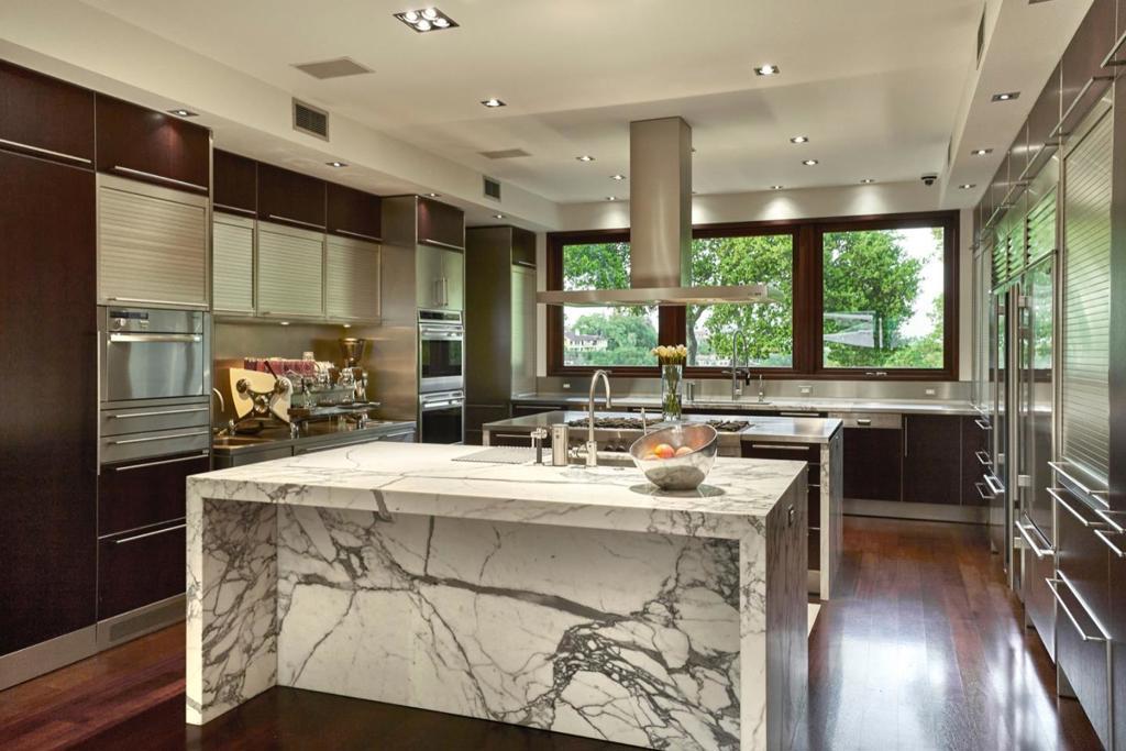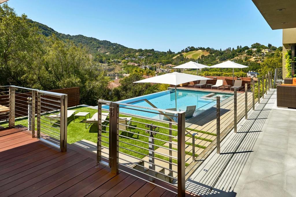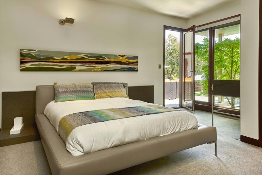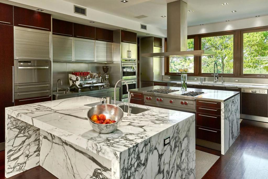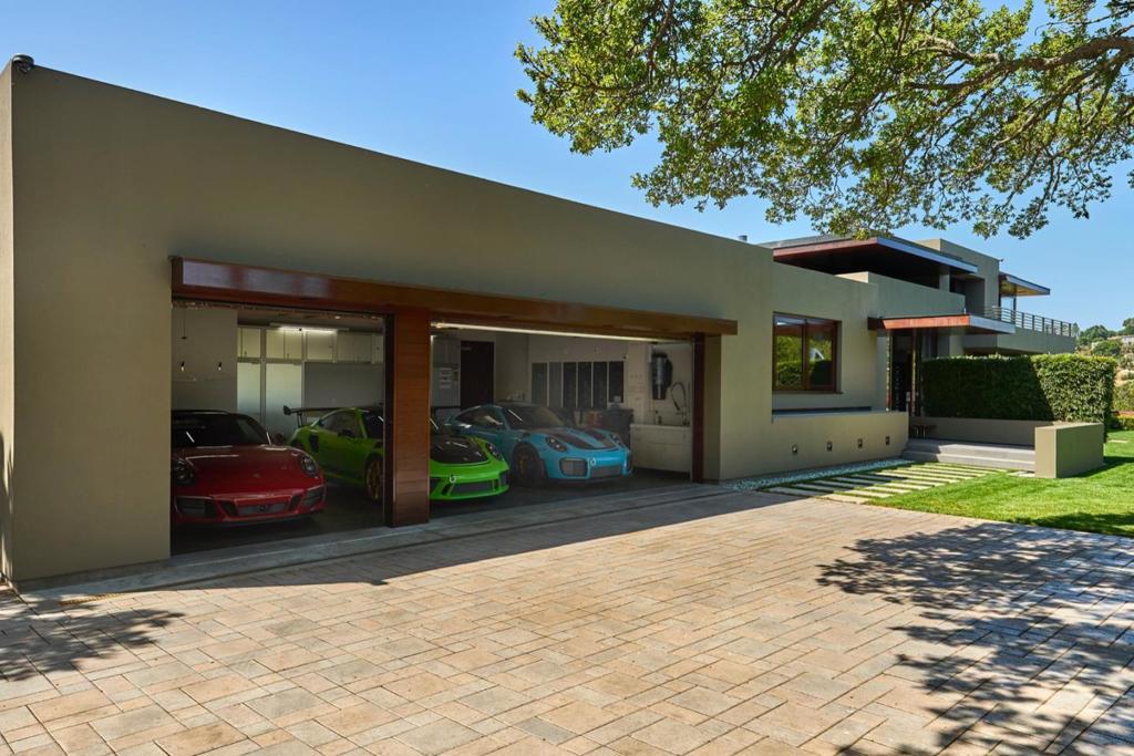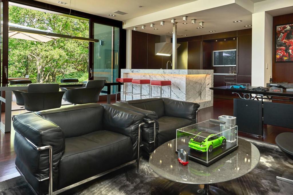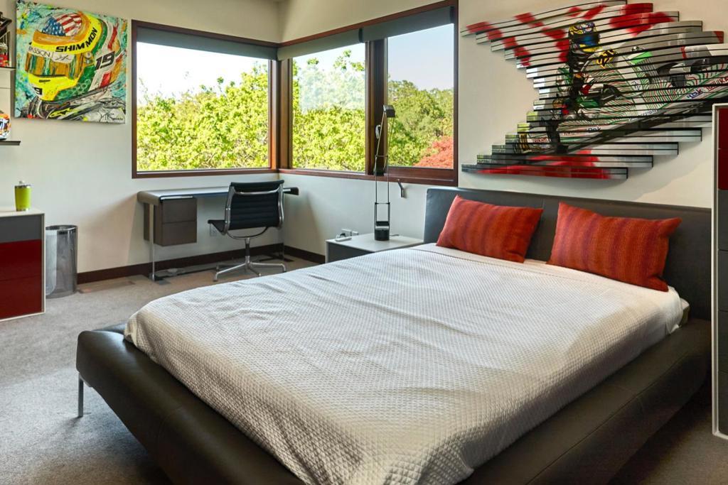 One look at the rendering Swatt-Miers showed me and I said, "that's the house I want!" said owner for the three-story dwelling with its sculptural massing of rectilinear forms and astonishing architecture. Starchitect '' Robert Swatt in turn, translated that vision to reality. Add to this a formidable roster of talented interior designers, a battalion of artisans, contractors, engineers, consultants, and in consultation with Lutron Home Automation, created a smart home befitting this iconic Silicon Valley residence. Considering its mass, the house makes a relatively discrete impression from the quiet street, with much of the structure's bulk atop a knoll and concealed from view via a mahogany wood clad gate. Once encountered straight on, however, the scheme is a tour de force of architectural acrobatics, its breathtaking steel cantilevered overhangs and column-free spans invoking a palpable sense of weightlessness. Inside, details were worshiped and "value engineering " not an option.
