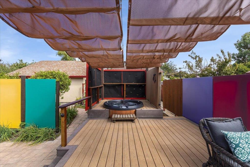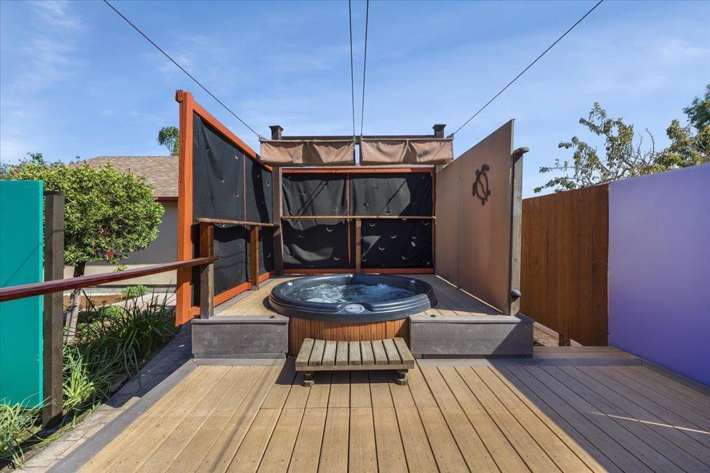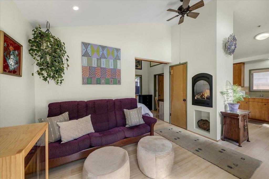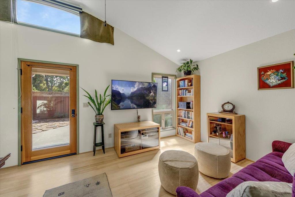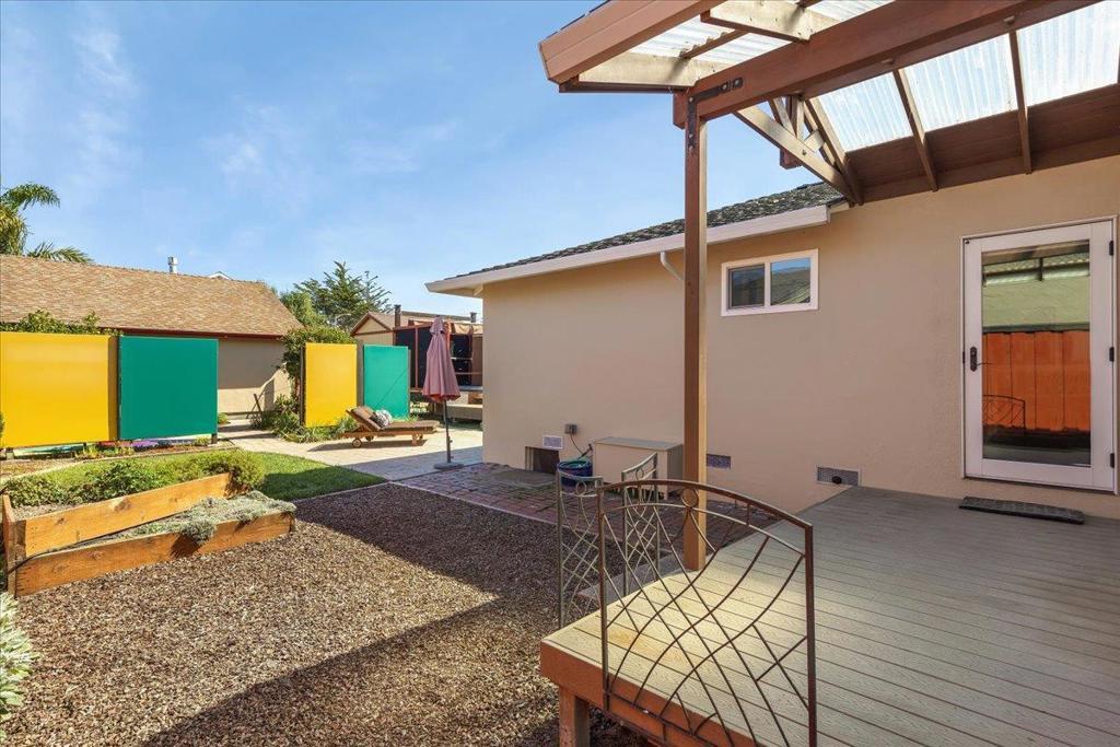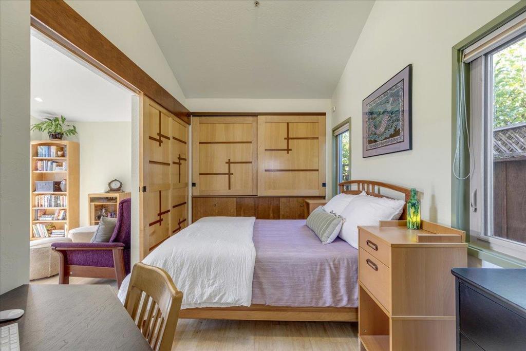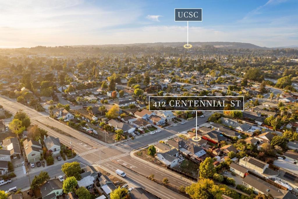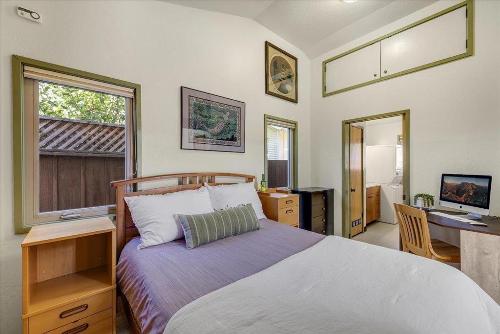 On a large lot, in the heart of the lower westside, you will discover this beautifully updated 2 bd, 1 bath home and detached 1 bd ADU, with an abundance of flexible living options with artistic details and craftsmanship at every turn. A few blocks away are some of the most stunning and iconic landmarks in all of Santa Cruz. The main home was remodeled in 2012, is equipped with solar panels, a spacious yard with hot tub and fire pit and was thoughtfully redesigned with recycled glass countertops, custom cabinetry and an effortless flow throughout. The ADU was built in 2004, every square inch meticulously designed for form, function and beauty. Vaulted ceilings, custom woodwork, a full size kitchen, stained stucco shower surround, a fireplace insert and an abundance of windows are just a few of the awe inspiring fine points. A private entrance offers great separation from the main home and leads you to the charming yard, complete with storage shed, art studio and Meyer lemon tree.