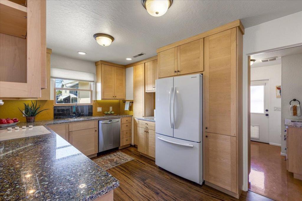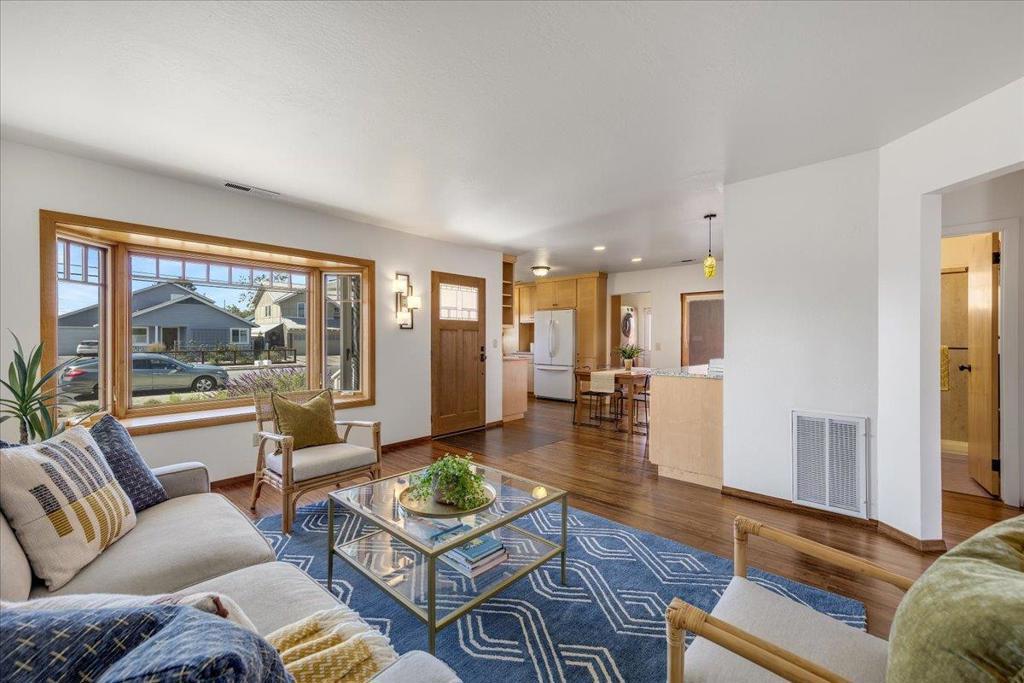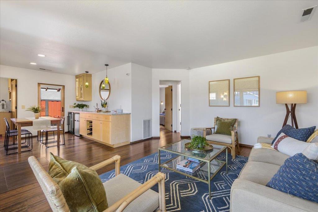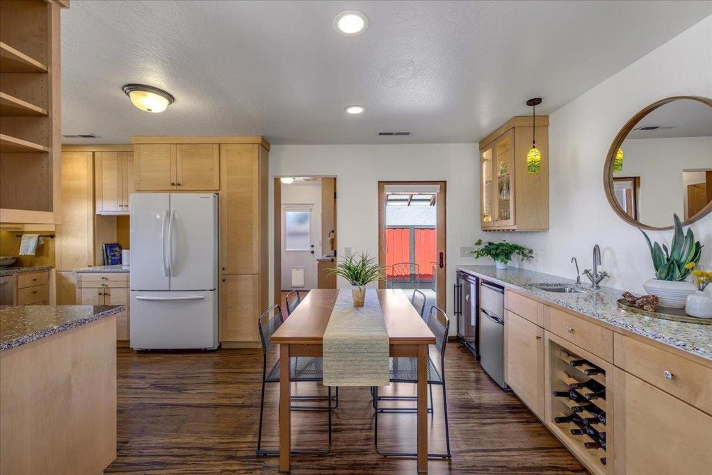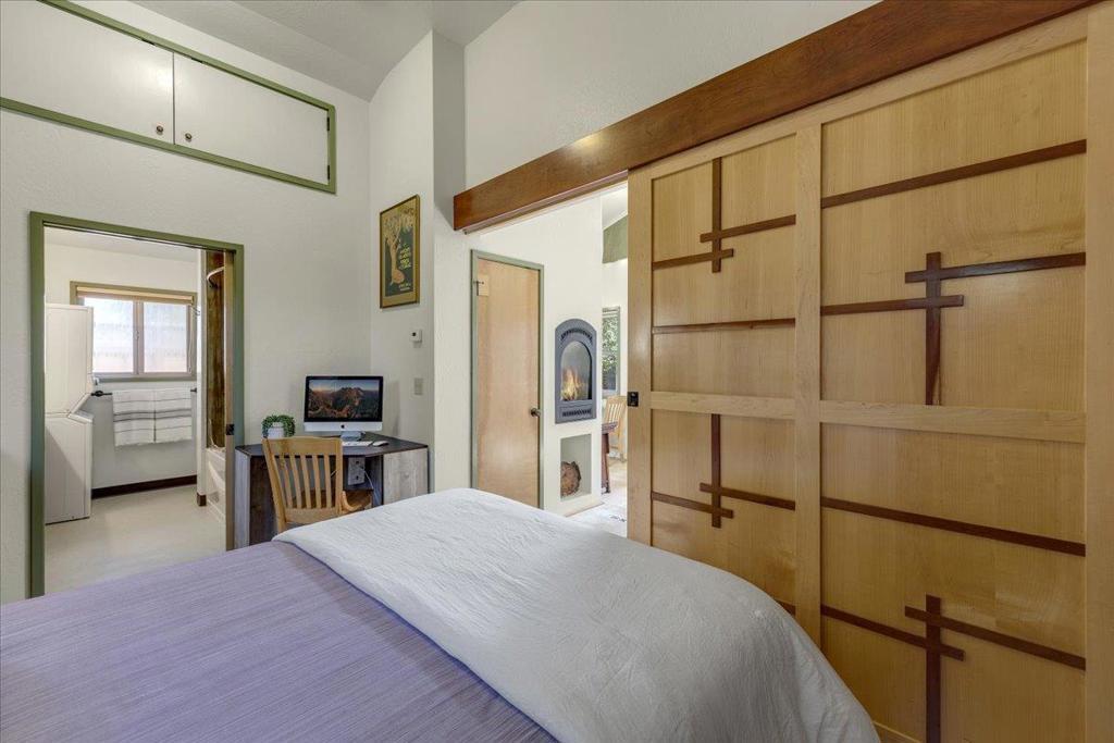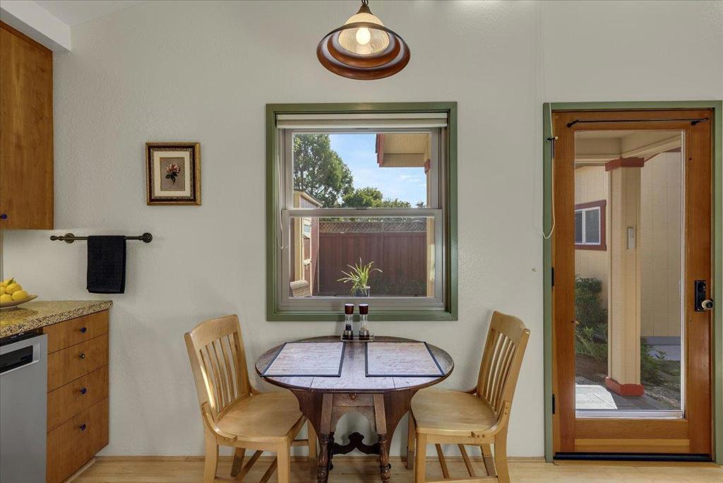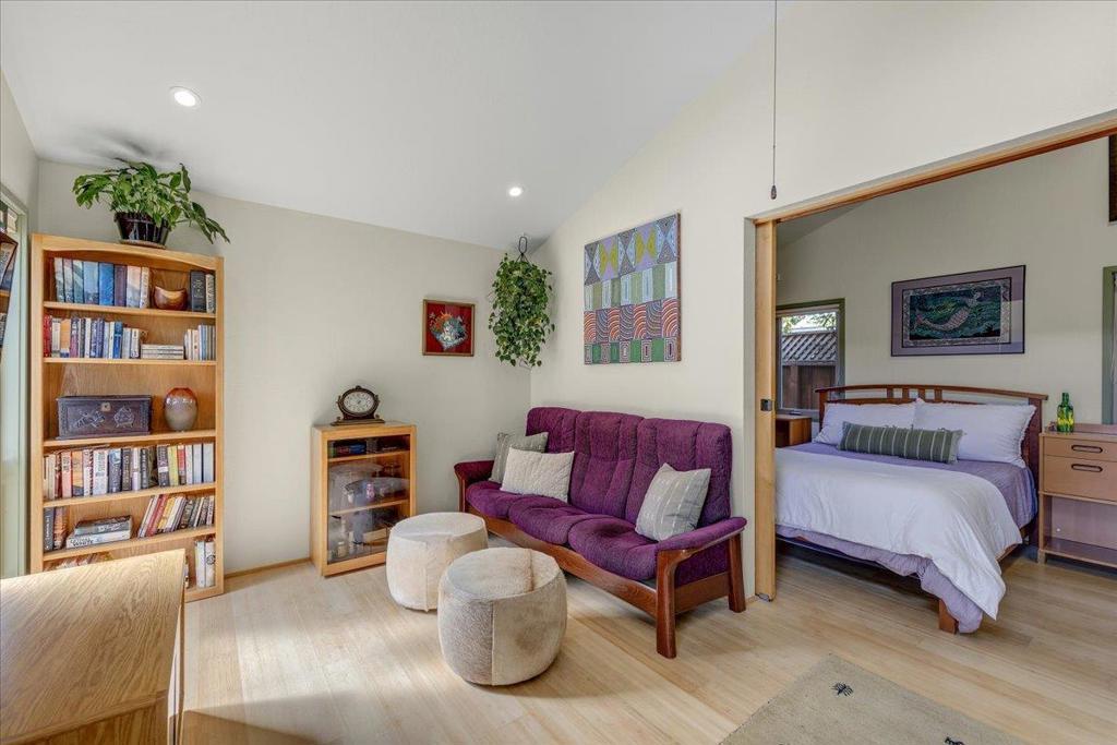 On a large lot, in the heart of the lower westside, you will discover this beautifully updated 2 bd, 1 bath home and detached 1 bd ADU, with an abundance of flexible living options with artistic details and craftsmanship at every turn. A few blocks away are some of the most stunning and iconic landmarks in all of Santa Cruz. The main home was remodeled in 2012, is equipped with solar panels, a spacious yard with hot tub and fire pit and was thoughtfully redesigned with recycled glass countertops, custom cabinetry and an effortless flow throughout. The ADU was built in 2004, every square inch meticulously designed for form, function and beauty. Vaulted ceilings, custom woodwork, a full size kitchen, stained stucco shower surround, a fireplace insert and an abundance of windows are just a few of the awe inspiring fine points. A private entrance offers great separation from the main home and leads you to the charming yard, complete with storage shed, art studio and Meyer lemon tree.