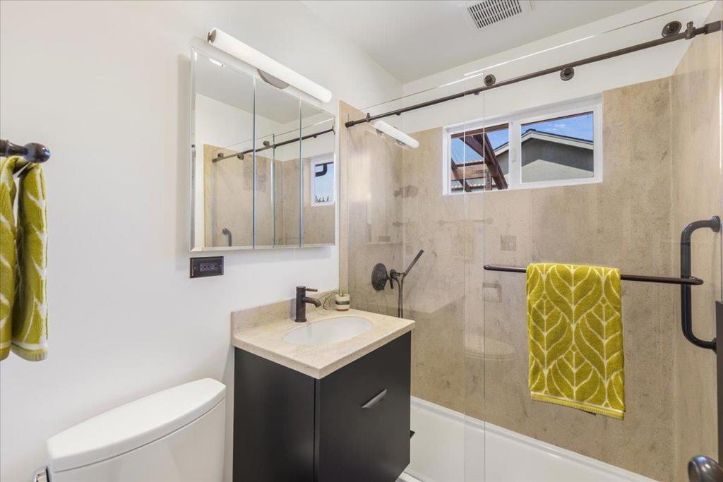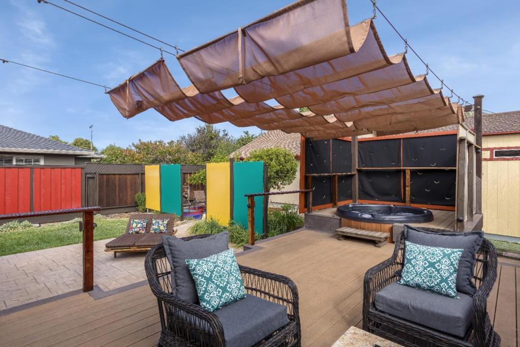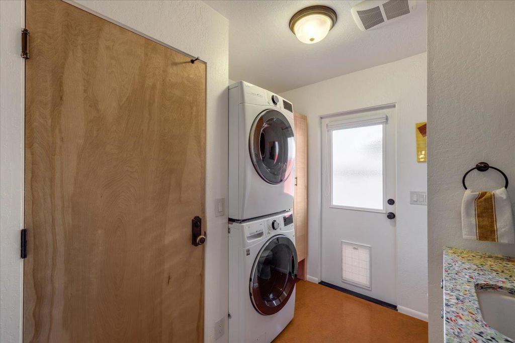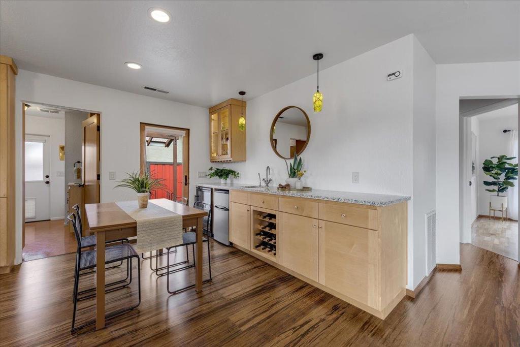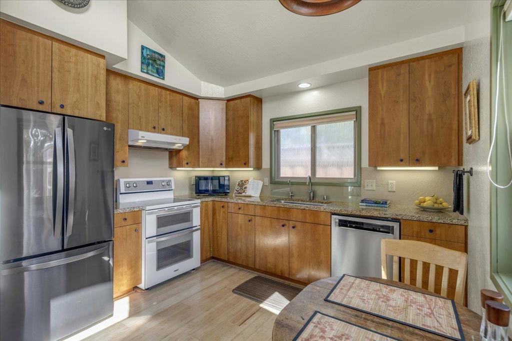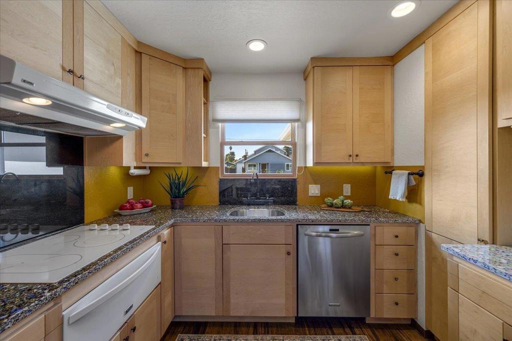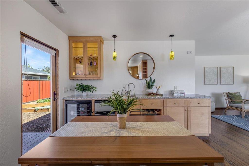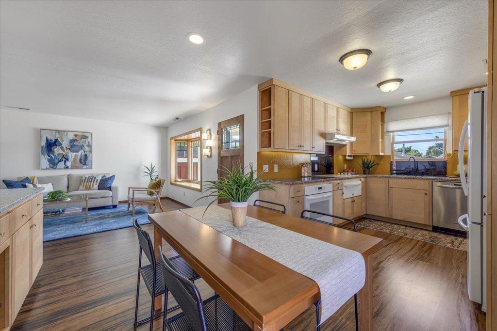 On a large lot, in the heart of the lower westside, you will discover this beautifully updated 2 bd, 1 bath home and detached 1 bd ADU, with an abundance of flexible living options with artistic details and craftsmanship at every turn. A few blocks away are some of the most stunning and iconic landmarks in all of Santa Cruz. The main home was remodeled in 2012, is equipped with solar panels, a spacious yard with hot tub and fire pit and was thoughtfully redesigned with recycled glass countertops, custom cabinetry and an effortless flow throughout. The ADU was built in 2004, every square inch meticulously designed for form, function and beauty. Vaulted ceilings, custom woodwork, a full size kitchen, stained stucco shower surround, a fireplace insert and an abundance of windows are just a few of the awe inspiring fine points. A private entrance offers great separation from the main home and leads you to the charming yard, complete with storage shed, art studio and Meyer lemon tree.