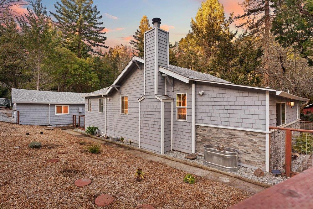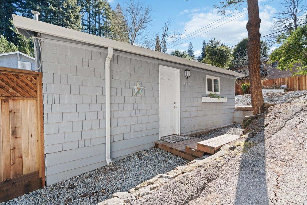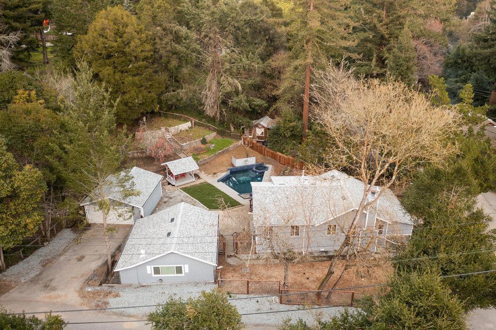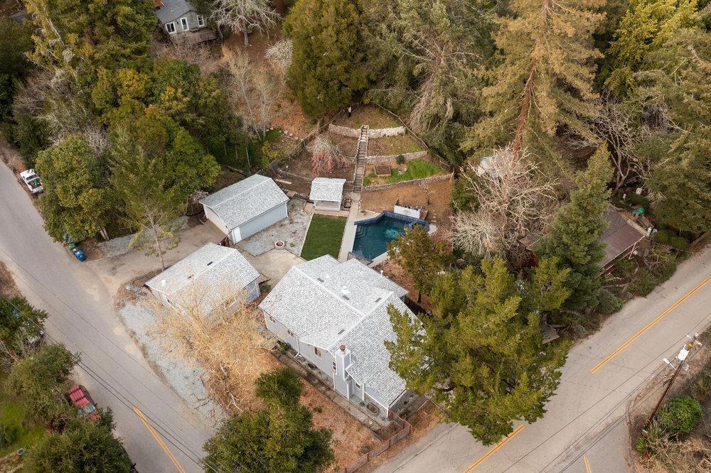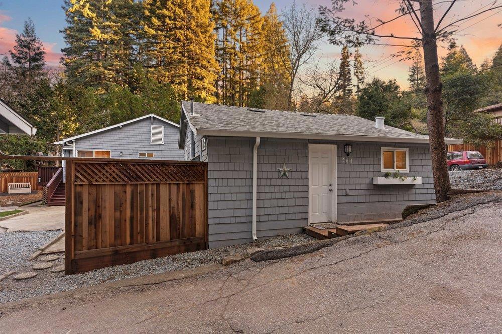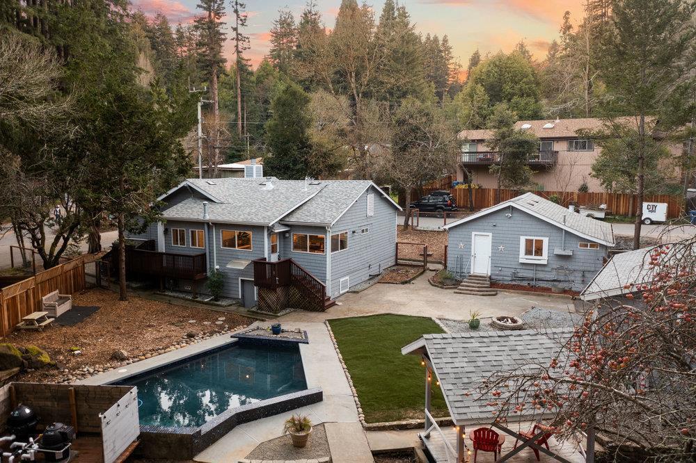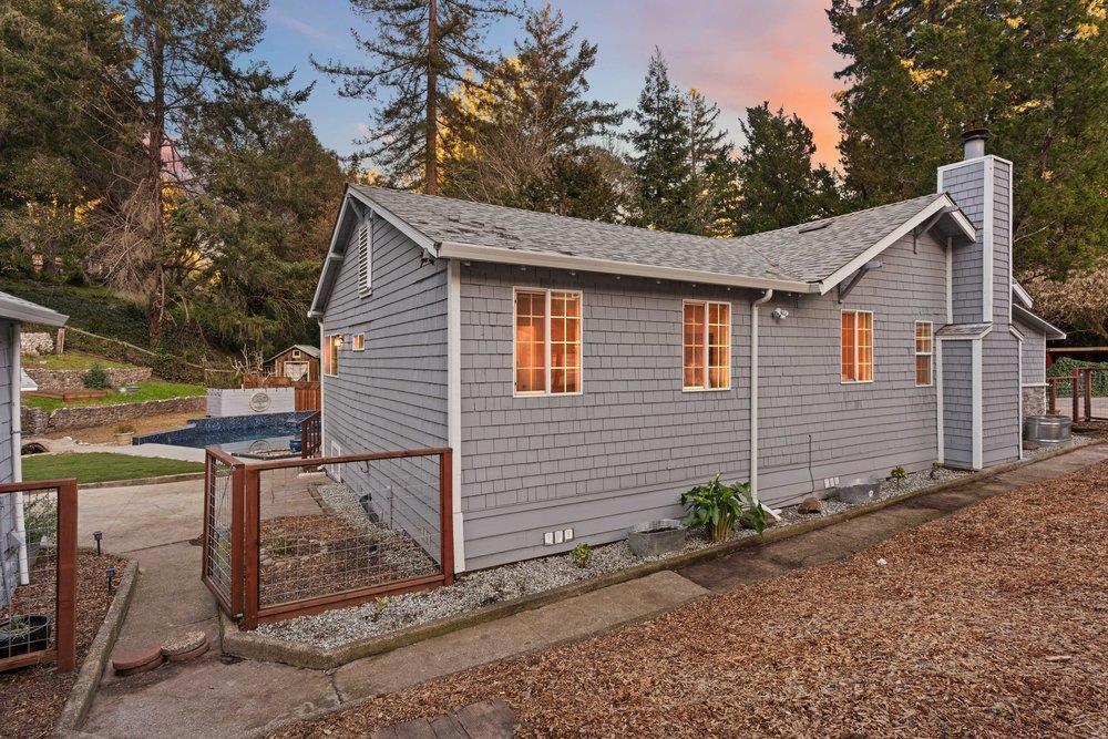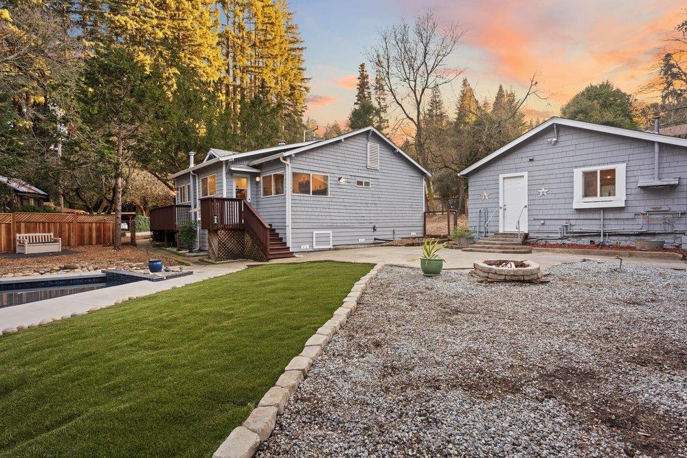 Surrounded by redwood groves in a friendly and quiet neighborhood, this single-level home is a sunny oasis near downtown Felton. Indoors, the thoughtfully designed living rooms fireplace is centered for a cozy yet spacious atmosphere. Host guests for dinner easily with the fully stocked modern kitchen with quartz countertops and a tile backsplash that opens into the sunny dining area. The primary bedroom has a jack-and-jill bathroom and a closet for easy living, while the two others can host guests or be transformed into an office! The spacious ADU has it all: a kitchen, bathroom, bedroom, storage, and a cozy stove! Sun shines down on the fully-fenced yard with two one-hundred-year-old apple trees, a luxurious pool and hot tub(with recently updated equipment), green grass, a pergola, and terraced land perfect for gardening. Spacious detached 2-car garage. Easy access to Feltons bustling center, Henry Cowell Redwood State Park, and historic HWY 9 into Santa Cruz or Silicon Valley.