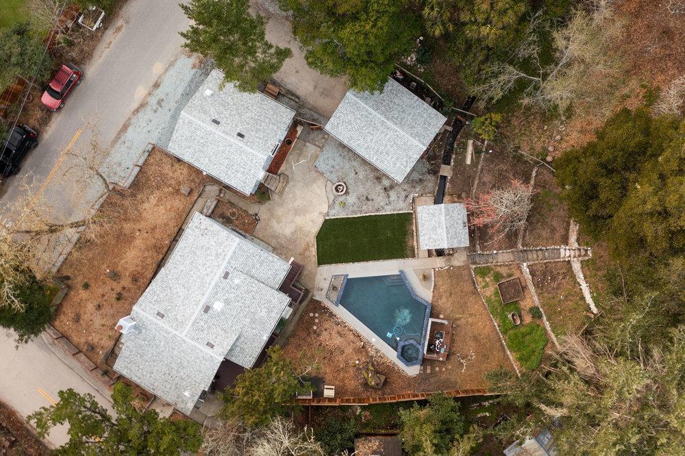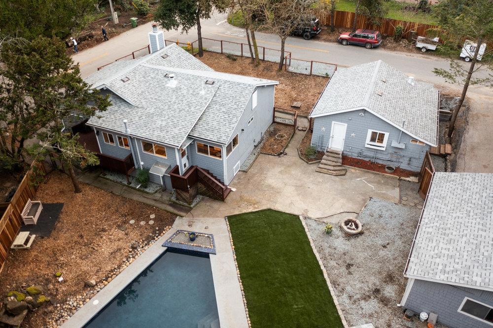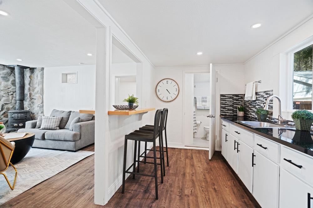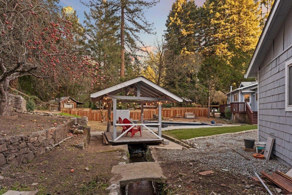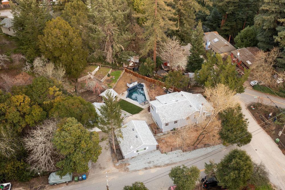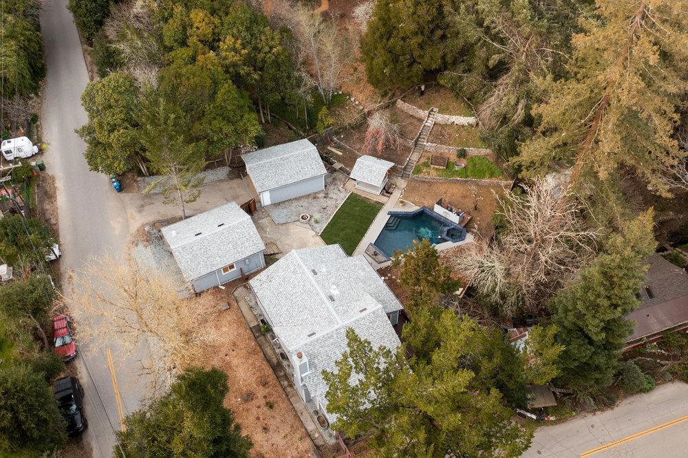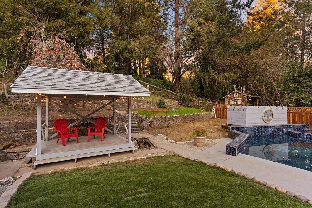 Surrounded by redwood groves in a friendly and quiet neighborhood, this single-level home is a sunny oasis near downtown Felton. Indoors, the thoughtfully designed living rooms fireplace is centered for a cozy yet spacious atmosphere. Host guests for dinner easily with the fully stocked modern kitchen with quartz countertops and a tile backsplash that opens into the sunny dining area. The primary bedroom has a jack-and-jill bathroom and a closet for easy living, while the two others can host guests or be transformed into an office! The spacious ADU has it all: a kitchen, bathroom, bedroom, storage, and a cozy stove! Sun shines down on the fully-fenced yard with two one-hundred-year-old apple trees, a luxurious pool and hot tub(with recently updated equipment), green grass, a pergola, and terraced land perfect for gardening. Spacious detached 2-car garage. Easy access to Feltons bustling center, Henry Cowell Redwood State Park, and historic HWY 9 into Santa Cruz or Silicon Valley.