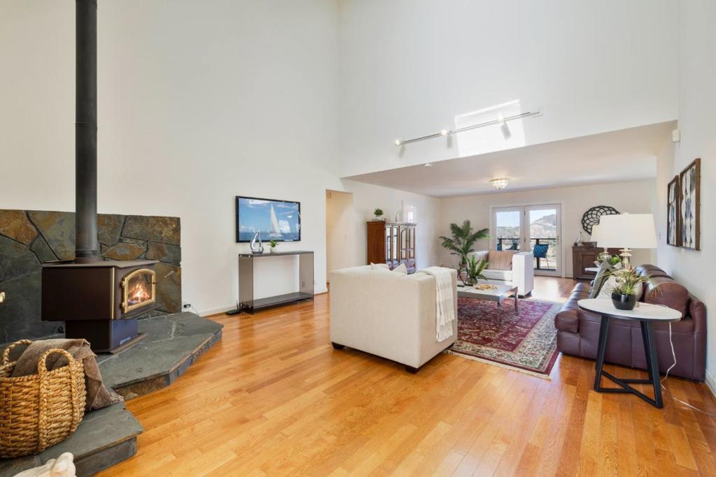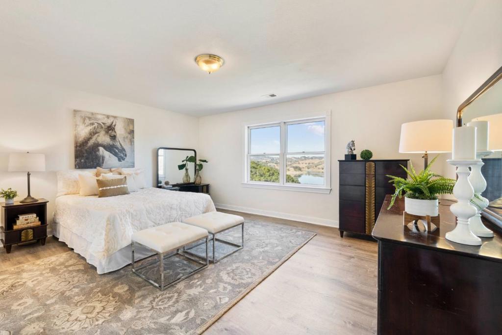 Welcome to the Castle on the Hill. There are NO other properties in Morgan Hill with such Magnificent unobstructed views of Chesbro Lake! It is truly one of a kind. This home has a host of exquisite features that begin with a beautifully remodeled kitchen with gorgeous Shaker style cabinets, quartz counters, stainless steel appliances and VIEWS! Standing at the kitchen sink will never feel the same again! The family room is a vast space that has a sun room in front a cozy wood burning fireplace and a large balcony/deck where you can see birds flying and fish jumping in the lake. Imagine enjoying your favorite beverage while BBQing or just relaxing on this deck. More great main level areas are the formal dining and living room, a huge bonus room and a separate office, guest bed and a full bath. The primary retreat has a huge bath and also has spectacular views. This must see property sits on over 20 acres, has a workshop on site and is only minutes from downtown Morgan Hill!