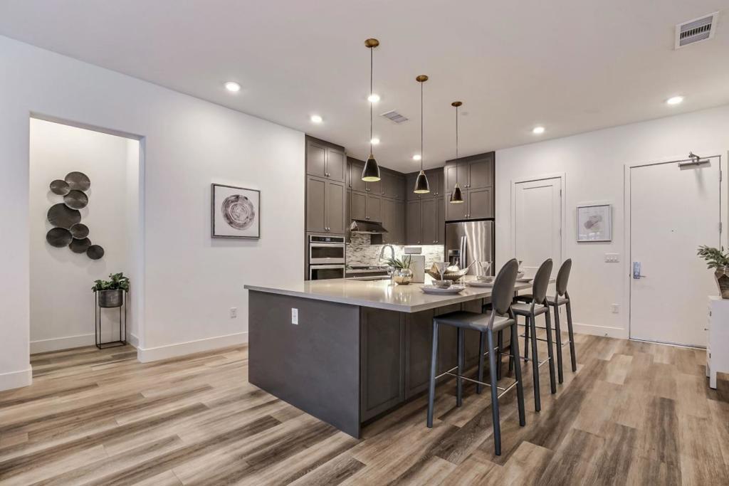 Dont miss your chance to live in a resort style community in Warm Springs! This gorgeous modern home is only 2 years old & boasts a 2 bed, 2 bath open floor plan w/ 10 FT high ceilings & clearstory windows, downstairs private 2-car garage unique for a condo unit, upgraded finishes, 16 stacking sliding dr opens to balcony, recessed lights, LVP hardwood floors, & spacious living room that leads to a large balcony w/ shaded patio, an eat-in Chefs kitchen w/ s.s. appliances, oversized 9' center island w/ quartz countertop, European style cabinetry extended all the way to ceiling The interior includes 2 spacious bedrooms, the primary suite offers a luxury bath w/ frameless shower stall, double vanity, & spacious walk-in closet. Amenities include 15,000 SF clubhouse, large lap pool, high-end fitness center, open sun deck & private cabana. Located across from Bart, 5-minute drive from Arroyo Agua Caliente Park & Fred Weibel Elementary, & minutes to restaurants, shops, & freeway.