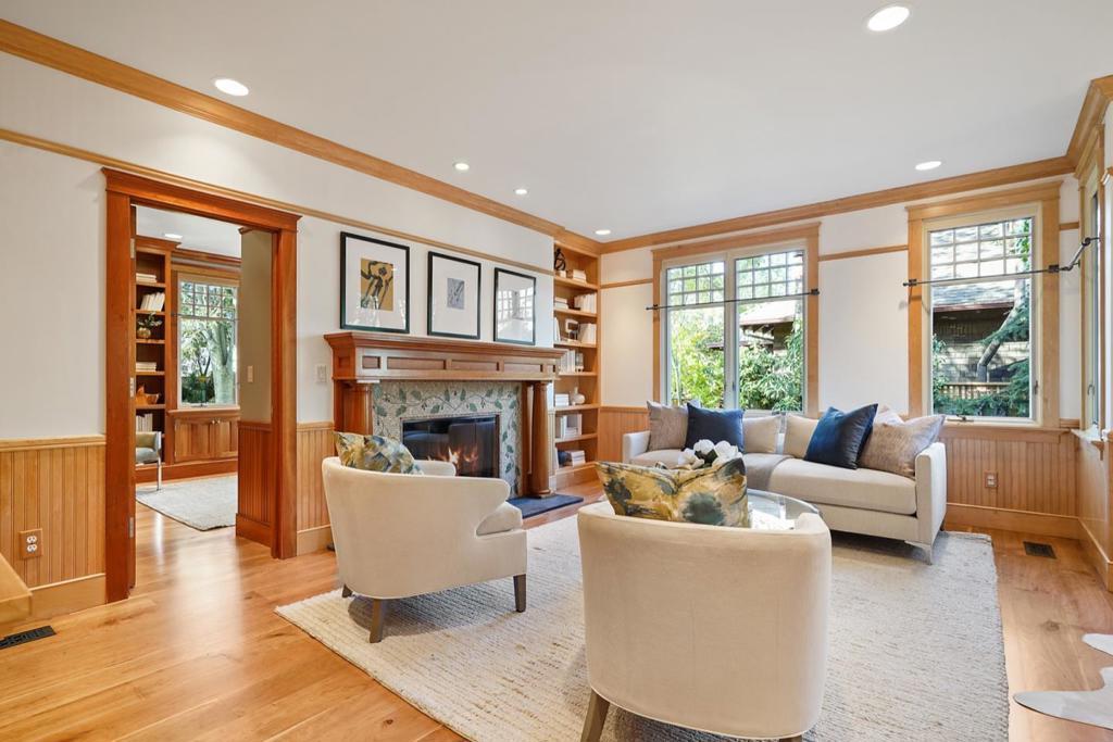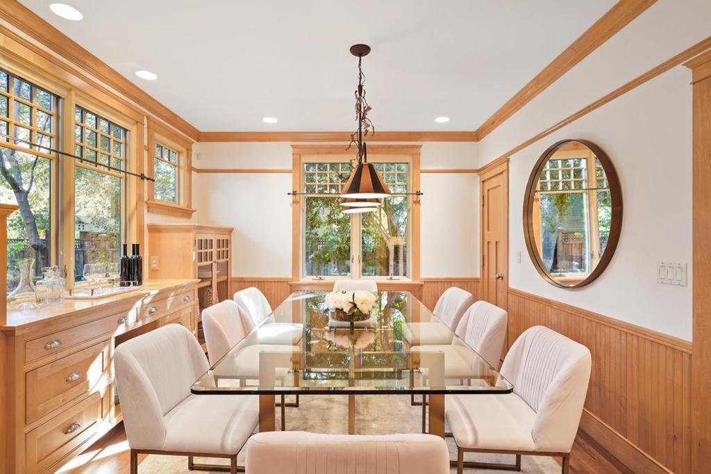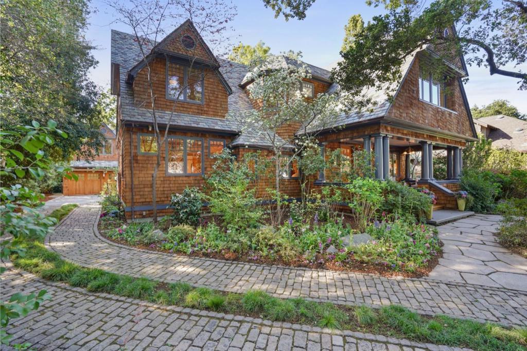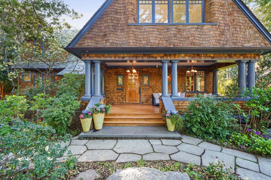 Authentic Victorian architecture from the 1890s, this Professorville home was built in 2004. Rare opportunity to own a newer home in Professorville. This home exudes a vintage ambiance from the outside, w/ wavy shingled front facade, ex-lg covered front porch & slate tile roof in a Necco wafer pattern. Reclaimed S.F. cobblestone with grass median strip recalls the earlier era & magnificent live oaks. Exceptionally bright and flowing over 3 levels w/ central staircase & elevator. Rich hue of cherry wood, on floors, moldings, columns, & Victorian spindles, with contrasting maple on wainscot and cabinetry. Formal living & dining rms & office, kitchen and family rm w/ built-in casual dining area in main level. 5 bdrms w/ 4 on the upper level, incl primary suite w/ infinity tub & steam shower. Recreation area & guest suite w/ bdrm & bth in lower level open to private patio w/ stairs to the rear yard. Guest bdrm & half-bath above the garage. Few blocks away from vibrant downtown PA.