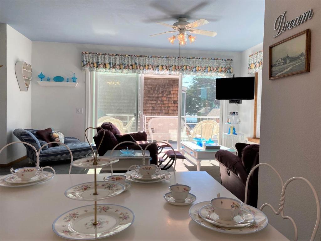 Beach Bliss Views Serenaded by Ocean Waves from Deck, Loft BR, Living/Dining Rooms of this darling Beach Chic 1,800 sf. cottage + 331 sf. Ocean View Deck offering S/S BBQ Grill & Alfresco seating for 10. Indoor Laundry Rm w/Samsung W/D, & FREE On Street Parking WITHOUT a Permit-NO GARAGE. Upstairs Sleeping w/7 Beds for 8 People, consisting of 3 Twin Beds in the 3rd floor Loft BR, 1 Twin Bed + 1 Double Trundle/Day Bed (2 Twin Mattresses) in the 2nd floor Hall BR, and 1 Cal. King sized "Pillow Top" Bed in the 2nd floor Master BR; WiFi, very basic Cable TV, 4 Samsung Smart TV's w/4 DVD's, 2 Baby Gates + Motion Sensored Exterior Lighting and Nightlights for Safety. Caressed between the Harbor Marina & the Boardwalk/Wharf - WALK EVERYWHERE! FURNISHED SHORT TERM RENTAL Sep-May Off Season rate w/min 31 day Lease of $9,800, + $275 once/month Cleaning/Sanitization Fee. $30 per Adult Applicant Credit Report Fee. Utilities, Wi-Fi, 5 TV's w/basic Cable TV, Furniture/Decor, Kitchen Pots/Pans, Small Appliances, & Tableware. *Towels/Bed Linens only Included for up to 60 day stays, almost all the same as when rented out as Vacation Rental June-Aug at $5k/week base rent. AVAILABLE only OCT-MAY at the Monthly Off Season Rate w/$9,800 deposit. June-Aug Rates remain at $725/Night w/4 Night Minimum.