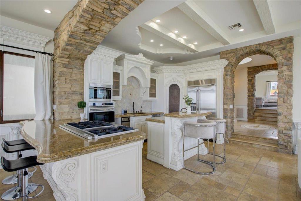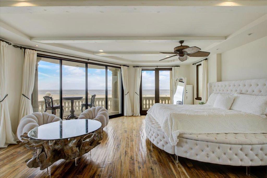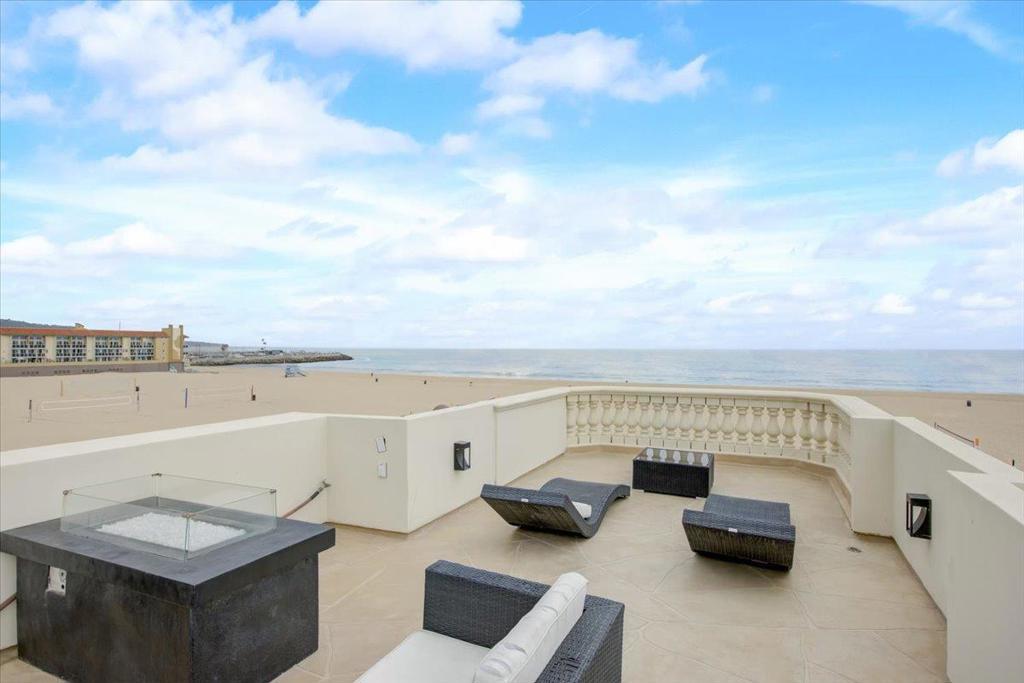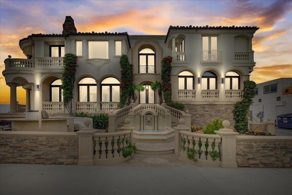Italian Villa meets California Coastal! Thoughtfully designed with 5 beds and 4.5 baths on nearly 4000 sqft, this home is ideal for entertaining guests while watching the sunset over the Hermosa Beach horizon from almost every room. This three story home features stone laid archways, marble and walnut hardwood flooring, a pool table room, rooftop lounge and five parking spaces. The main level brings you into the expansive living area that's open to the gourmet kitchen, dining room and leads you out to the beachfront patio. Opened by the retracting glass doors, the patio has a built-in barbeque, fire pit and fountain; perfect for entertaining on the Strand. The circular staircase or elevator will take you to the top level that includes two guest suites and a large primary suite with a walk-in closet, private ocean view deck, double marble sinks, walk-in shower and hot tub. Downstairs on the first level, guests have ultimate privacy with two additional guest suites, a laundry room and 2 car garage with a storage room. Located in the heart of Hermosa Beach and right on the Strand, it's a short stroll or bike ride to Hermosa, Redondo or Manhattan beach piers. This stunning luxury home and a true landmark on the Strand awaits the most discerning buyer to enjoy.