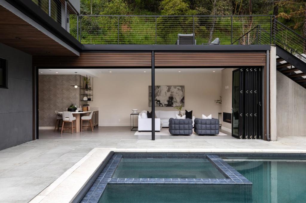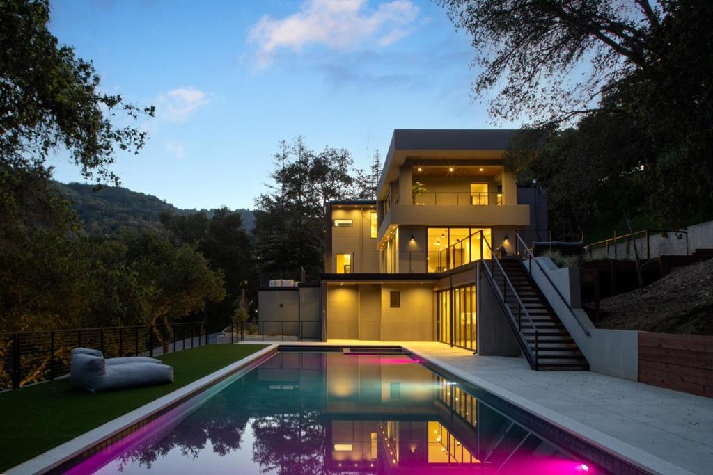 Nestled in the perfect setting for contemplating peace and relaxation, this spectacular new home features a structure of concrete, steel, and commercial grade glass, designed to minimize environmental impact while forging connections between interior spaces and the surrounding landscape. This retreat will make you long for a life enveloped by the great outdoors. Evergreen views are framed by expansive windows and luxury touches abound: Floating Stairs, French White Oak flooring, Glass Wine Cellar, Lacantina folding doors to pool, an elevator servicing all three levels and more . PRIMARY HOME 7,031 SF / 6BR/7BA + 3200 SF OF DECKING + CASITA 822 SF / 2BR/2BA = TOTAL LIVING SPACE 7,853 SF + 3 CAR GARAGE Convenient to Apple (8 miles), San Jose Airport (15 miles), Nvidia (18 miles), Palo Alto/Stanford (20 miles), and Meta (21 miles). Saratoga schools. Call for private showing.