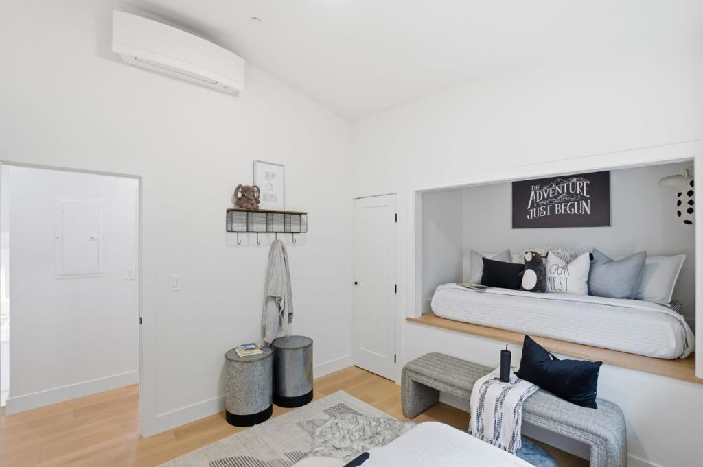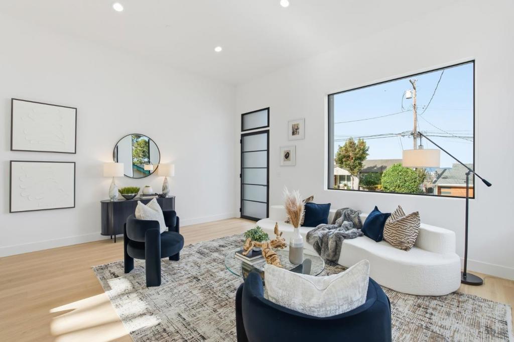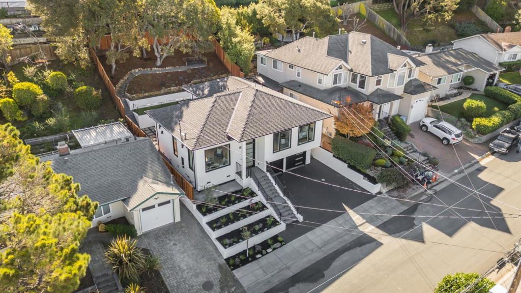 Beautifully rebuilt home in the heart of Westwood Knolls. Originally constructed in 1955, this property was essentially taken down to one wall and completely reimagined by a skilled local builder. The result is a modern 4-bedroom, 3-bath home with approx. 2,050 sq. ft. of living space on a flat 5,000 sq. ft. lot, offering the comfort and function of new construction in one of San Mateos most desirable neighborhoods. The main level features soaring 14-foot ceilings in the living room, creating an incredibly bright, open, and inviting space. The beautifully finished kitchen flows seamlessly for entertaining, and a first-floor bedroom with full bath provides ideal flexibility for guests or multigenerational living. Upstairs, the stunning primary suite showcases expansive views of the city and Bay, with two additional bedrooms completing the thoughtful layout. Upgraded throughout with new framing, insulation, sheetrock, electrical, plumbing, HVAC, an 80-gallon water heater, and a new roof, the home offers true turnkey living. Conveniently located near Hillsdale Shopping Center, Caltrain, 101/280, and perfectly situated between Silicon Valley and San Francisco.