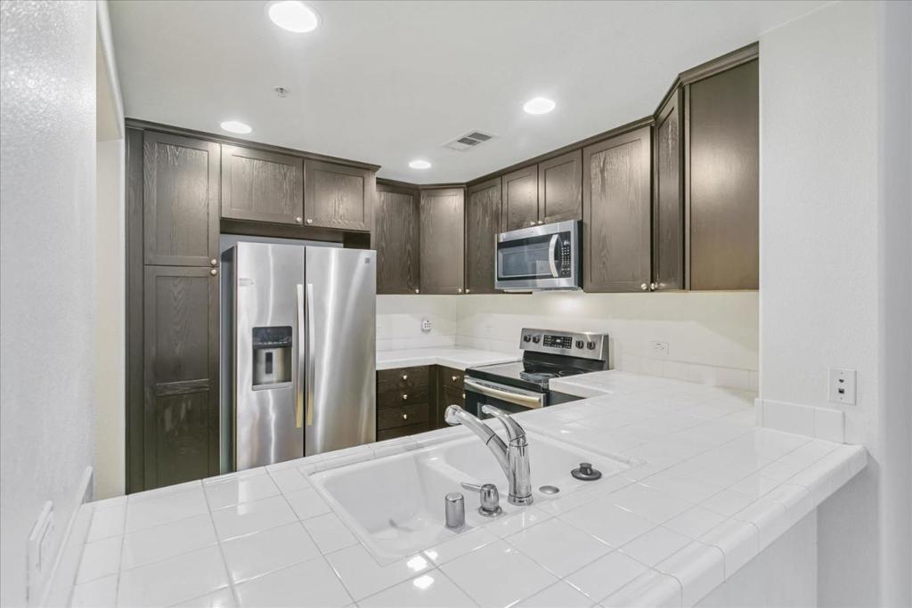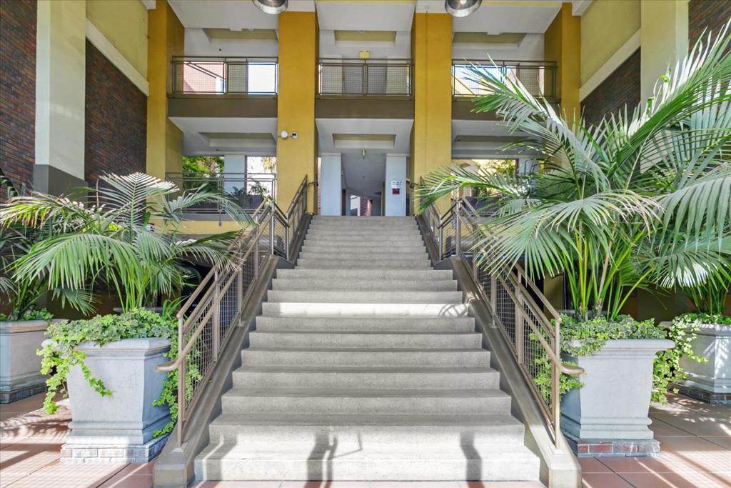 This one has it all! Welcome to one of the premier complexes in San Jose! Stunning first floor almost new condo in the centrally located Monte Vista Complex. This unit offers an open floor plan with large kitchen and large private patio off the living room. The kitchen features stainless steel appliances, tile counters, and tile floors. Master bedroom suite is spacious with walk-in closet, double sink vanity with cultured marble countertops, oversized tub over shower with cultured marble backsplash and glass enclosure. Additional features include laundry inside unit, double pane windows, central heat and A/C, secure building with elevators, gated parking garage with assigned tandem parking for 2 cars. Ideal location with the new Del Monte Park and dog park across the street. Close to VTA station, Diridon Station, Los Gatos Creek Trail, and SAP Center. Don't miss this rare opportunity!