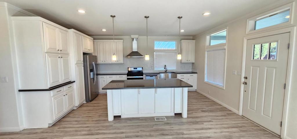 Welcome to Millpond #553, a place where Luxury, Lifestyle, and Location all collide in this stunning 2020 Silvercrest 3bed 2bath beauty. Enjoy approximately 1,678sq-ft of living space nestled in the community of Millpond for Older Adults. To start this home features a wonderful front porch that has views of the mountains. As you enter the home you are greeted with an open floorplan with inviting designer laminate floors, beautiful upgraded white cabinets accented by black granite countertops. Large living room/dining room combo with coffered ceiling and Bay window. 9ft flat ceilings t/o are fitted with solar tubes for extra light. Kitchen includes a farmhouse sink, recessed can lighting, and upgraded stainless appliances. Home features a large master bedroom with a large walk-in closet, spacious master bathroom with double sinks, custom Tiled Rain Forrest Shower, plus storage cabinets for linen and things. From ceiling fans, stacked windows, washer and dryer overhead cabinets, shed, and outdoor space to BBQ, all make this home very desirable and move-in ready.