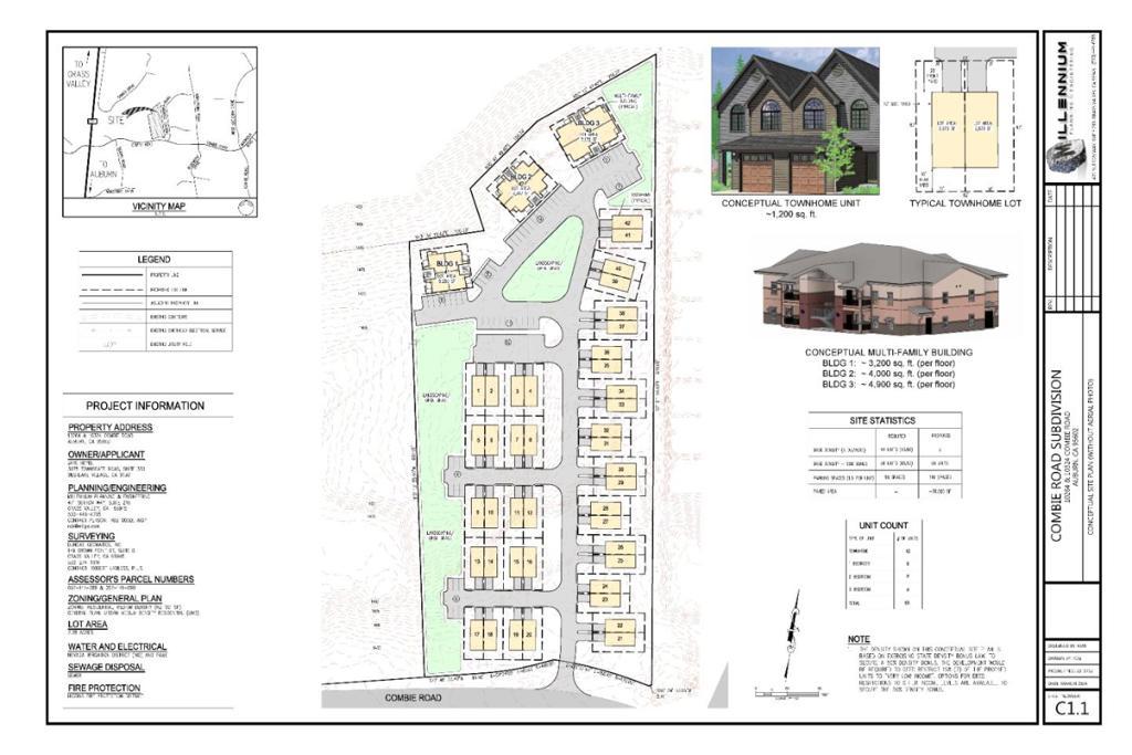 TENTATIVE MAP IN PROCESS WITH THE COUNTY. 10264 & 10324 Combie Road "Higgins Landing" Will be delivered Shovel-Ready - Residential Development | 66 Town Homes | 7.18 Acres An unparalleled investment opportunity by EF Homes in South Nevada County at Higgins Corner. This project offers 66 Town homes on 7.18 acres, situated within the newly designated medium-density residential zone of the Greater Higgins Area Plan (approved March 2023). Strategic Location & Market Demand Located in the heart of a thriving area with a projected need for 480+ new homes, 66,000 sq. ft. of retail, and 38,000 sq. ft. of commercial/industrial space by 2042. Higgins Corner features key amenities like Higgins Marketplace (grocery store, car wash, retail) and Combie Plaza (CVS, Starbucks, Chevron). Prime Zoning & Accessibility Zoning: R2 Medium-Density Residential. Excellent access to Auburn, Grass Valley, and next door to Lake of the Pines & Cascade Crossings. Added Income prior to build is a Rented single-family home on-site & the Soil broker leasing part of the property for approx $5,000 per month. This development-ready parcel combines strategic location, demand, and income potential, creating a prime opportunity for investors and developers. Seller is open to a carry.