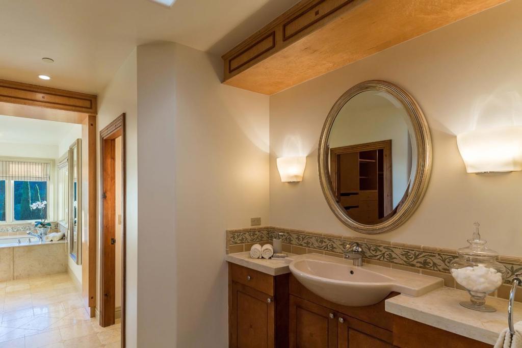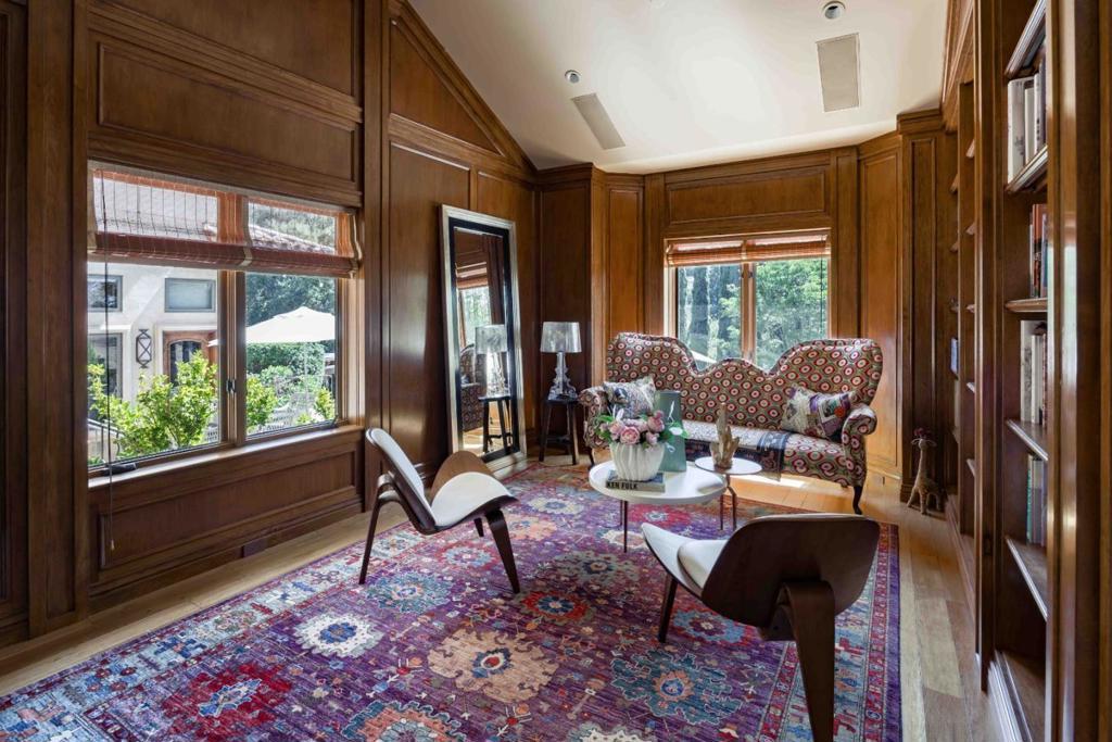 In this haven of 4.4 acres in Los Altos Hills, echoes of the Italian countryside unfold within a custom-built Tuscan estate. Impeccable details weave through more nearly 8,300 square feet of space, creating a tapestry of high-end luxury and craftsmanship. Nearly every lifestyle need is accounted for: expansive formal rooms for entertaining, a kitchen with top-tier appliances, two stylish home offices, a cinema-quality theater, a 2,200+ bottle wine cellar, a lounge, and more. Retreat to the primary suite with its own fireplace or the secondary suite with a kitchenette and private entrance. Outside, immaculate grounds provide an oasis of serenity with a cabana and stunning infinity pool. And though you will feel immense privacy within its gates, this home is just a short drive from downtown Los Altos, an esteemed country club, gorgeous nature preserves, and top-ranked Palo Alto schools (buyer to verify eligibility).