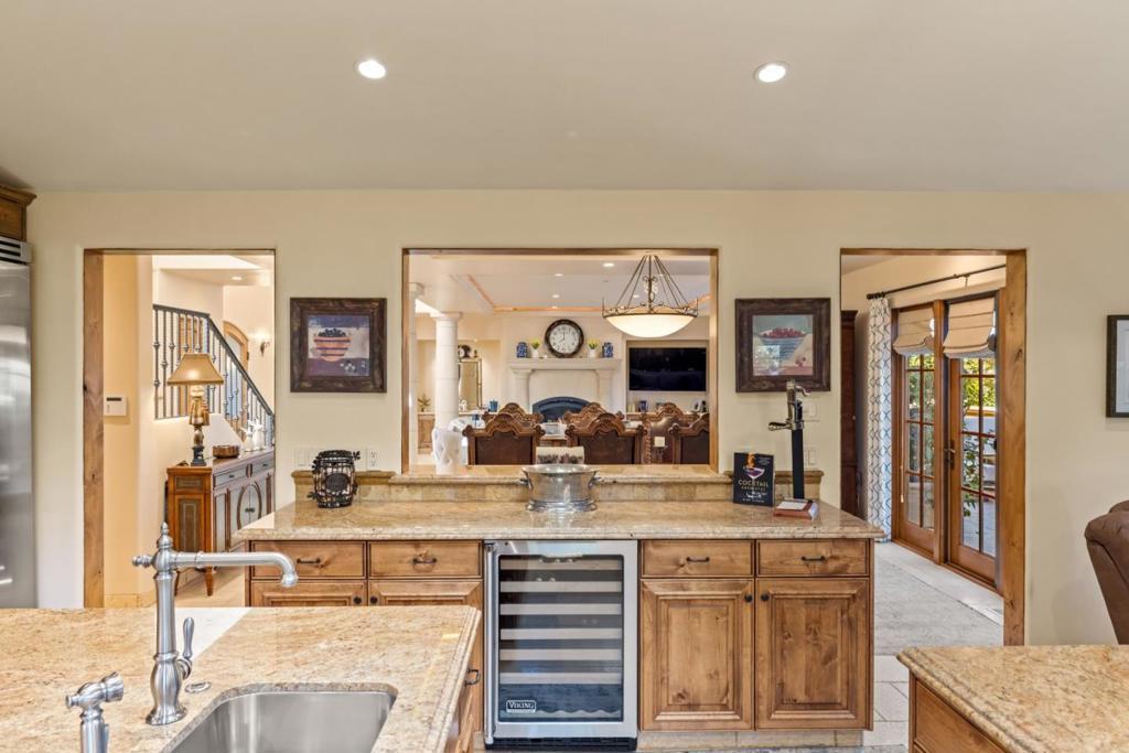 Welcome to 3116 Bird Rock Road, a stunning Mediterranean-style home in the heart of Pebble Beach. This elegant sanctuary, close to the ocean, trails, and MPCC, greets guests with a private gate, lush landscaping, and a grand entryway. Inside, the open floor plan offers ample space for entertaining. The ground floor features three bedrooms, while the luxurious owner's suite upstairs boasts an oversized bedroom, a large bathroom, a walk-in closet, a private balcony, and an adjoining den. With approximately 3,600 square feet of living space, this home includes a gourmet kitchen equipped with a full suite of Viking appliances, a cozy family room, a large living room, and a spacious dining area perfect for large gatherings. Three fireplaces add warmth and charm throughout the home while wine enthusiasts will appreciate the temperature-controlled wine cellar. The expansive deck on the first floor is ideal for entertaining, with a fire pit, views to the golf course and ocean, and a large dining island. Whether you're hosting a gathering or seeking a peaceful retreat, this home offers the perfect blend of luxury and comfort.
