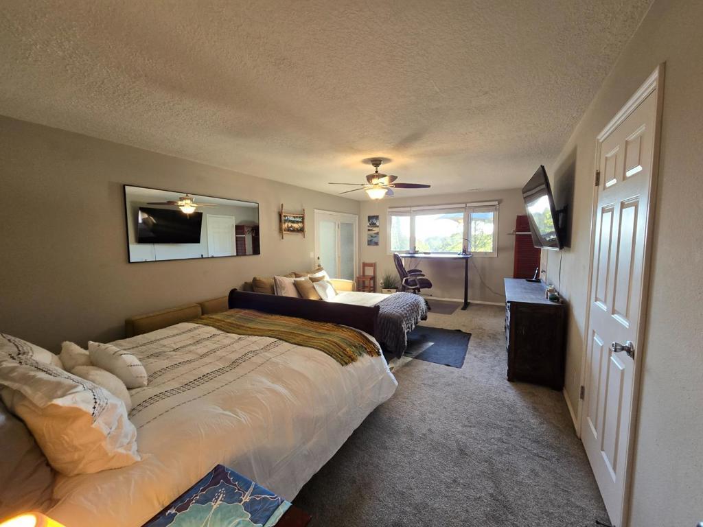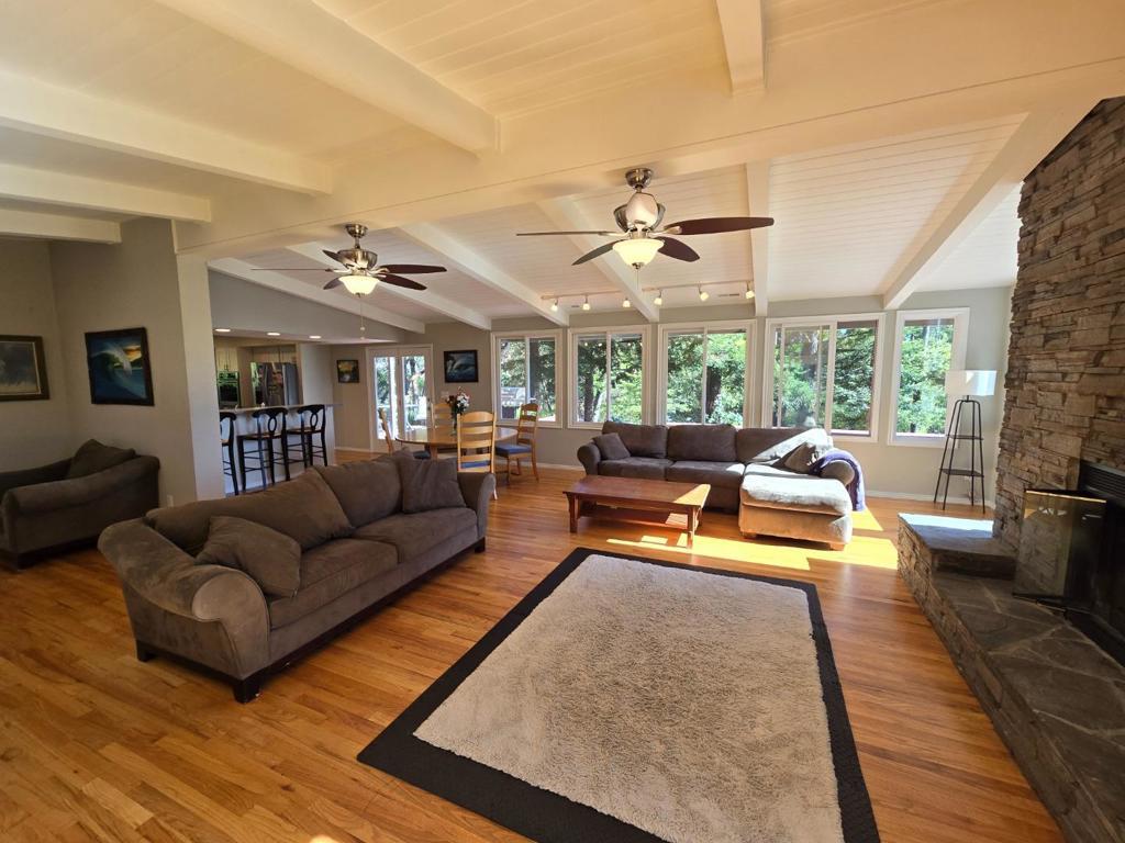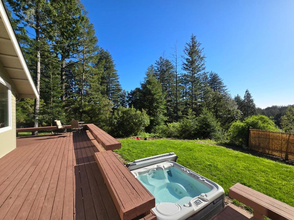 THIS HOME HAS 5 BEDS, 1 PULL OUT COUCH, 3 BEDROOMS, 3 BATHROOMS, 3000 SF OF LIVING SPACE, AND INCREDIBLE SUNSET VIEWS, WITH FULL SUN EXPOSURE AMONGST REDWOOD TREES, FULL PRIVACY, PRIVATE DRIVEWAY, PRIVATE GATE ENTRANCE, 6 PERSON HOT TUB, AND CAN NEGOTIATE FOR 2 CAR GARAGE SPACE.