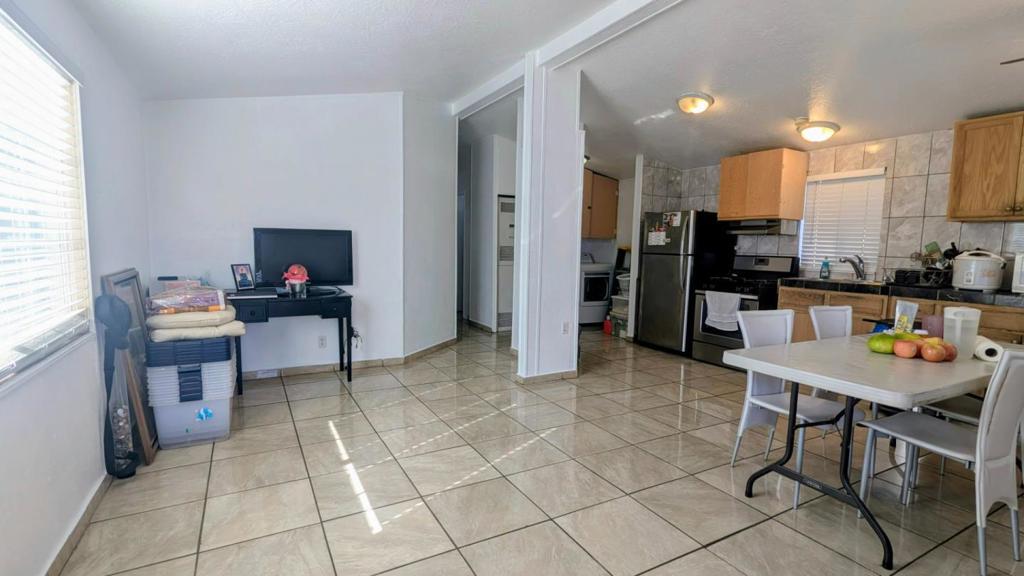 Welcome to this charming 3-bedroom, 2-bathroom home located in the vibrant city of San Jose. With 923 square feet of living space, this residence offers a cozy yet functional floor plan ideal for modern living. The kitchen is well-equipped with an oven range - gas and refrigerator, seamlessly connecting to the family room, which includes a dining area, creating a warm, inviting environment for both cooking and entertaining. The home features tile flooring throughout, providing a clean and easy-to-maintain surface. The high ceiling adds to the spacious feel of the living areas. For your convenience, the laundry area includes a washer and dryer. The home is equipped with a wall furnace for heating and also has window/wall units for cooling. The ground floor bedroom makes accessibility easier for all members of the household. Enjoy the convenience of a 2-car spots. This property is located within the Alum Rock Union Elementary School District, ensuring your access to local educational facilities. Don't miss this opportunity to own a lovely home in San Jose.