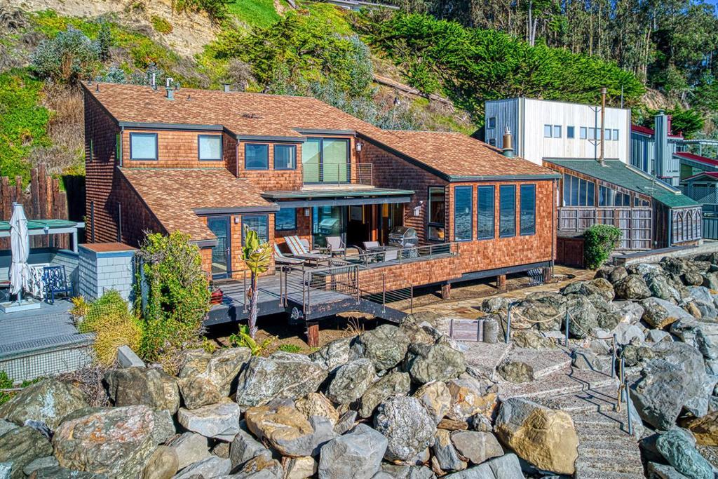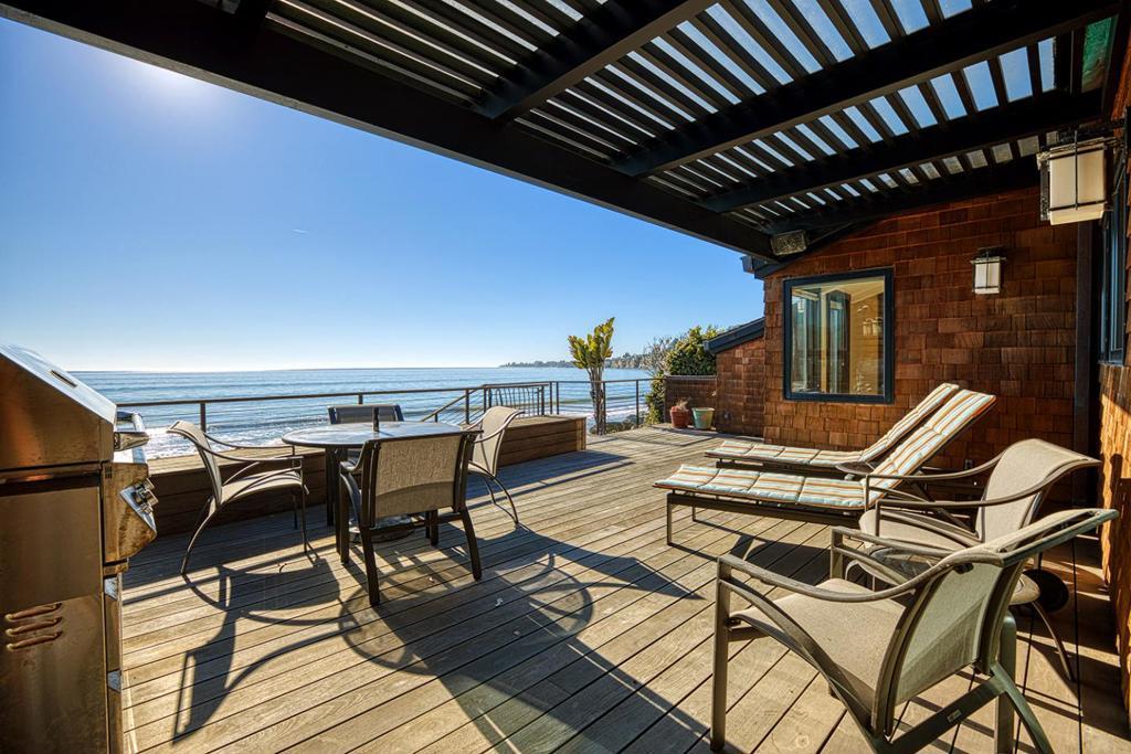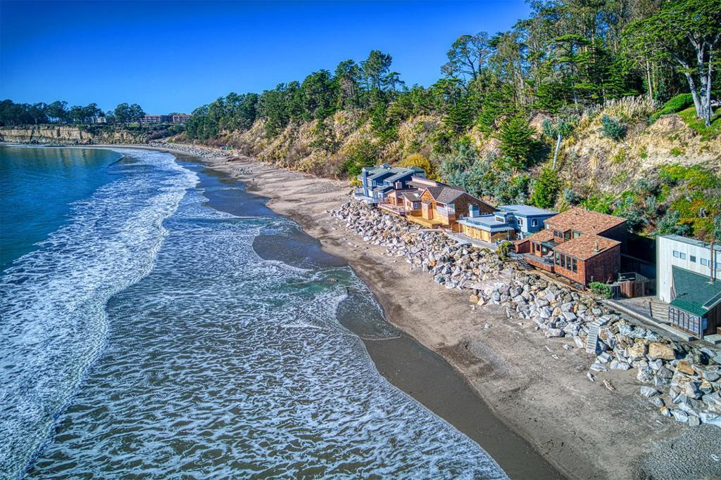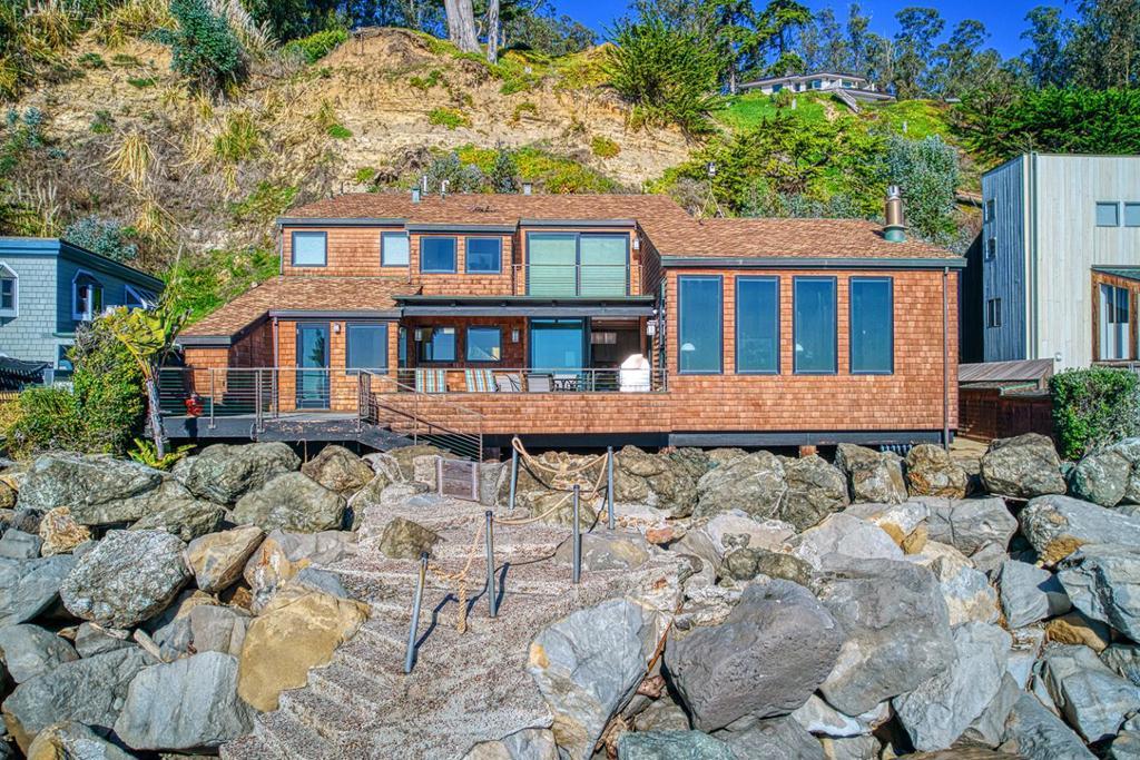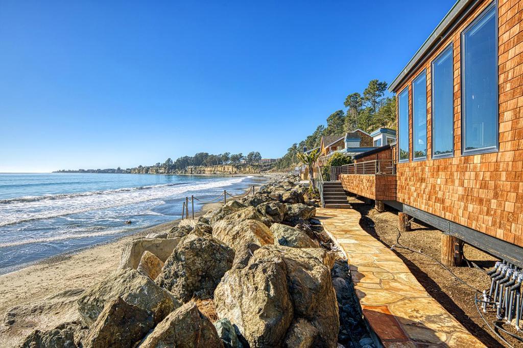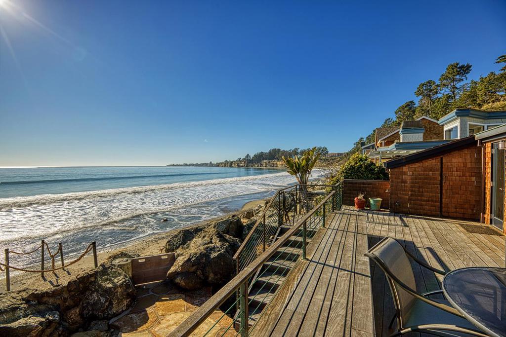 On the sand and beautiful Monterey Bay. A private, gated driveway leads to the homes on Potbelly Beach. Launch the kayak and watch the sea life from this delightful home. Here is your ocean sanctuary. The views span east to west. The windows in the living room frame the ocean. There are large sliding doors from the living and dining rooms open to the deck above the beach, with the perfect indoor-outdoor living. Great open flow for entertaining. Numerous updates include lovely mahogany paneled walls, tile floors, wonderful built in dressers and storage, radiant heat, and custom windows and doors. There are two en suites. The primary bedroom has a balcony looking to the sunset. All the bedrooms have their own unique vistas. You are close to all the amenities of Aptos and Capitola. An easy commute location. Here is a place to retreat, to play and enjoy life on the bay.