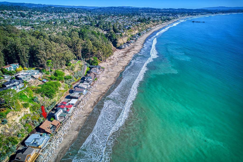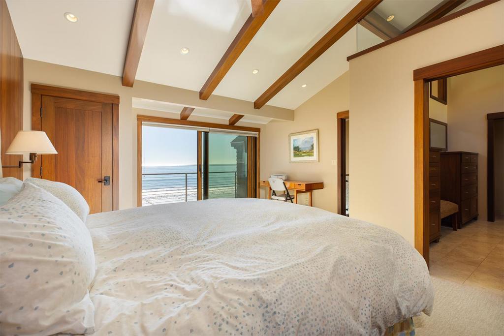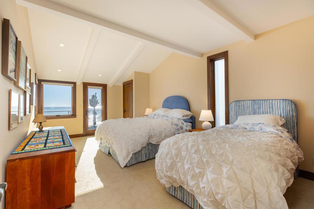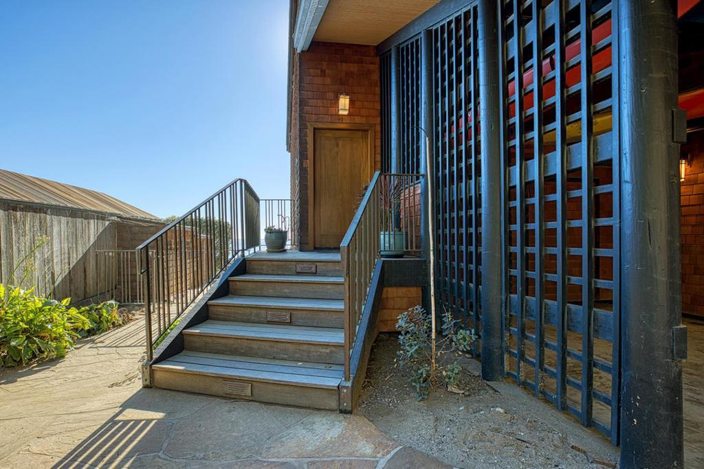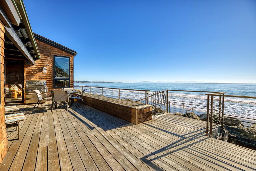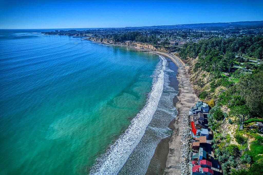 On the sand and beautiful Monterey Bay. A private, gated driveway leads to the homes on Potbelly Beach. Launch the kayak and watch the sea life from this delightful home. Here is your ocean sanctuary. The views span east to west. The windows in the living room frame the ocean. There are large sliding doors from the living and dining rooms open to the deck above the beach, with the perfect indoor-outdoor living. Great open flow for entertaining. Numerous updates include lovely mahogany paneled walls, tile floors, wonderful built in dressers and storage, radiant heat, and custom windows and doors. There are two en suites. The primary bedroom has a balcony looking to the sunset. All the bedrooms have their own unique vistas. You are close to all the amenities of Aptos and Capitola. An easy commute location. Here is a place to retreat, to play and enjoy life on the bay.