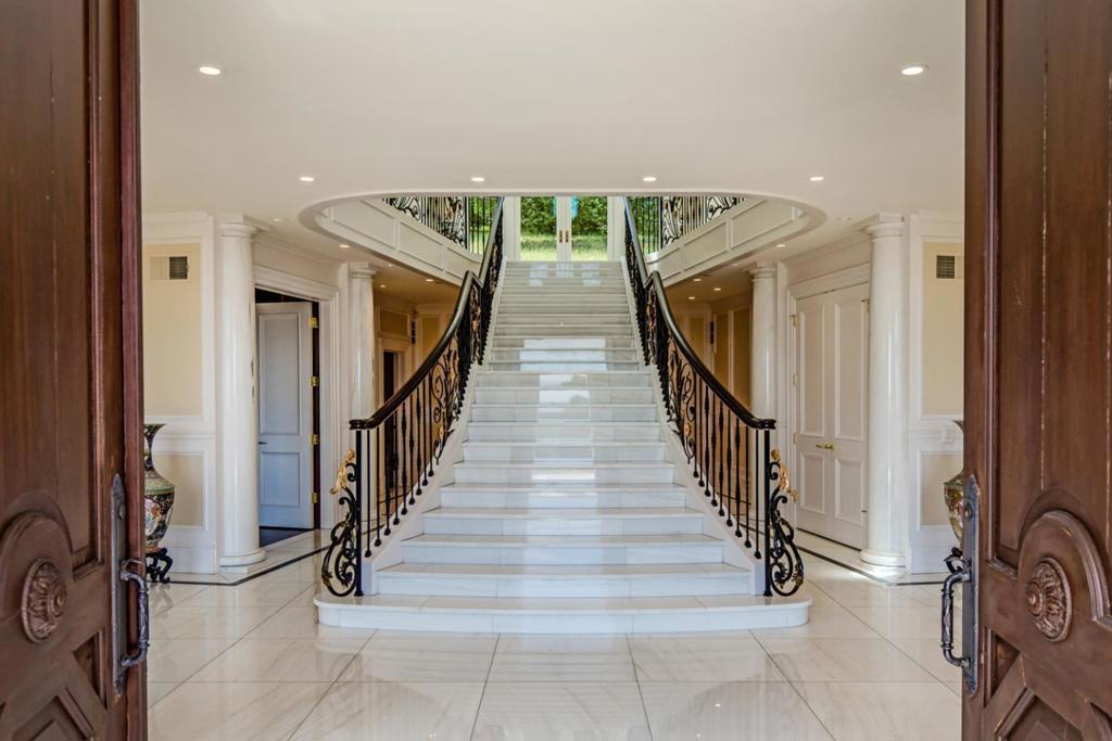 Extraordinary residence with stunning panoramic San Francisco Bay views. Opulence and European inspiration at every turn. Impeccably crafted by renowned builder Markay Johnson in 2014 on a private gated lane with gated driveway. Lavish beauty throughout the home with hand-selected marble from Milan, elaborate millwork, Doric columns, intricate carvings, and gilded details. All-marble staircase with hand-forged railings leads to the upper level with formal living room, formal dining room, tremendous kitchen, family room, office, plus grand primary suite with 2 full baths. 3 luxurious bedroom suites plus large office and conference center make up the ground level. Breathtaking views from every room on both levels. Elevator in the main residence. 1-bedroom pool house and studio guest house, each with bath and full kitchen. Sparkling pool and spa plus fireplace terrace for idyllic entertaining in complete privacy. Set on a large estate lot.