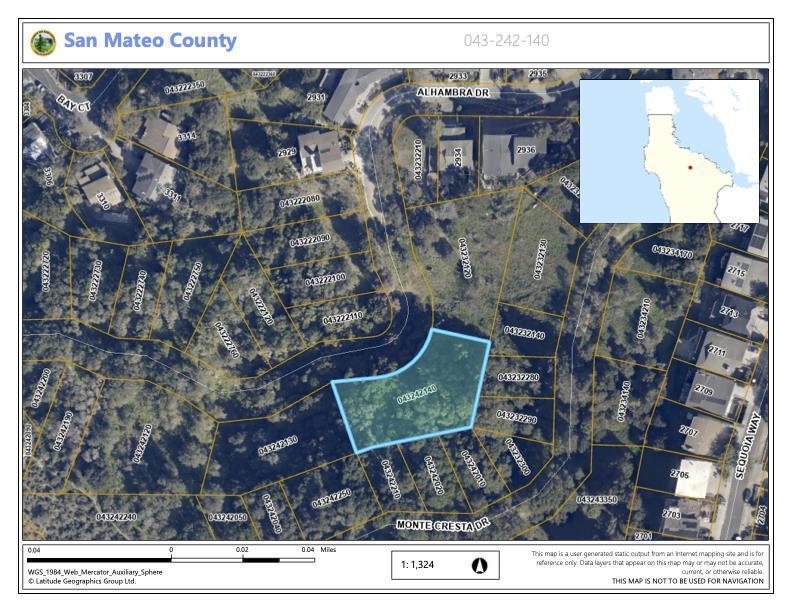 This lot is located in San Juan Canyon of Belmont. VIEWS, VIEWS, VIEWS! Do you like to look out on a nice Bay View; you've got it! Do you appreciate privacy and perhaps want to peer out into the vast expanse of soaring birds through the Canyon; you've got it! Do you want to look at a hiking trails and park space; you've got it! Please contact City of Belmont Community Development Department & Public Works for information pertaining to development standards, Mid-Peninsula Water for information regarding water connections & PG&E for Gas/Electric. Zoning is HRO-2. Lots above 40,000 Sq Ft allowed to build homes up to 3,500 Sq Ft (Belmont Zoning). Per owner; lots created by Belmont by merger in 2001/2002. This listing is for APN#'s 043-242-140.