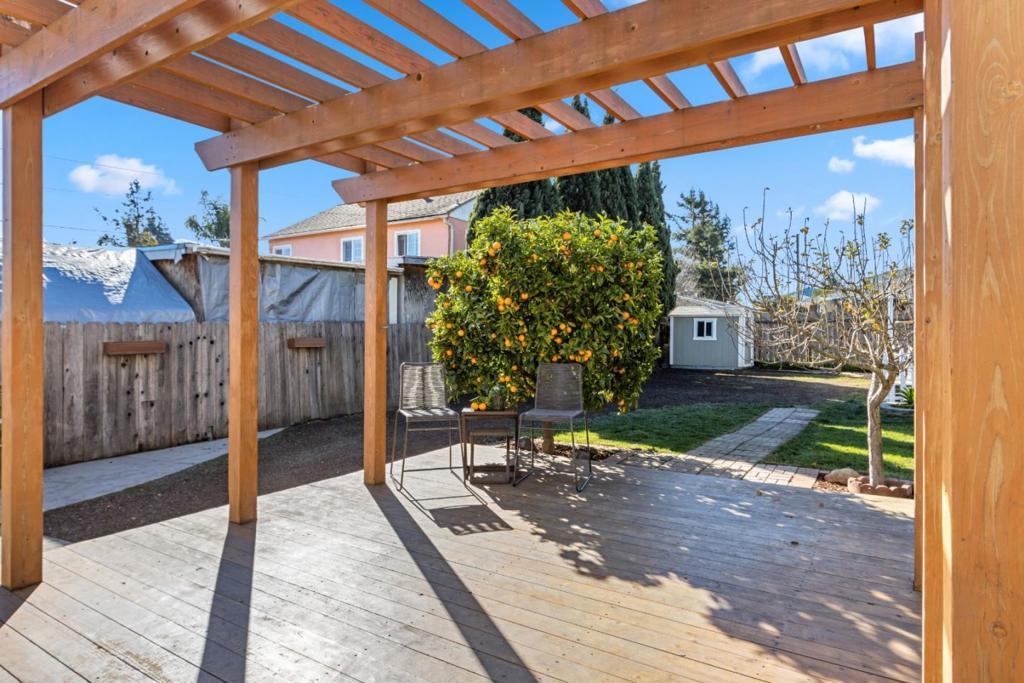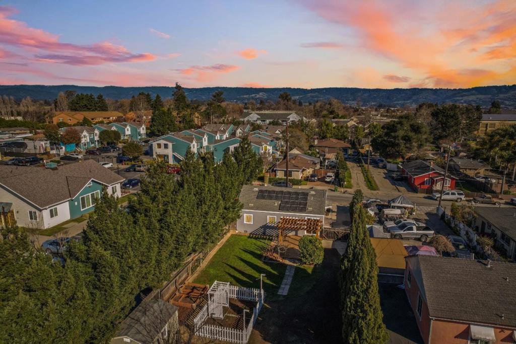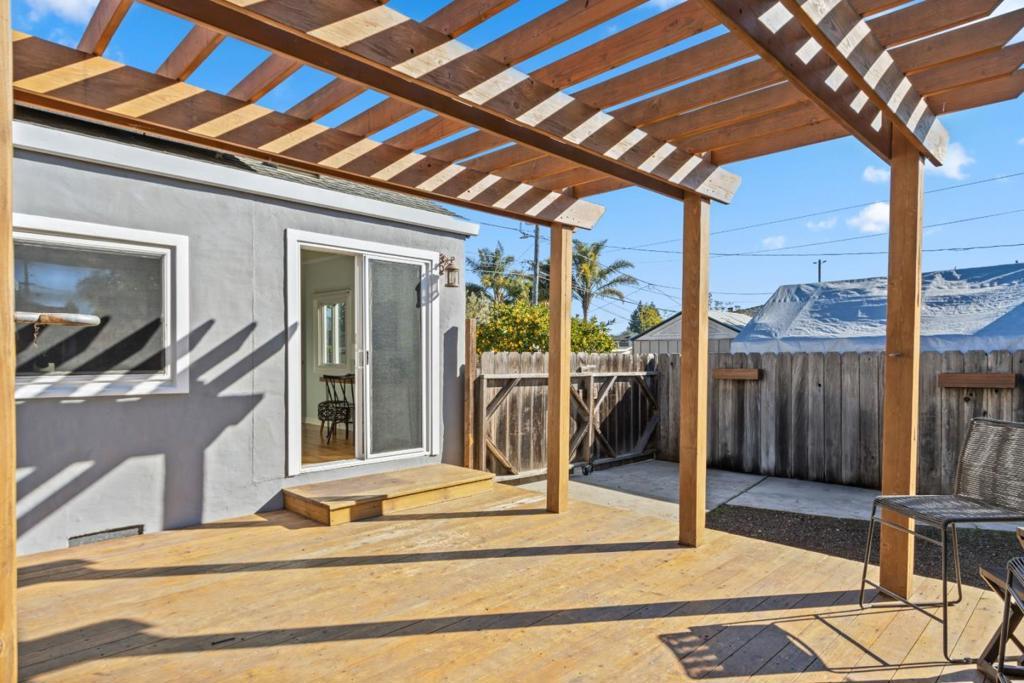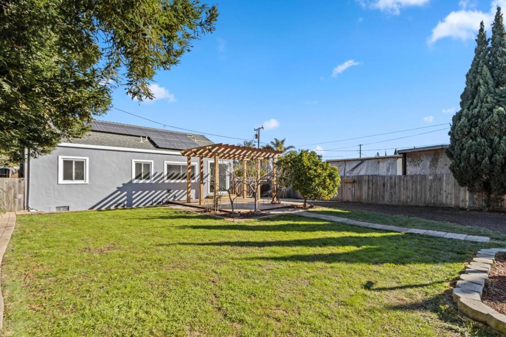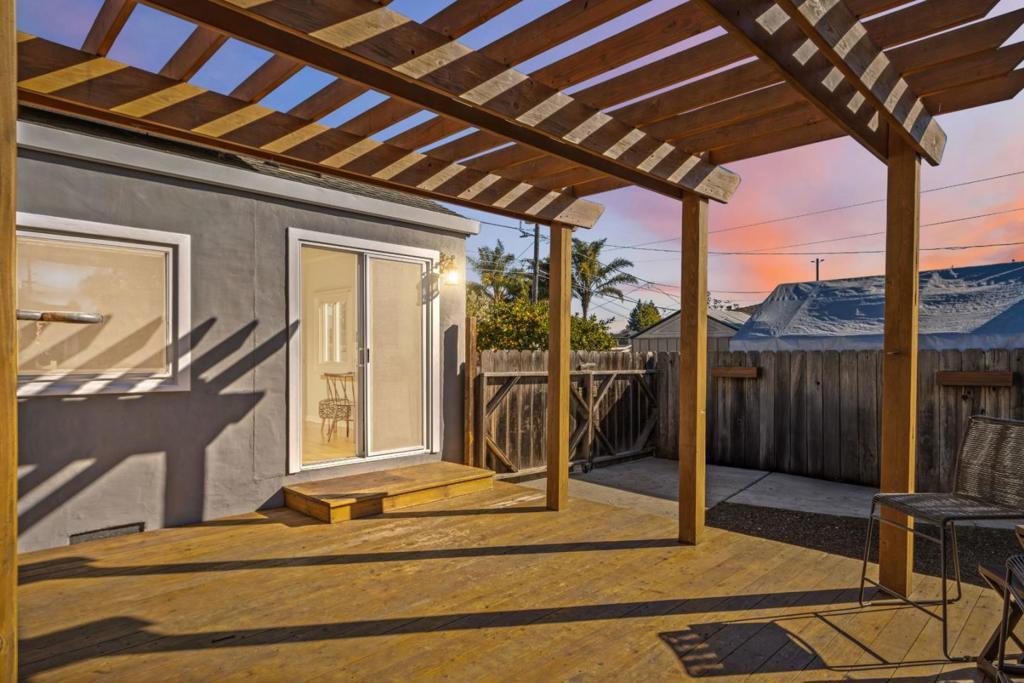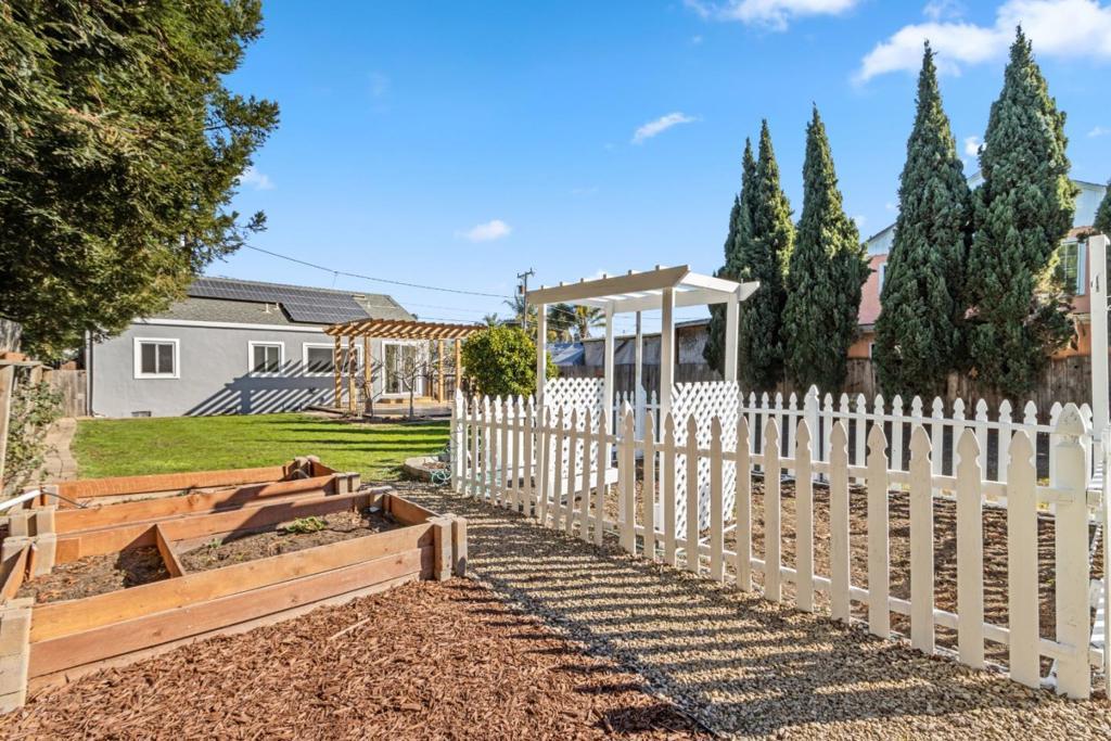 This delightful 2-bedroom, 1-bathroom with an office, home is brimming with charm and curb appeal. The inviting front porch and stamped concrete patio provide the perfect setting to relax and connect with neighbors. Conveniently located near Highway 1 via Airport Blvd, this home is just minutes from shops, restaurants, and all the amenities you need. The spacious backyard is a true oasis, featuring raised garden beds for green thumbs, a pergola ideal for al fresco dining, mature fruit-producing orange, plum, and apple trees, and a detached shed for extra storage. The thoughtfully designed floorplan that welcomes you into a cozy living room. Highlights include hardwood floors, freshly painted interiors, and beautiful built-ins that add character and functionality. The attic offers bountiful storage space. To top it all off, this home comes with owned solar panels, offering energy efficiency and cost savings, and a conveniently located in the driveway and EV charger. Dont miss the opportunity to call this one-of-a-kind bungalow your own!