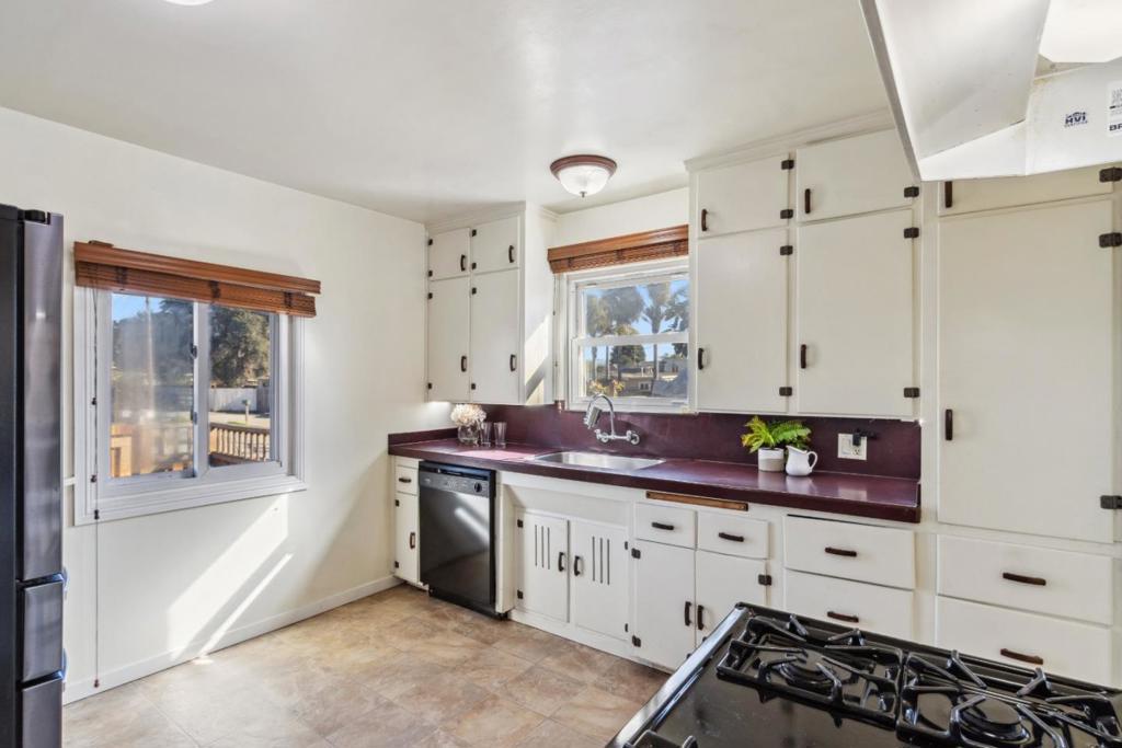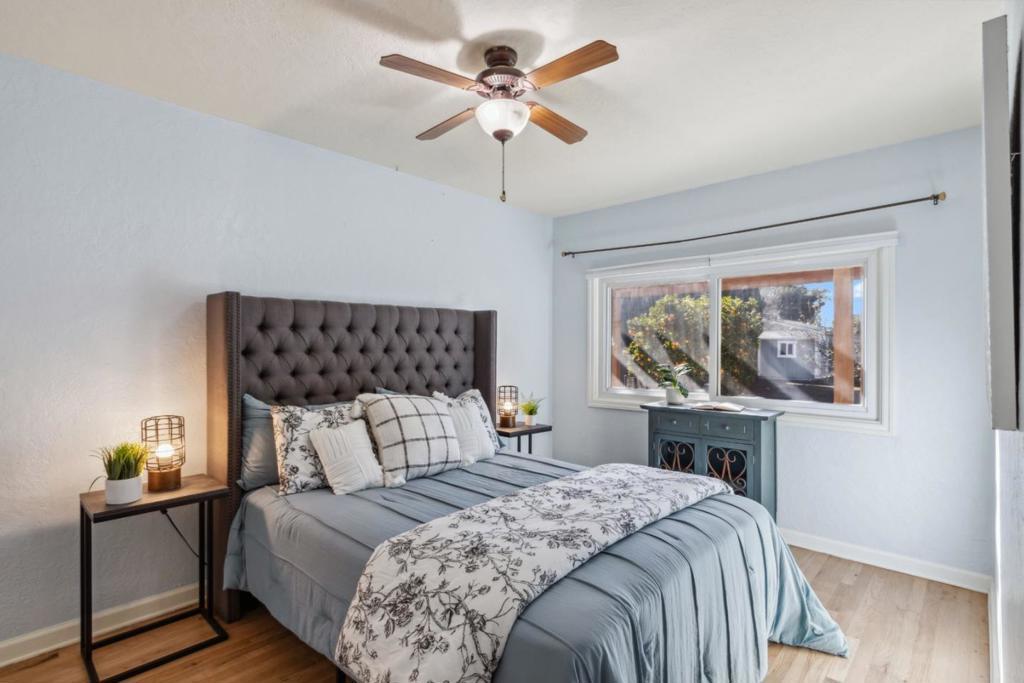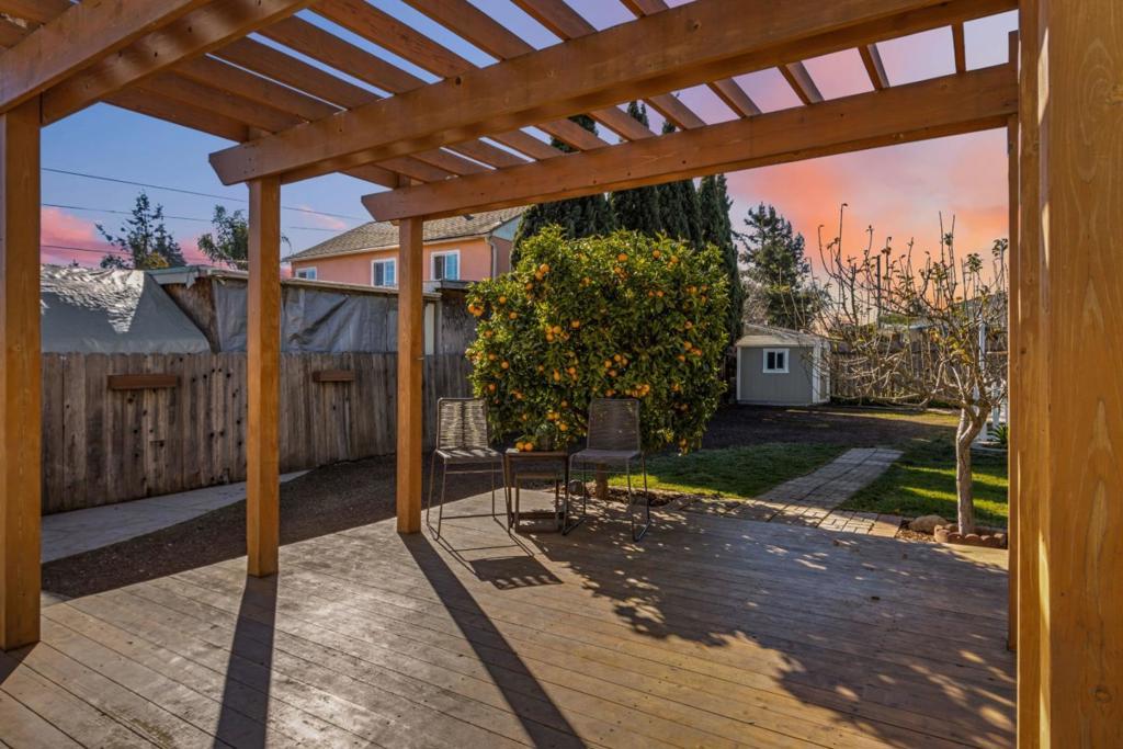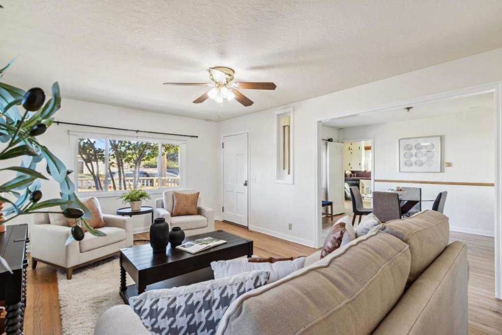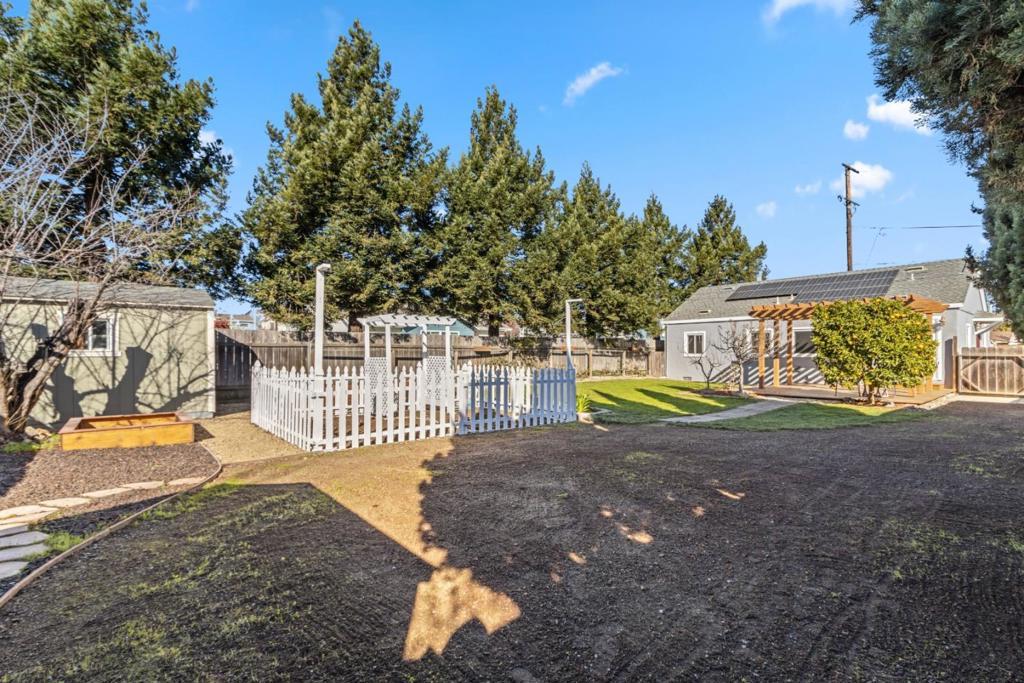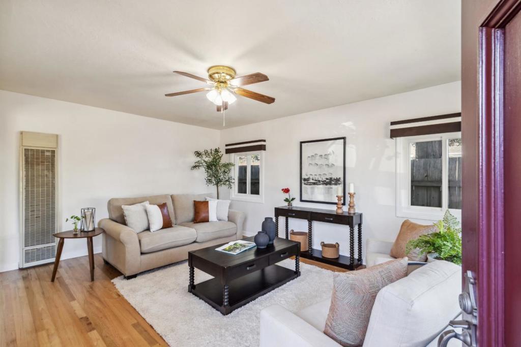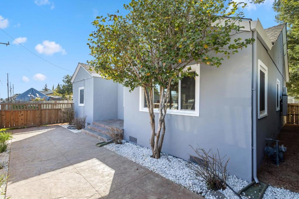 This delightful 2-bedroom, 1-bathroom with an office, home is brimming with charm and curb appeal. The inviting front porch and stamped concrete patio provide the perfect setting to relax and connect with neighbors. Conveniently located near Highway 1 via Airport Blvd, this home is just minutes from shops, restaurants, and all the amenities you need. The spacious backyard is a true oasis, featuring raised garden beds for green thumbs, a pergola ideal for al fresco dining, mature fruit-producing orange, plum, and apple trees, and a detached shed for extra storage. The thoughtfully designed floorplan that welcomes you into a cozy living room. Highlights include hardwood floors, freshly painted interiors, and beautiful built-ins that add character and functionality. The attic offers bountiful storage space. To top it all off, this home comes with owned solar panels, offering energy efficiency and cost savings, and a conveniently located in the driveway and EV charger. Dont miss the opportunity to call this one-of-a-kind bungalow your own!