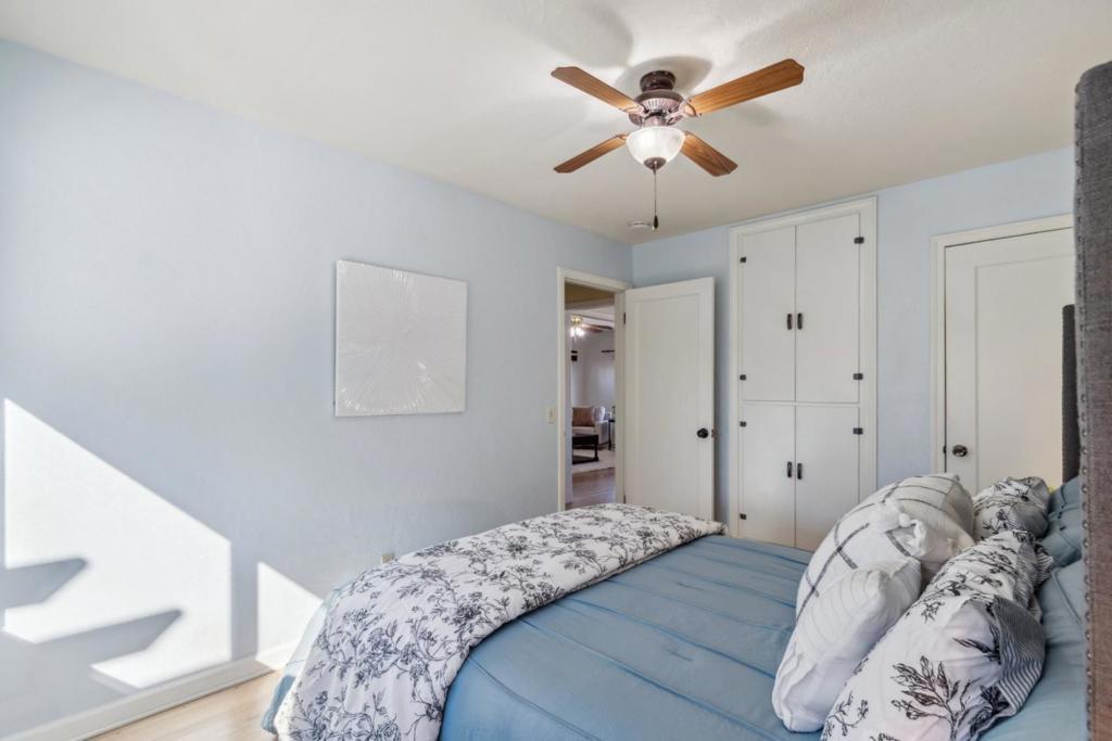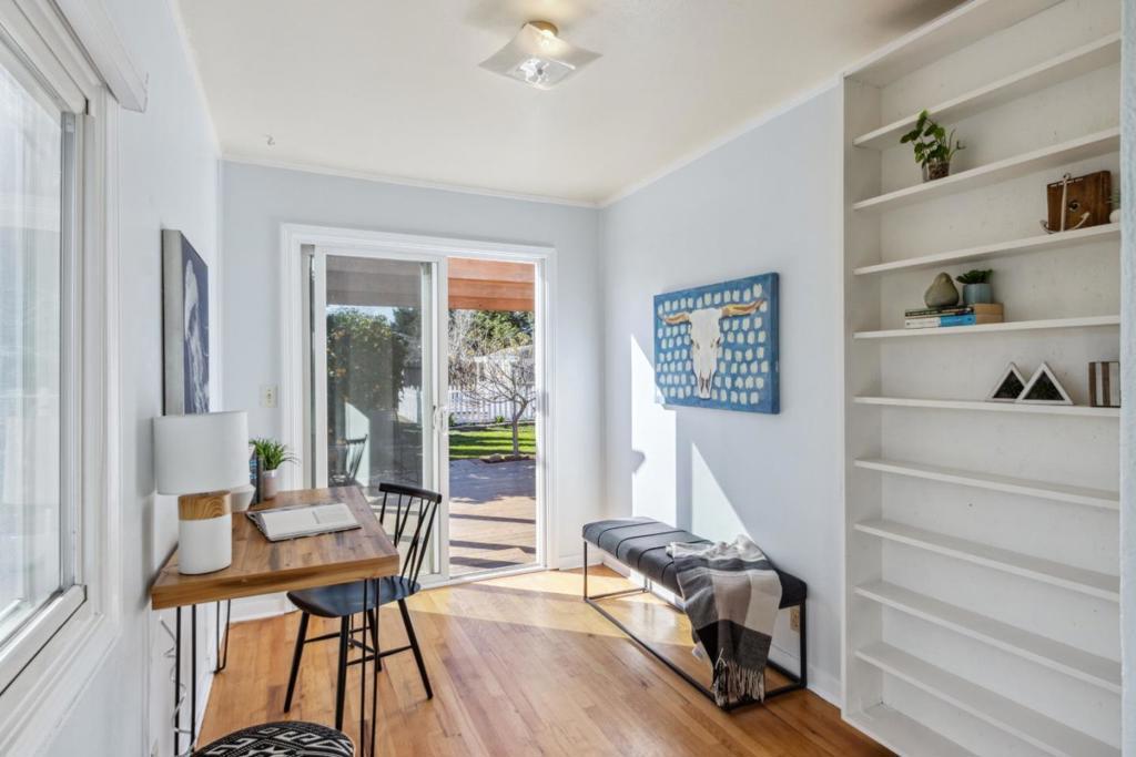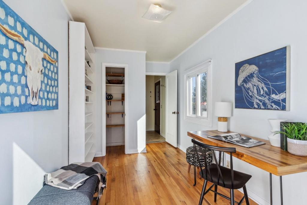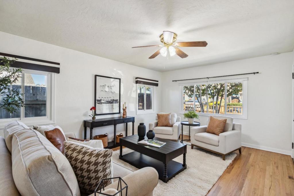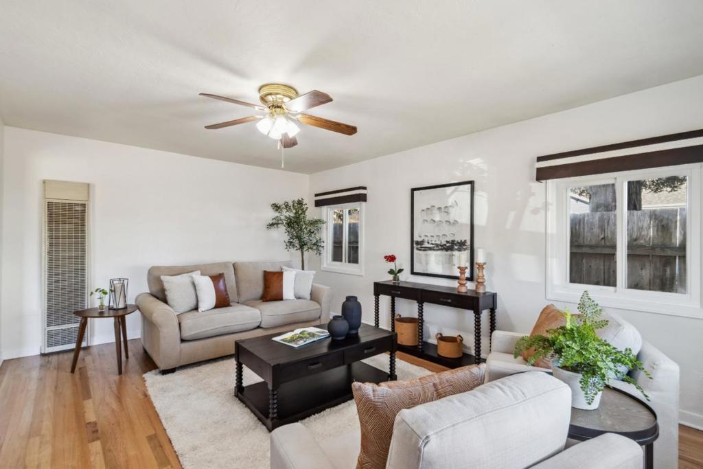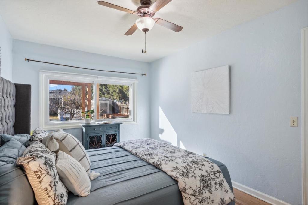 This delightful 2-bedroom, 1-bathroom with an office, home is brimming with charm and curb appeal. The inviting front porch and stamped concrete patio provide the perfect setting to relax and connect with neighbors. Conveniently located near Highway 1 via Airport Blvd, this home is just minutes from shops, restaurants, and all the amenities you need. The spacious backyard is a true oasis, featuring raised garden beds for green thumbs, a pergola ideal for al fresco dining, mature fruit-producing orange, plum, and apple trees, and a detached shed for extra storage. The thoughtfully designed floorplan that welcomes you into a cozy living room. Highlights include hardwood floors, freshly painted interiors, and beautiful built-ins that add character and functionality. The attic offers bountiful storage space. To top it all off, this home comes with owned solar panels, offering energy efficiency and cost savings, and a conveniently located in the driveway and EV charger. Dont miss the opportunity to call this one-of-a-kind bungalow your own!