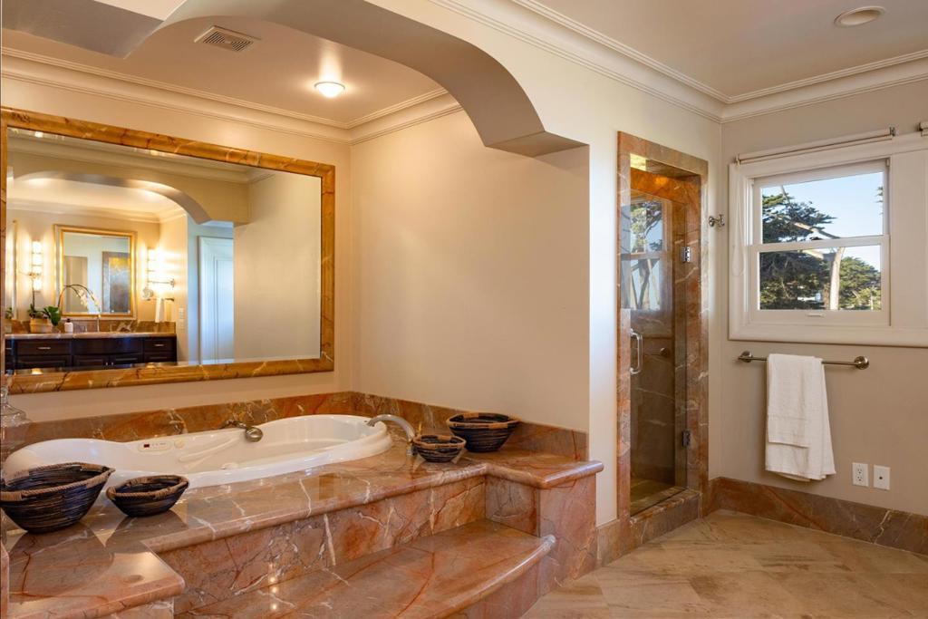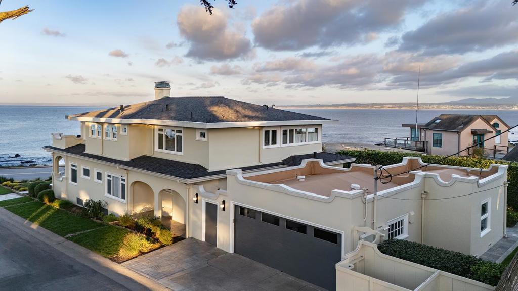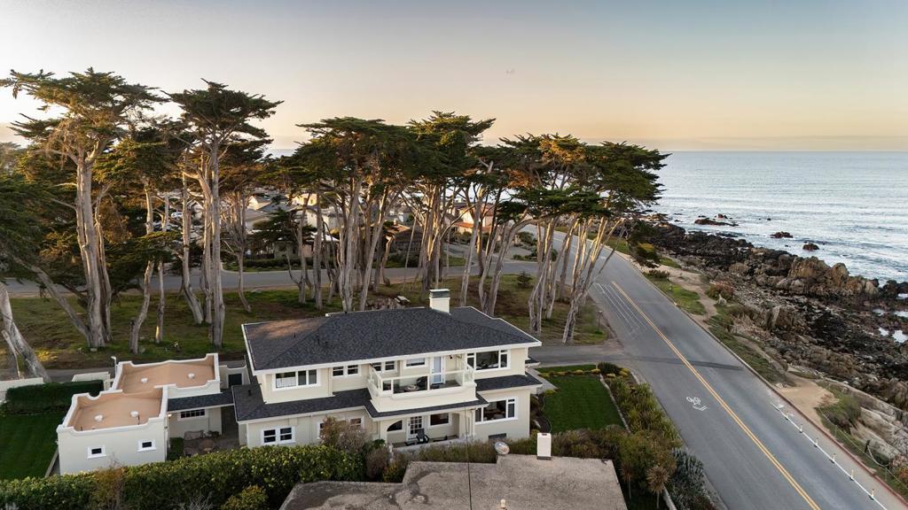 Welcome to Casa de la Roca, a breathtaking oceanfront estate boldly set above the coveted rugged coastline of Pacific Grove. This iconic 4-bedroom, 4.5-bathroom residence, built in 1924, is a timeless offering of its coastal heritage with panoramic views of the Pacific. Situated on an expansive 9,507sqft corner lot with two lawns, a two-car garage, and a detached guest house, this is a special property offering privacy and views from nearly every room. The main house includes 3 bedrooms and 3.5 baths with a seamless flow from elegant interiors to sun-drenched balconies, treating your eyes to visits from dolphins, otters, and the wonders of our protected marine sanctuary. A detached guest unit with en-suite full bathroom provides excellent comfort. Recent upgrades include a new HVAC system with air conditioning, tankless water heater, refreshed landscaping, new gutters, and more. The roof is just 9 years old, and approved plans are available to create a 5th bedroom, and install an elevator. Conveniently located walking distance to Pacific Grove's burgeoning downtown with renowned local restaurants, Casa de la Roca, as fondly referred to by its original owner, is a quintessential reflection of its era and a rare opportunity to own one of PG's few premier oceanfront estates.