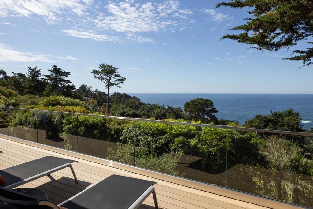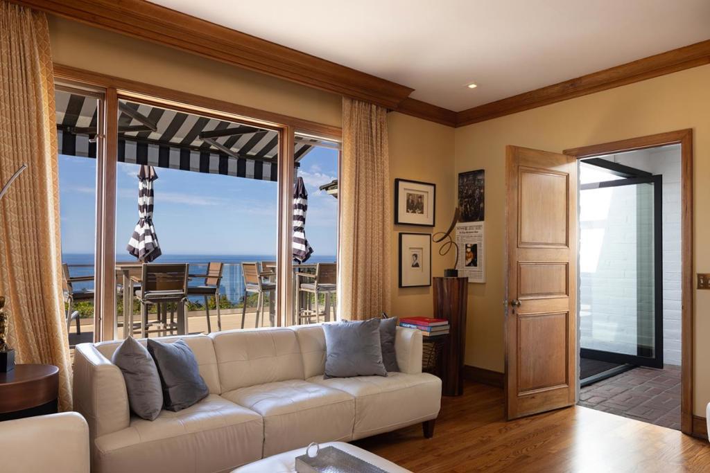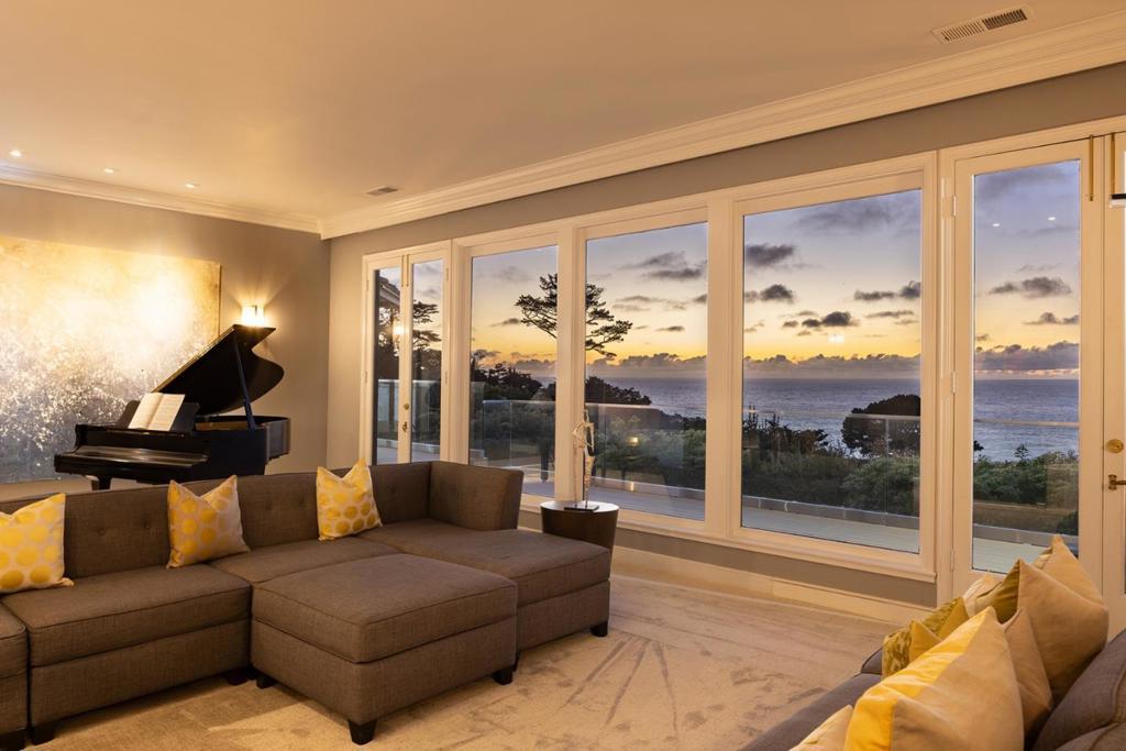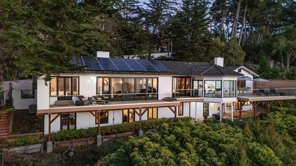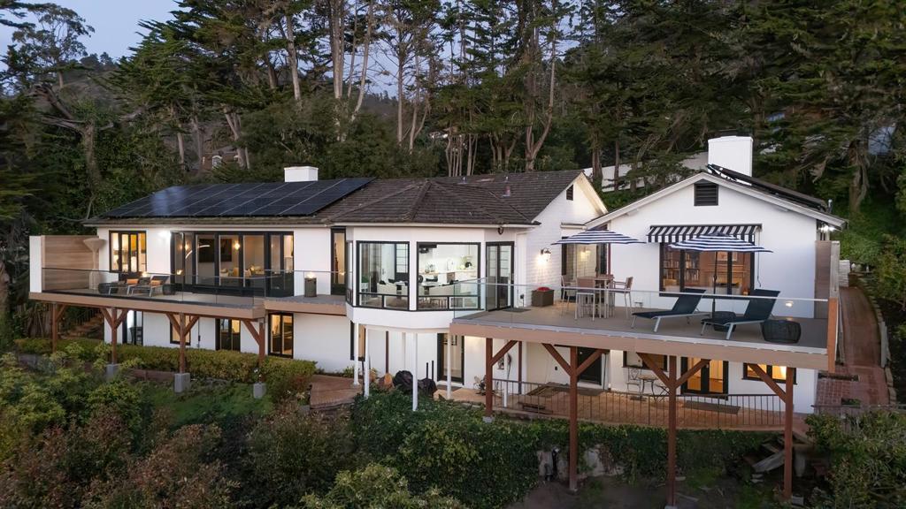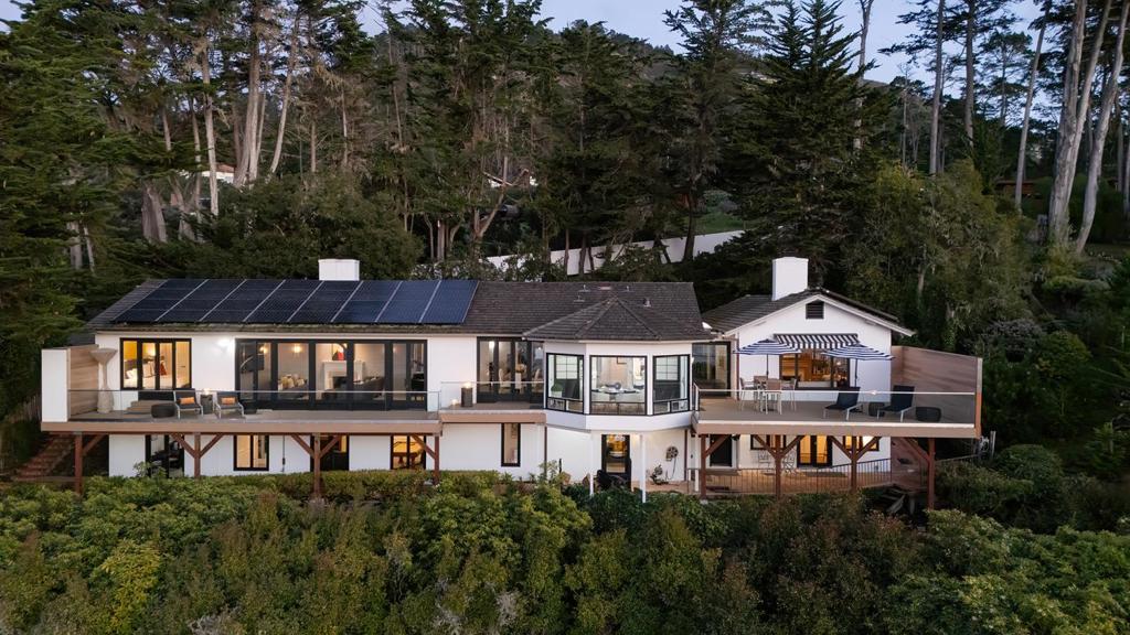 Located in the elevated Carmel Highlands, Villa Fontana-the former estate of Academy Award winning actress Joan Fontaine-is perfectly perched on the hills above the Carmel coastline, boasting sweeping views of the Pacific Ocean and the marine-rich details of Point Lobos. Set on a ~1 acre, Cypress studded lot, the home exudes all the elegance of old Hollywood style and charm, with gallery-like hallways and large entertaining areas. Stunning ocean views can be seen from almost every room and the large, westside decks enable effortless indoor/outdoor living, begging for alfresco dining, morning sunrise coffees, or sunset cocktails. Highlights include a gated entry, 4 bedrooms and 4.5 bathrooms, 4,712 SqFt of light and bright living space, a detached 2-car garage, a golden-era library with cozy fireplace, and open kitchen with unforgettable ocean views. Live like a movie star every day, exploring all the incredible amenities of the Monterey Peninsula, knowing that your private, coastal haven awaits your return.