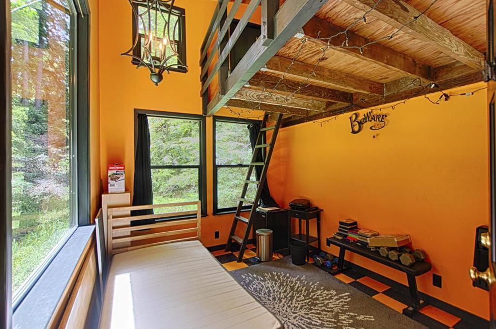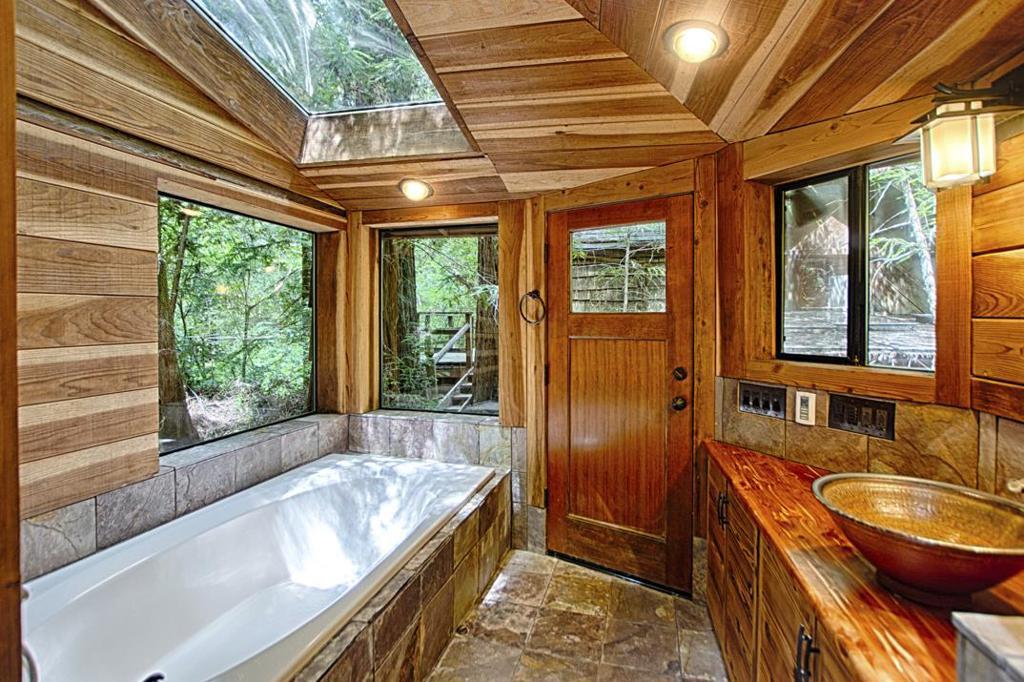 Make an offer! Deep in the Santa Cruz Mountains, this private retreat combines Hippie Modernism with rustic charm. It includes two detached structures: a freestanding bedroom with a loft, which has the potential to become a tiny home, and a bathhouse with advanced lighting, an oversized tub, and a shower. A flat, sunny terrace with water and a metal storage shed offer space for a large vegetable garden. A backup generator is also available. Well isolated from the neighbors in a quiet community, you'll have both privacy and the reassuring sense that there are other people in the area. The surrounding redwoods contribute to a peaceful and inspiring atmosphere. While fully livable, this home reflects the passage of time and awaits a visionary touch. Priced accordingly, it presents an opportunity to reimagine a unique forest haven where modernism meets organic living, and creativity flourishes under a redwood canopy.