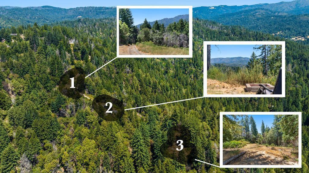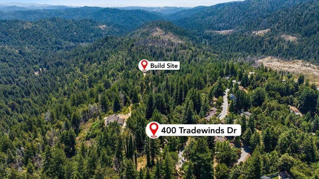 ONE OF A KIND! 40 acres of mountain ridges, large sloping meadows, forest and seasonal creeks. Multiple potential building sites with expansive panoramic canyon and mountain views, overlooking the San Lorenzo Valley. With plenty of sunshine, varied terrain, and total privacy, this is like owning your own state park, great for recreational living. Off-Grid solar system (13,860 watts) with battery banks (56kwh) supply two RV sites with full electrical, water and waste hookups - perfect for living on the property while you build dream home or summer retreat. There are two level-2 electric car charging stations there as well. A covered patio area serves as the solar structure and storage. 5000 gallon water tank is in place. The dirt/gravel driveway is gated and accessible from Tradewinds Drive, which is just above the Boulder Creek golf course off of Big Basin highway 236. 45 minutes to Silicon Valley. Timber Production zoning allows for timber harvesting, which can help fund your dream home and supply all the wood you need for building. County notice of violation is present and buyer to address.