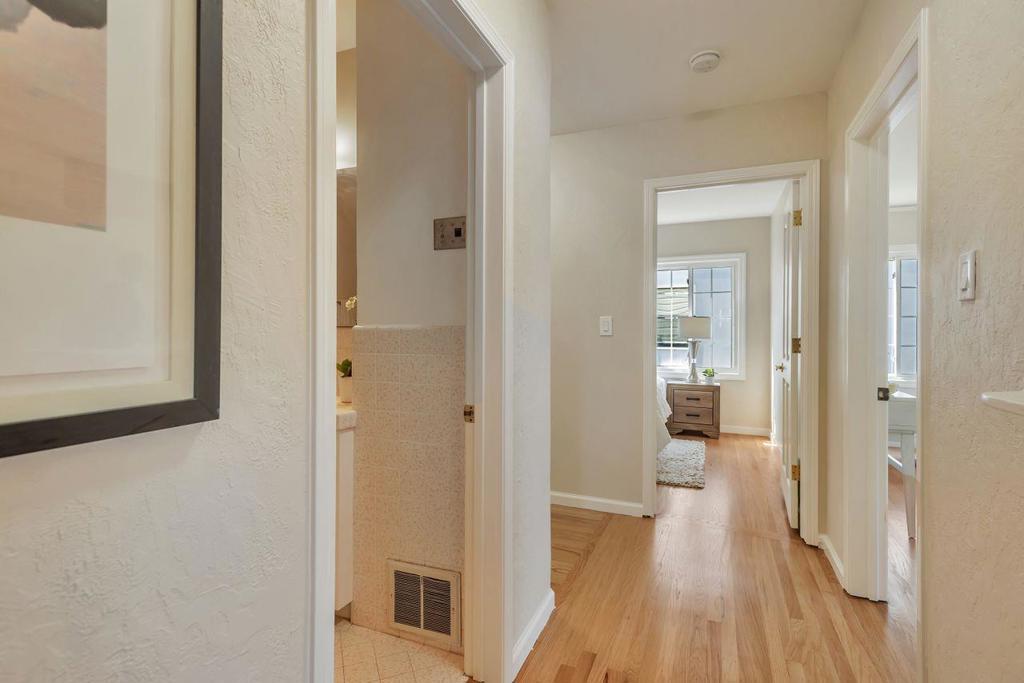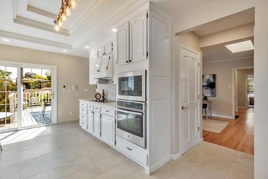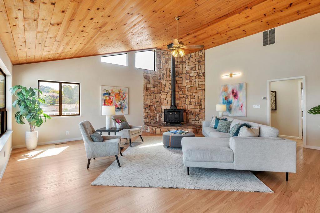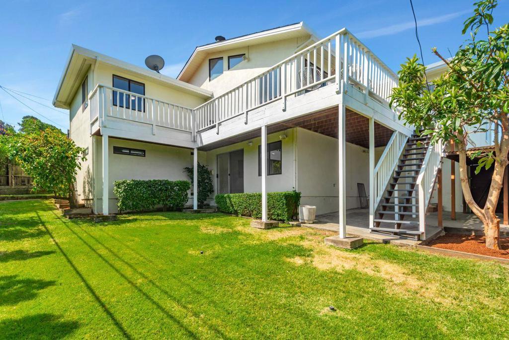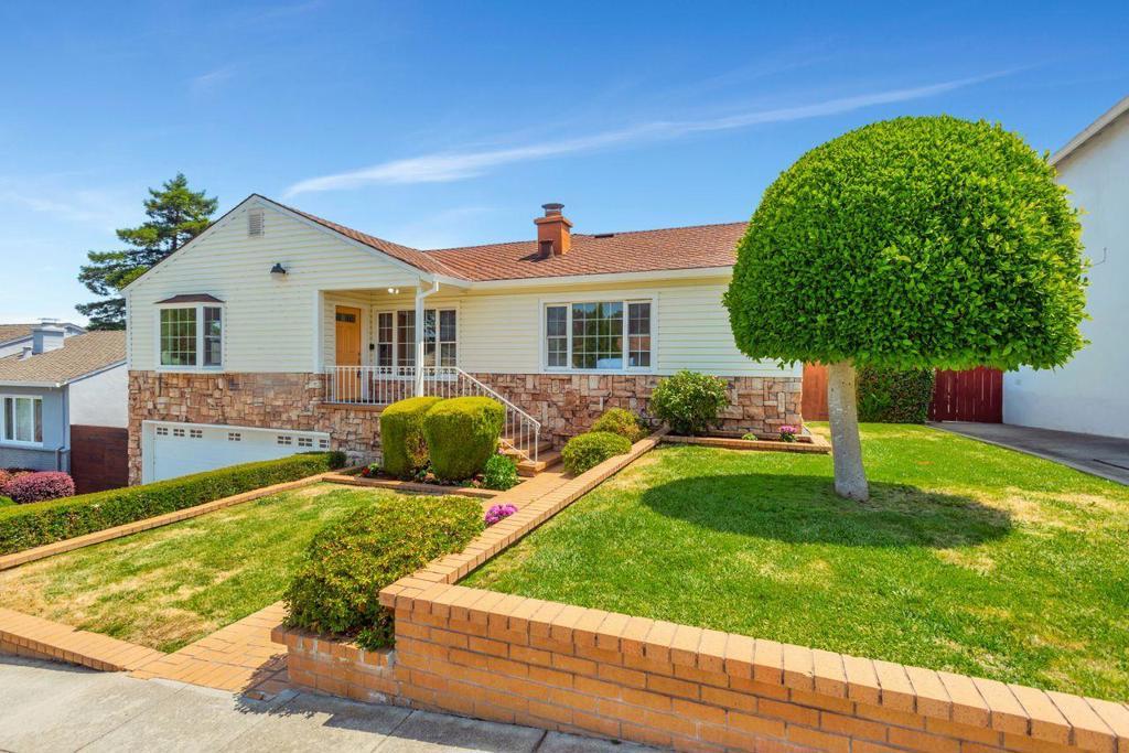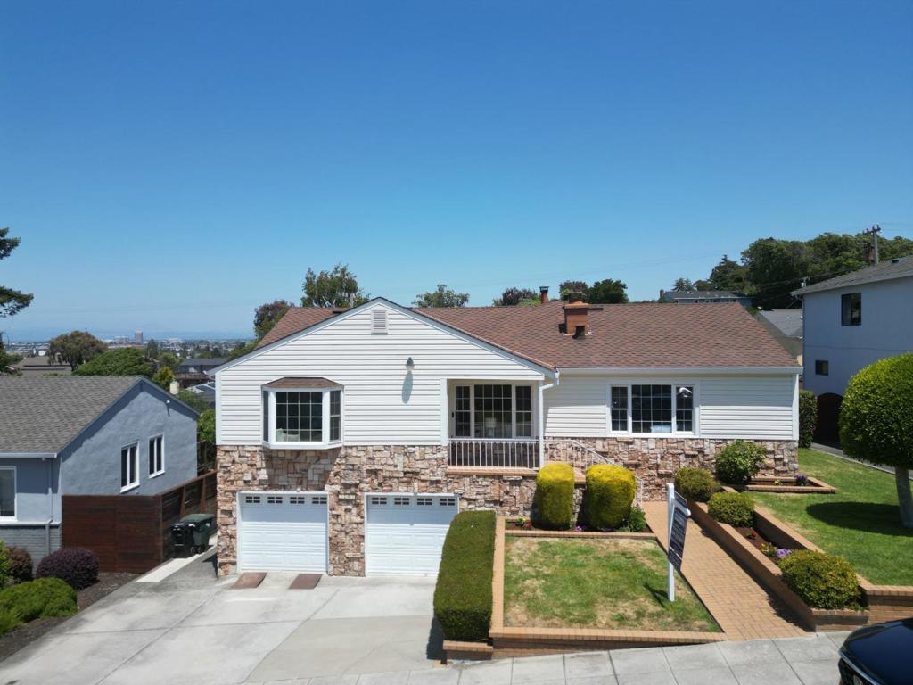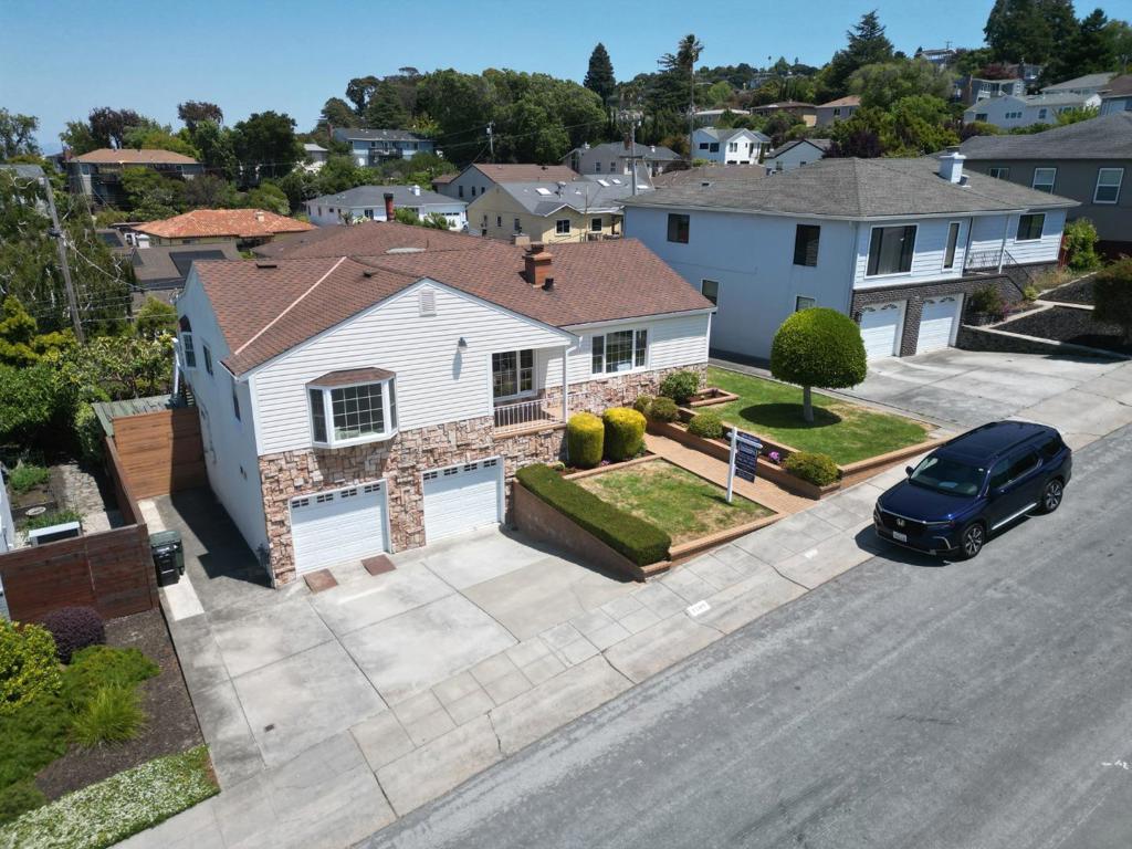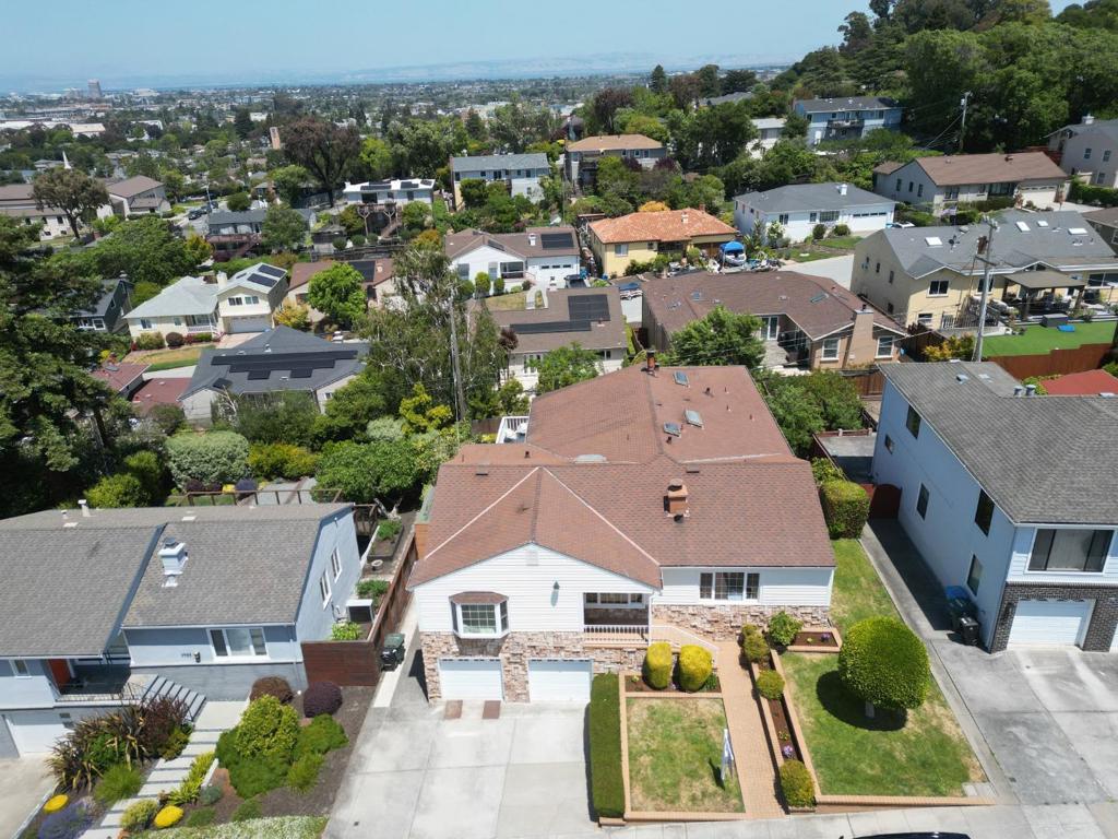 Welcome into this lovingly maintained expanded home, offering hardwood floors, fresh paint and bay and city views. The eat in kitchen is equipped with stainless steel appliances, tile flooring, slider to the backyard and deck with more views. A large family room boasts a stone hearth and fireplace with vaulted ceilings and a bonus room used as an office or 5th bedroom. 4 good size bedrooms line the hallway, leading to the primary suite with more stunning views. Downstairs is an array of options, 500+ sq ft of stand-up storage, an extra room currently used as a second family room, 2 car garage and a workshop and access to this beautiful, lush, landscaped yard and mature trees. There is enough room for everyone or even multi families. San Mateo Knolls is a highly desirable neighborhood, offering good schools close by, trails, shopping and easy access to transportation and freeways.