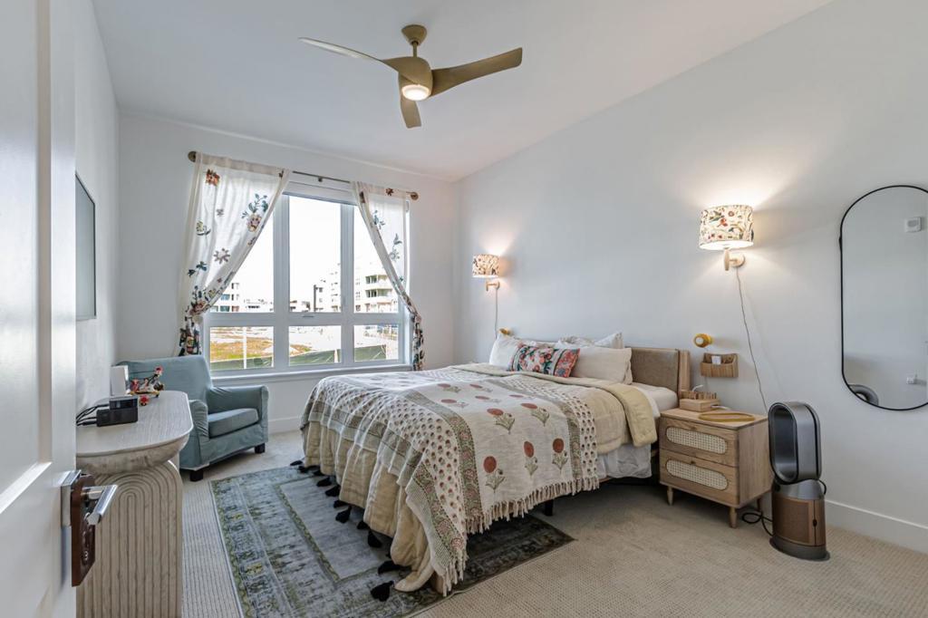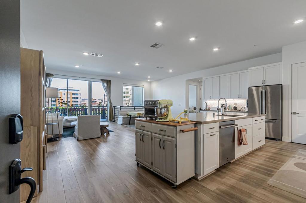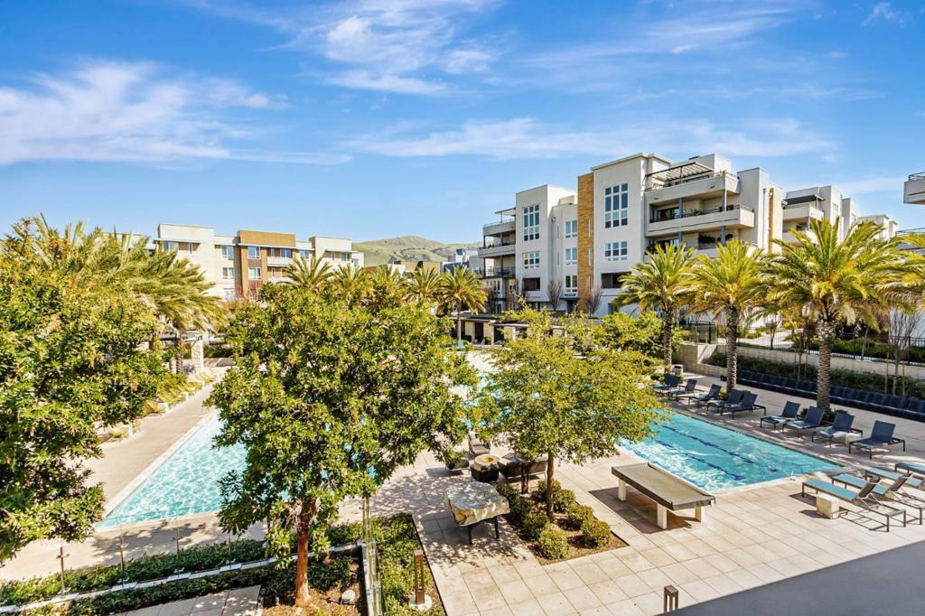 Experience upscale living in this nearly new, spacious 3 bedroom + office, 3 full bath luxury condo boasting 2,451 sq ft of thoughtfully designed living space. Privacy is a plus with each bedroom located in separate areas of the home, each with it's own full bath close by. Located in the desirable Metro Crossing neighborhood, easy access to BART makes commuting a breeze. Residents enjoy exceptional amenities including a state of the art fitness center, huge pool, conference and entertainment areas, green space, and walking paths. This meticulous condo features many upgrades including but not limited to: Jenn Air appliances, soft-close cabinetry, LVP flooring, quartz countertops, electric vehicle charging, dual-zone HVAC, smart window shades, smart fans/lights, and Ring security. You'll love all of the natural light while staying cool on warm summer days. Enjoy the ease of driving straight into your own attached 2-car garage, and walking right into your own unit. Building entrances are secured with cameras and passcodes for peace of mind. The desirable location of this unit with its walk-up patio provides easy access for your guests, and enhances the already inviting curb appeal. This condo offers the perfect blend of luxury, comfort and convenience.