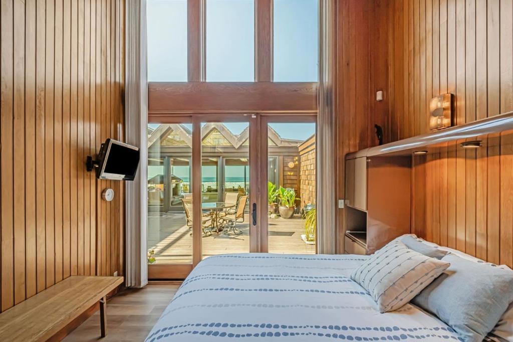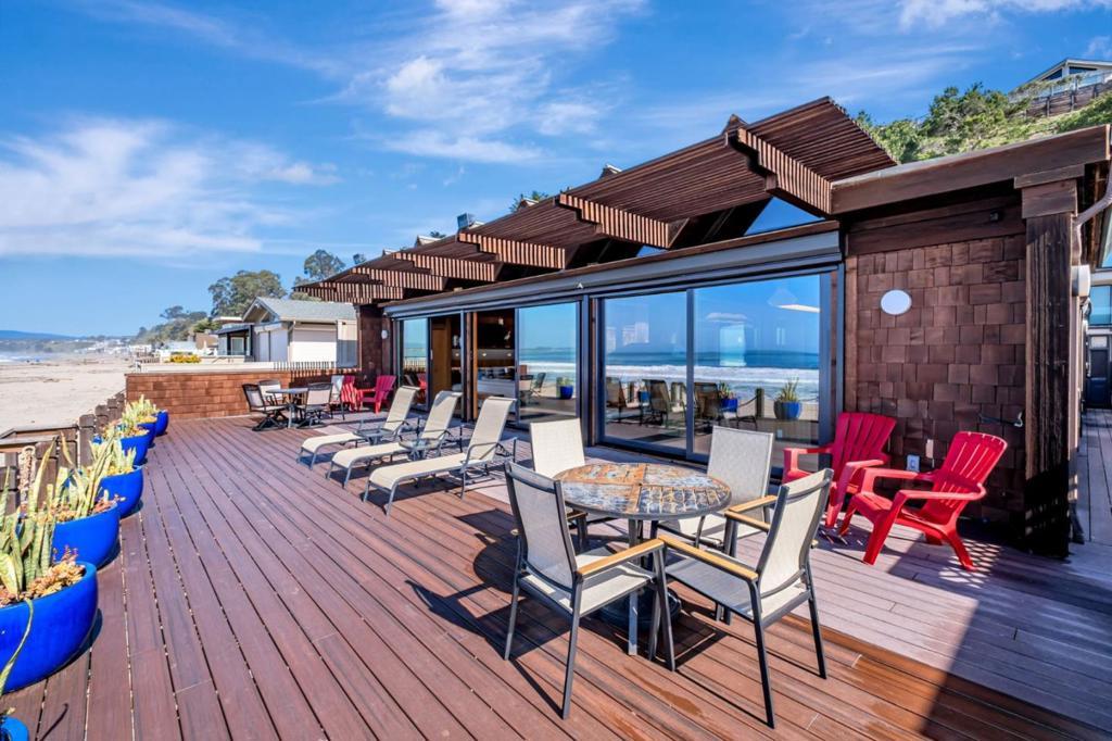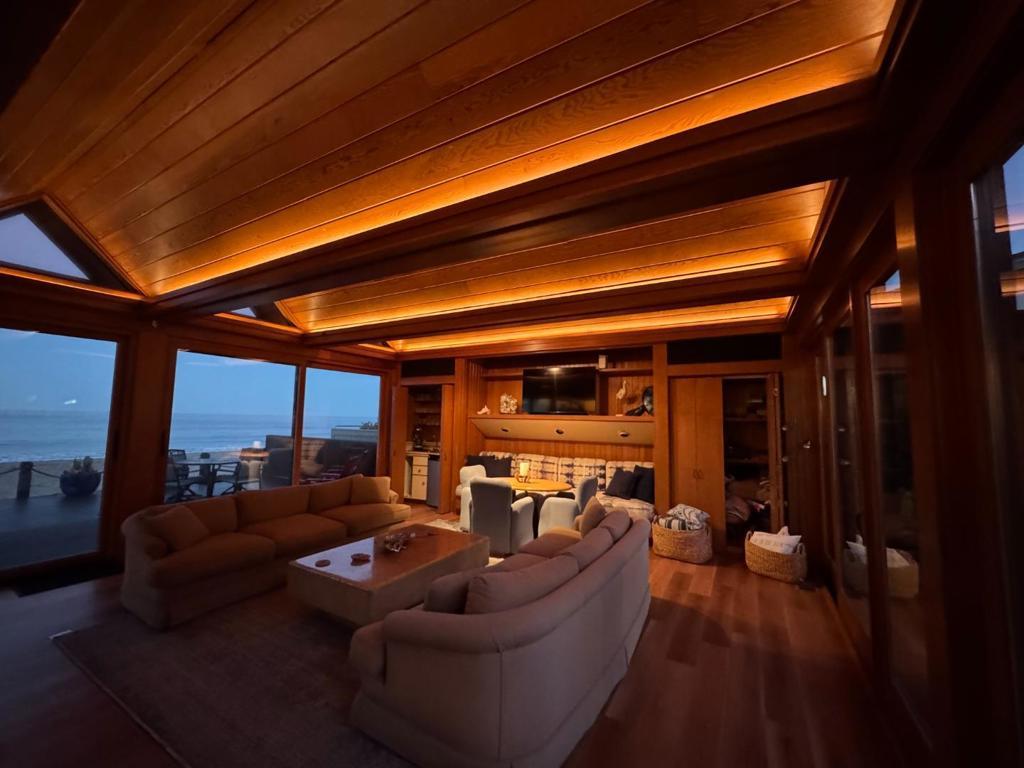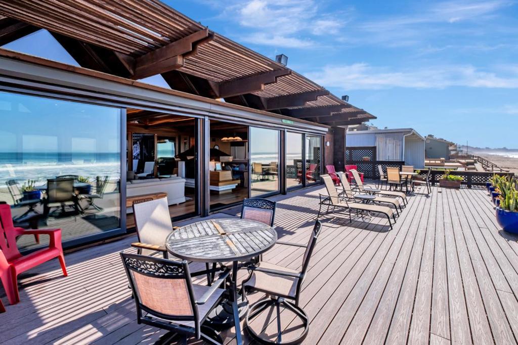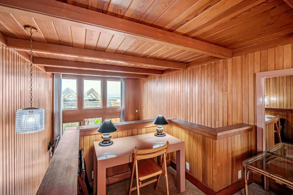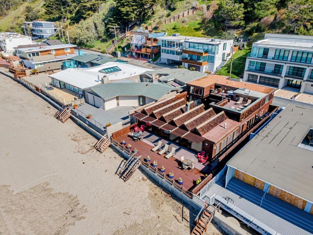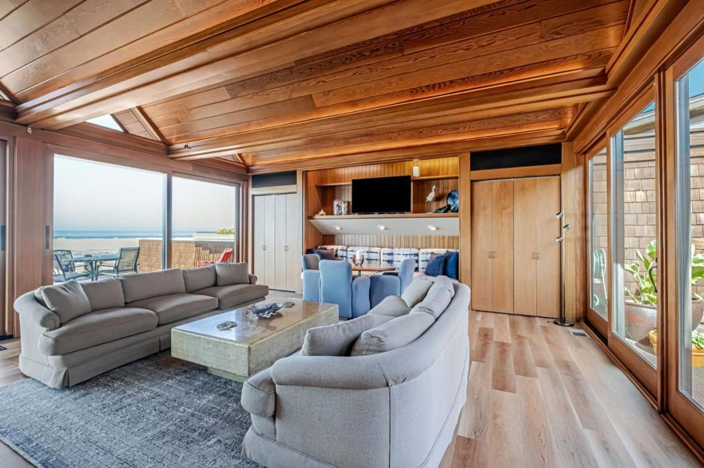discover your dream coastal escape in this stunning 4+ bedroom 4 bath beach front home on coveted beach drive. This beautifully designed residence seamlessly blends warm, natural wood interiors with breathtaking panoramic ocean views, Features include 50x20 foot ocean front deck with only 10 steps down to beach. The open concept living and dining area boast floor to ceiling wood casement sliding glass doors that flood the space with natural light and unobstructed views. Central eye catching copper clad fireplace adds warmth and charm. Multiple outdoor living areas: In addition to the beach front deck enjoy a private rooftop terrace and a secluded courtyard with access to all first level bedrooms. Special features: Security gates, shutters on the ocean side, retractable remote operated patio screens, New laminate floors on first level. Amazing six gables roofline that creates a dramatic effect especially at night as the recess lighting gives a soft warm glow off the clear heart wood interior ceiling and walls. Separate in law suite with loft that can be used as a sitting area, office or extra sleeping. House has been rented as a vacation rental earning $10,000 per week