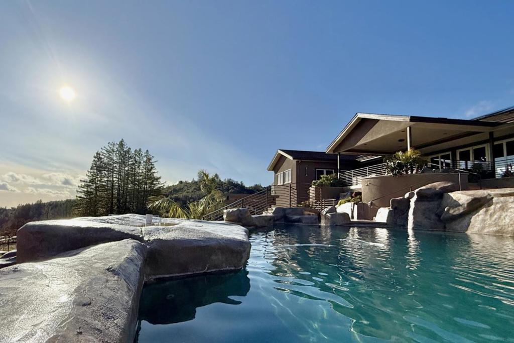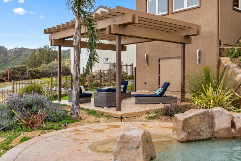 A retreat property you'll never want to leave, 15+/- ac. with huge Monterey Bay views. No expense was spared! Electronic gated entry opens to a courtyard where water sculpture by Los Gatos's Tony Lynott harmoniously marries luxury and nature. 2500sf. single-level living! Ocean views from every room, PLUS 2500sf of unconditioned basement with 12' ceilings, double door entry - create your vision! $1M foundation. Permitted 48x48 2-story warehouse with dual roll-up doors, loft, and 2nd gated entry. 400-amp 3-phase PGE service, solar on home and warehouse. High-quality build with beautiful Brazilian granite countertops, bamboo cabinetry, and marble floors. Primary Suite is a private sanctuary with ocean views, sauna, and steam shower. Two guest rooms, one an en-suite, both with views. Jacuzzi for 10 flows into the pool, and from there a waterslide into a second pool! Home and outdoor living area surrounded by 6' steel fence complete with gates for tractor access. Flat land with pre-dev. for 1200sf ADU w/400sf loft just needs code updates. Space to create dirt bike trails! Private well. Lutron lighting, multi-zone heat and AC, hardwired alarm, Cummins generator, transfer switch, batt. backup. 5-car gar., space for RVx2. Mnt. Madonna Pre-k - HS private school nearby!