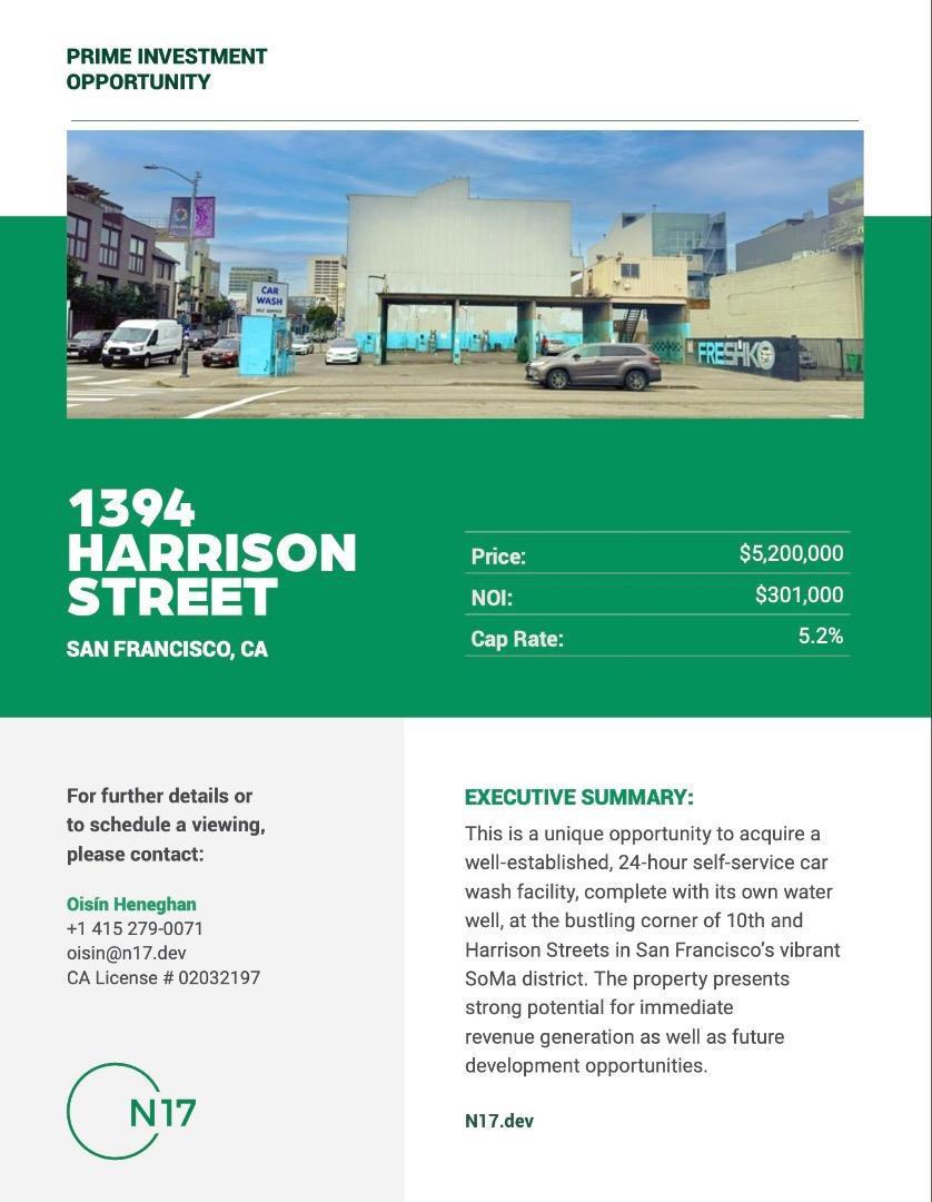 Unique opportunity to acquire a well-established, 24-hour self-service car wash facility, complete with its own water well, at the bustling corner of 10th and Harrison Streets in San Francisco's vibrant SoMa district. The property presents strong potential for immediate revenue generation as well as future development opportunities.