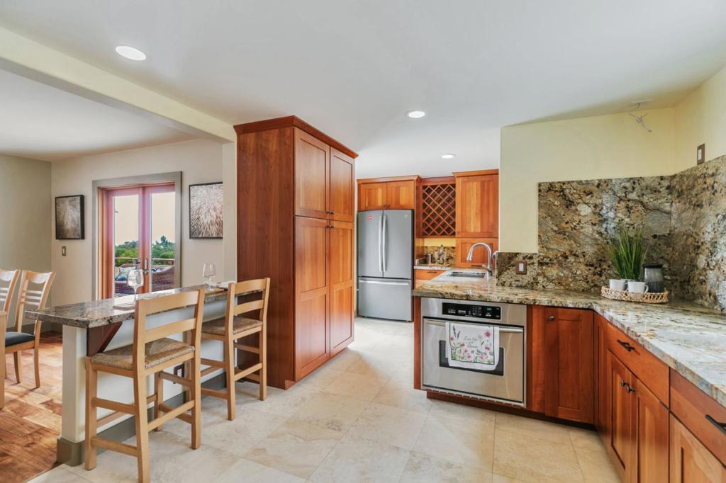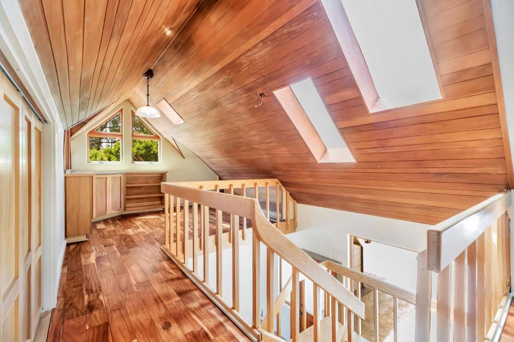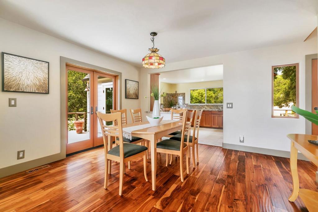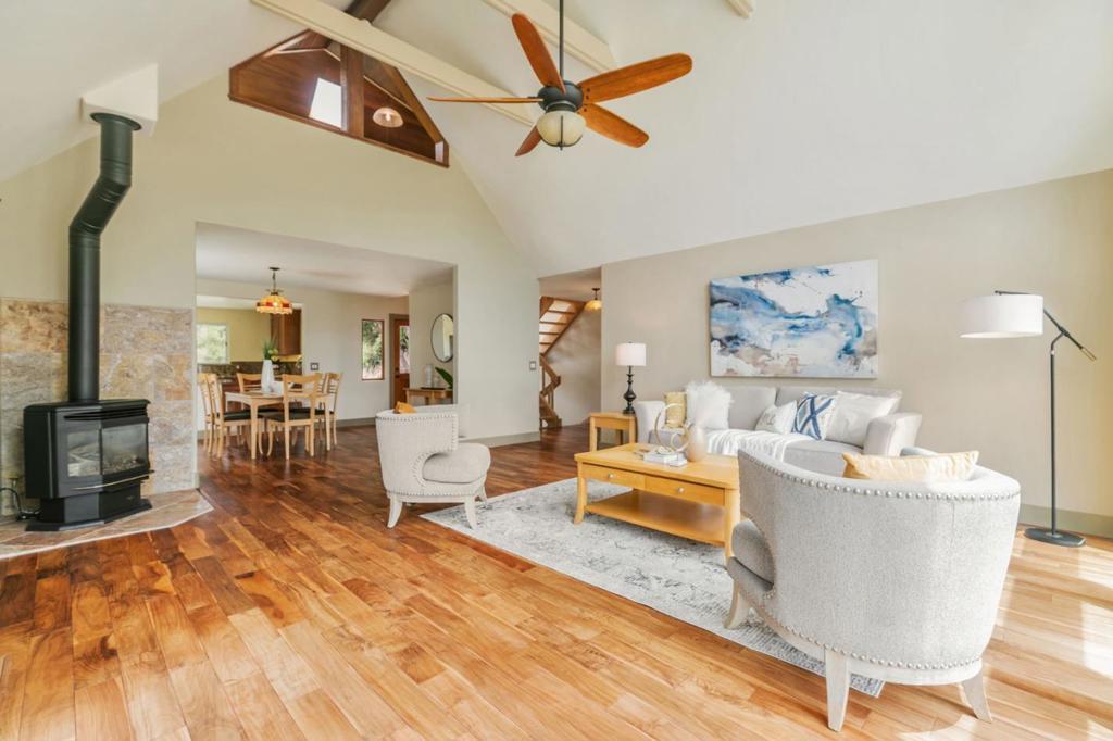 Experience unparalleled luxury & breathtaking panoramic views of Monterey Bay from this exquisite 4 bedroom, 4 bathroom custom estate, boasting 3,279 sqft of sophisticated living space. Nestled on a vast 4.16 acre lot, this property seamlessly combines privacy, comfort & functionality. On the main floor enjoy 2 bedrooms, including primary retreat w/ private bath, guest bath, living room w/ vaulted ceilings, separate dining room overlooking large outdoor balcony w/ views & gourmet kitchen w/ stainless steel appliances & breakfast bar! Private deck off the living room is amazing for viewing those marvelous sunsets! Top story has a cozy office area, living room, full bath, reading/library nook & plenty of storage space. Bottom level has 2 large rooms, private deck, laundry hookup, radiant floor heating & an abundance of storage space. The 4 car detached garage has a loft above & is surrounded by massive deck w/ beautiful views. Below away from the home is a detached 3 car garage & 1200 sqft shop, plus a small storage shed w/ access to a five freight container bunker underneath. Home has over 3,000 feet of decking with two gas hookups for outside entertaining. Copper gutters throughout, fire resistance siding and numerous windows to view the abundant wildlife & spectacular views!