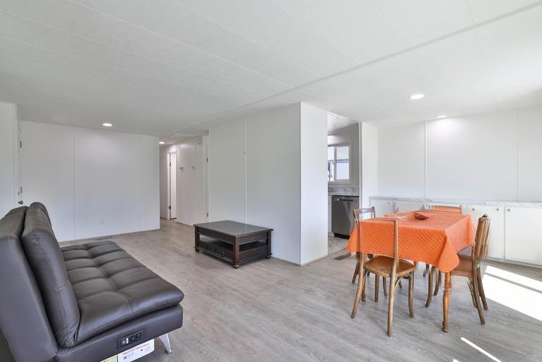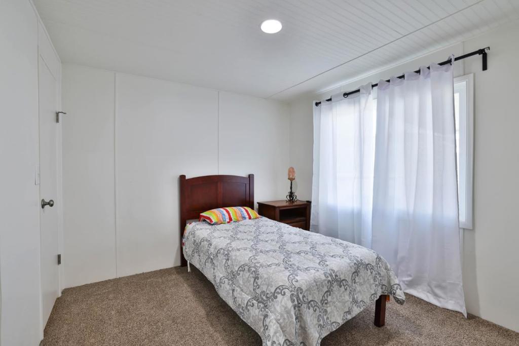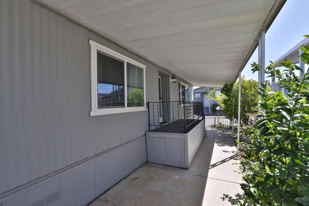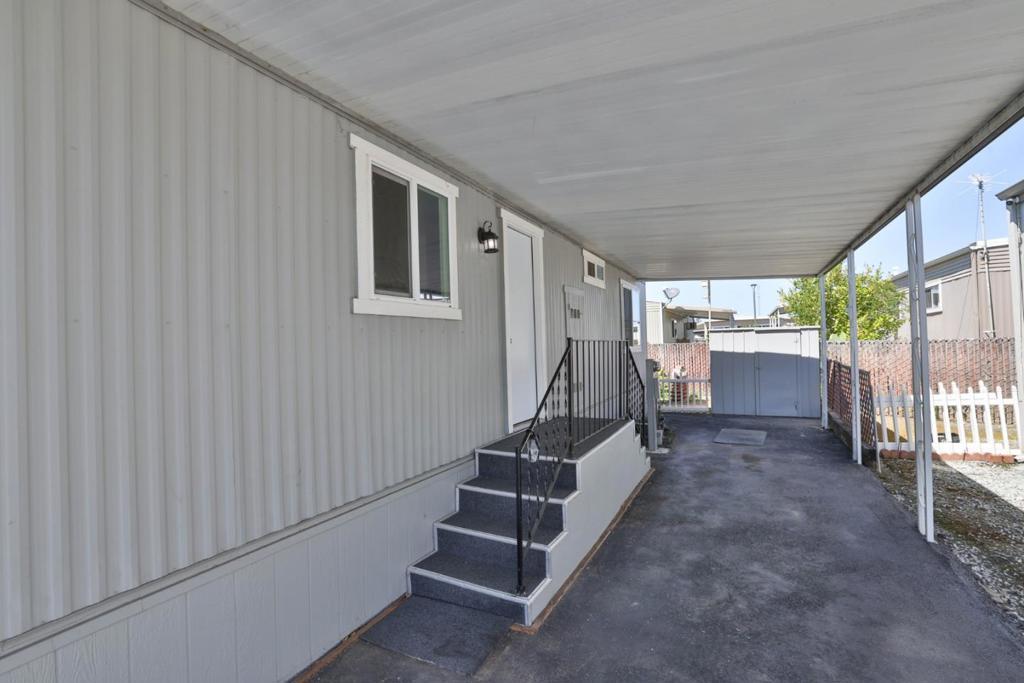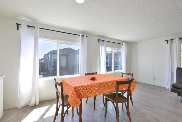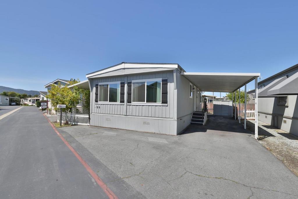 Charming, Move-In Ready Home in quiet 55+ Community! Enjoy the ease of low space rent (only $860) and no property taxes in this beautifully remodeled double-wide home, offering approximately 840 square feet of comfortable living. Featuring 2 bedrooms and 1 full bathroom, this thoughtfully updated residence has undergone a stunning renovation within the last 2 years. Step into the bright and airy galley-style kitchen, complete with stainless steel appliances, modern lighting, and fresh flooring throughout. The bathroom has been tastefully updated with a newer vanity, shower, and toilet for your comfort and convenience. Double-pane windows provide energy efficiency and a peaceful atmosphere. The spacious living room is filled with natural light. The large front porch is perfect for relaxing with a cup of your favorite beverage or visiting with friends. The backyard offers space for a garden or a small pet. Located in the desirable Wagon Wheel Mobile Home Village, a welcoming senior community for residents aged 55 and older. Enjoy the convenience of being just a short distance from excellent dining and shopping options. Just off of Highway 101 near the Leavesley Rd. exit. Restaurants and Gilroy Outlets are nearby.
