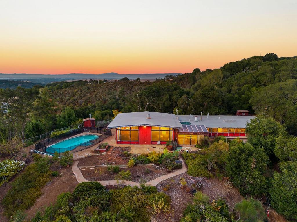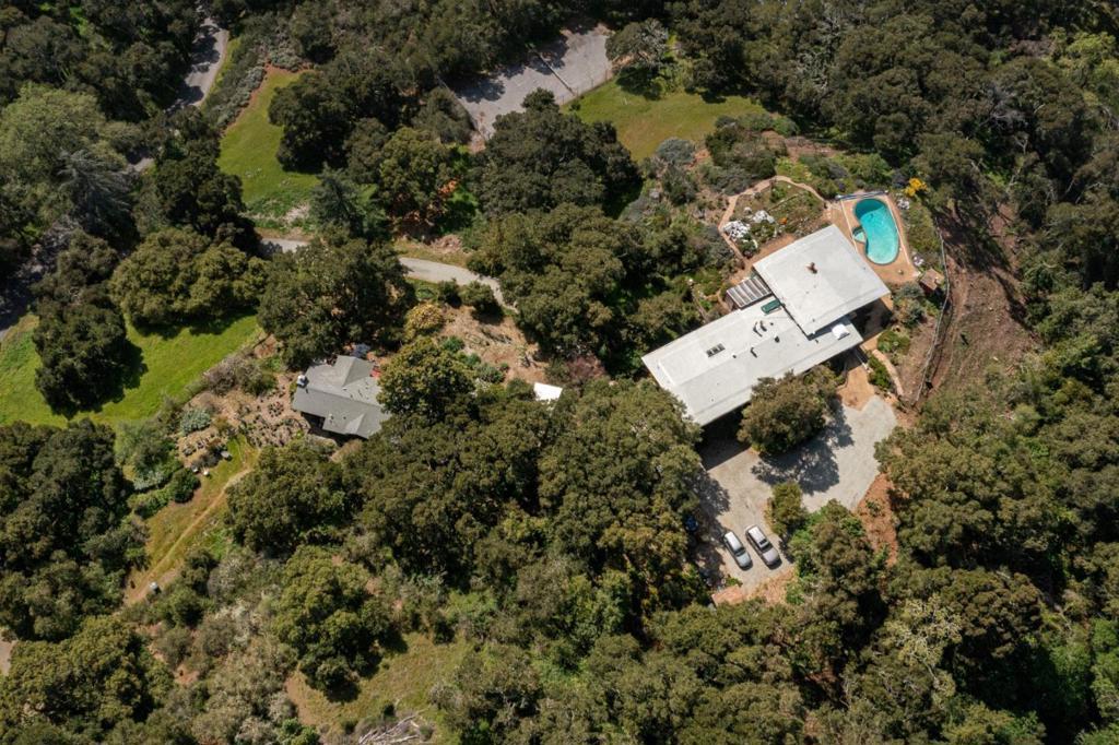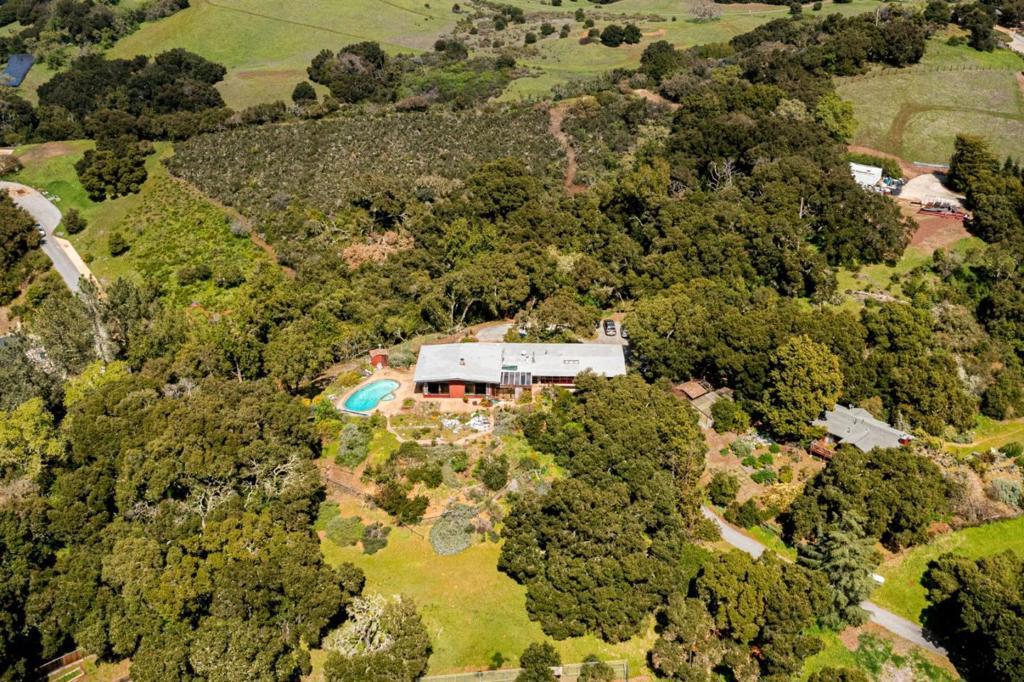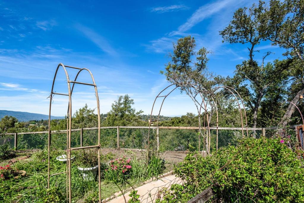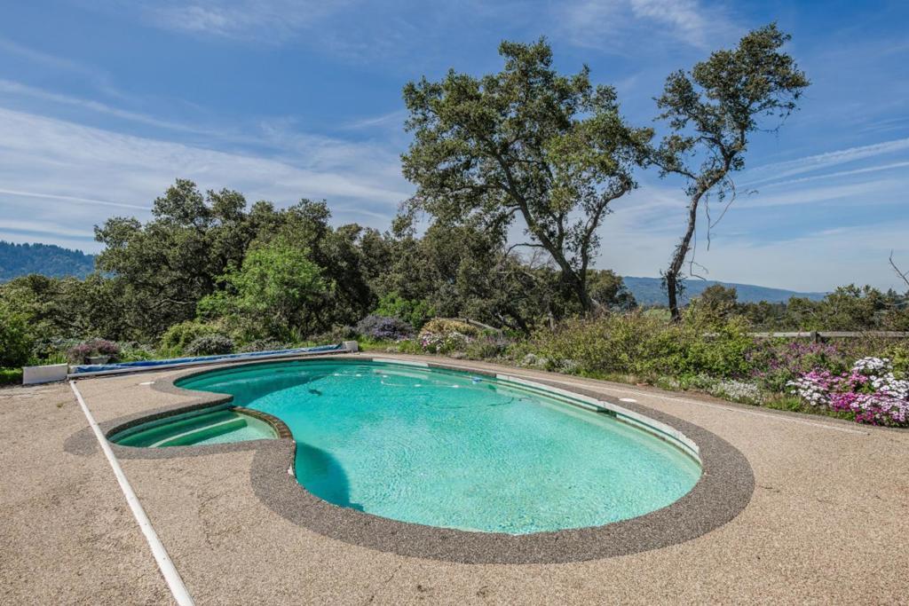 One of the largest lots in Palo Alto. Stunning vistas of the hills & bay in this once in a lifetime opportunity to own 12.55 acres in Palo Alto Open Space. This lot is located on an exclusive private road. Build a new estate or remodel the existing mid-century style home with expansive hill views. Sq ft allowed is based on a percentage of lot sq ft. Large living room with high ceilings and separate dining room have breathtaking views. Family room/solarium is off the eat-in kitchen with island. Two bedroom suites one being the large primary bedroom and two bedrooms with Jack and Jill bathroom. Garage converted into a refinished studio plus large workshop and storage. Separate two bedroom guest cottage with living room with fireplace and sunny deck with views of Windy Hill. Sunny Pool surrounded by gardens. Tennis court was built before land was subdivided and a corner is on neighbor's property. Property has Greenhouses and sheds for storage and a walking trail on the property leads to a ridge with breathtaking bay views. This parcel is very private but close to Robert's and Ladera Shopper, Menlo Park, Los Altos, Stanford University and 280 corridor to Silicon Valley. The bay view photos were taken from the trail on the back part of the acres which backs up to Arastradero Perserve.