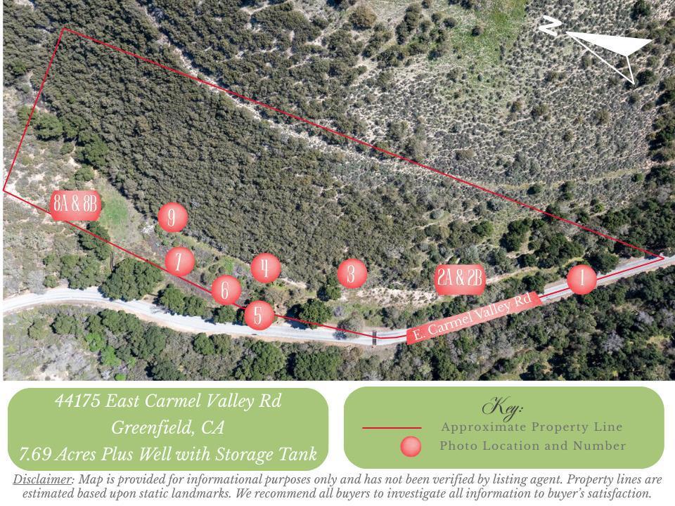 Beautiful, private 7.69 acres along Carmel Valley Rd. Build your dream home and rest on this peaceful oasis. This wonderful retreat property is located 25 miles east of Carmel Valley village or just minutes to Hwy 101. Nestled in between acres of vineyards and custom homes with picturesque views! This fantastic, useable property is south facing, surrounded with majestic oaks, wild flowers and a seasonal stream. There are several ideal building sites as well as an existing well and tank. Must see!